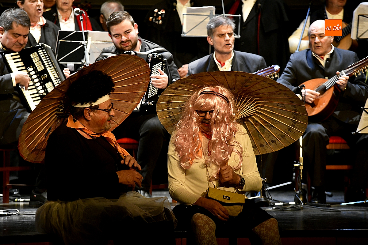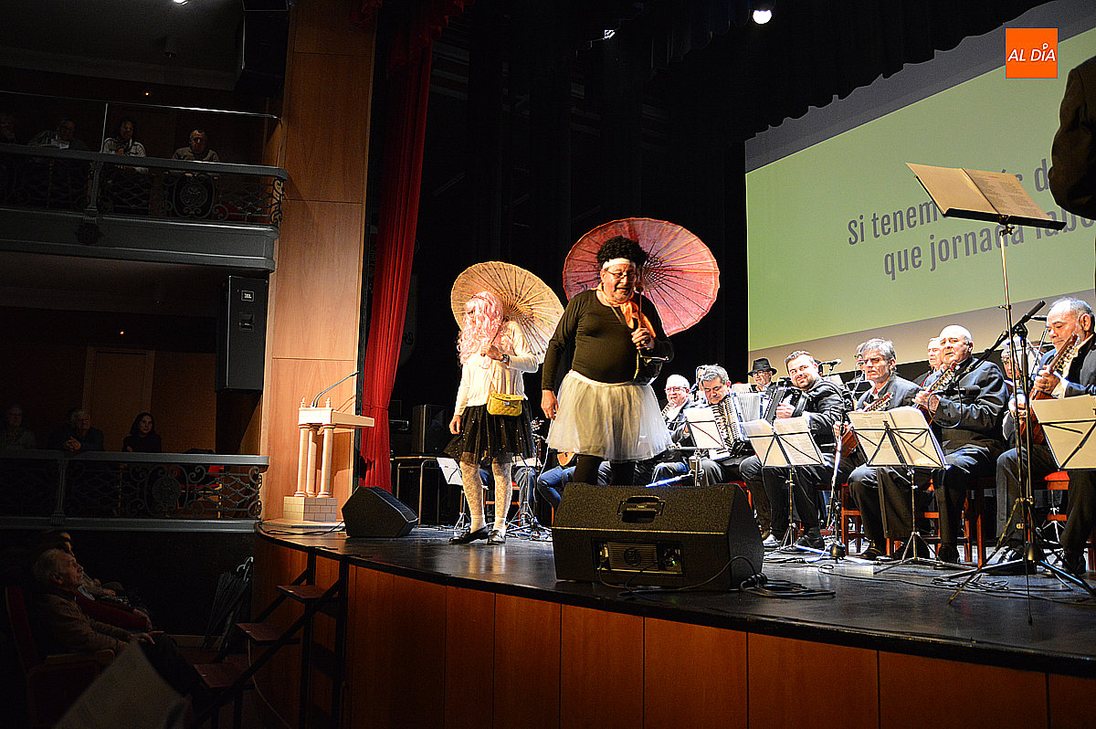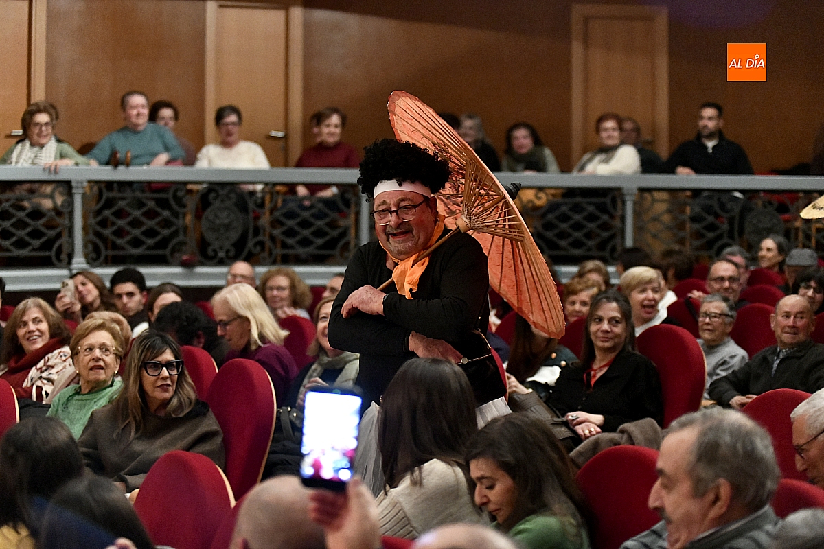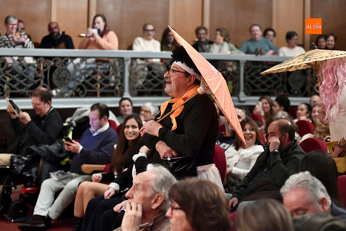 Sobre el escenario desfilaron escenas y personajes cuidadosamente hilados. Destacó la aparición de una aspirante a murguista de origen oriental, que se presentó en su lengua materna, dejando entrever apenas algunas palabras reconocibles y la ubicación de sus supuestos negocios en la ciudad, lo suficiente para provocar carcajadas gracias a un guion medido y eficaz. No faltó tampoco un imitador interpretado por Jesús Molinero del artista local Sergio Alonsoque mostró una maqueta de la escultura dedicada al Carnaval y explicó, entre bromas, el estado de su trabajo.