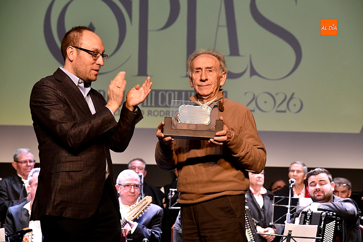 El acto comenzó, no obstante, con un tono solemne. El Ayuntamiento de Ciudad Rodrigo rindió homenaje a Gabriel de Aller Iglesias, veterano constructor de “tablaos”, reconociendo una labor callada y constante en la que quiso hacer partícipes a sus hermanos, compañeros habituales en estas tareas.