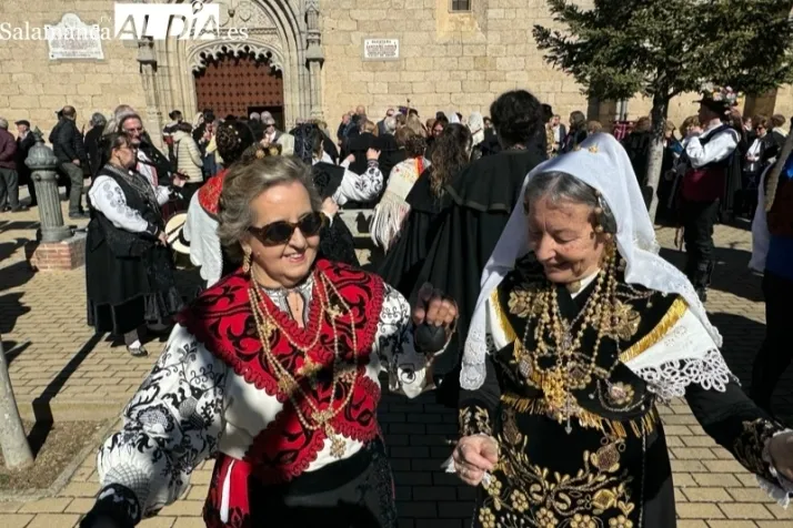 A las 13:00 horas se celebrará la misa en la Iglesia de Nuestra Señora del Castillo, uno de los momentos más solemnes del encuentro, antes de que la música y el color tomen protagonismo en la plaza. A partir de las 14:00 horas, los Dulzaineros de Macotera “Adobe” animarán el ambiente con bailes tradicionales, que se repetirán de nuevo a las 16:30 horas, llenando la Plaza Mayor de sonido y raíces.