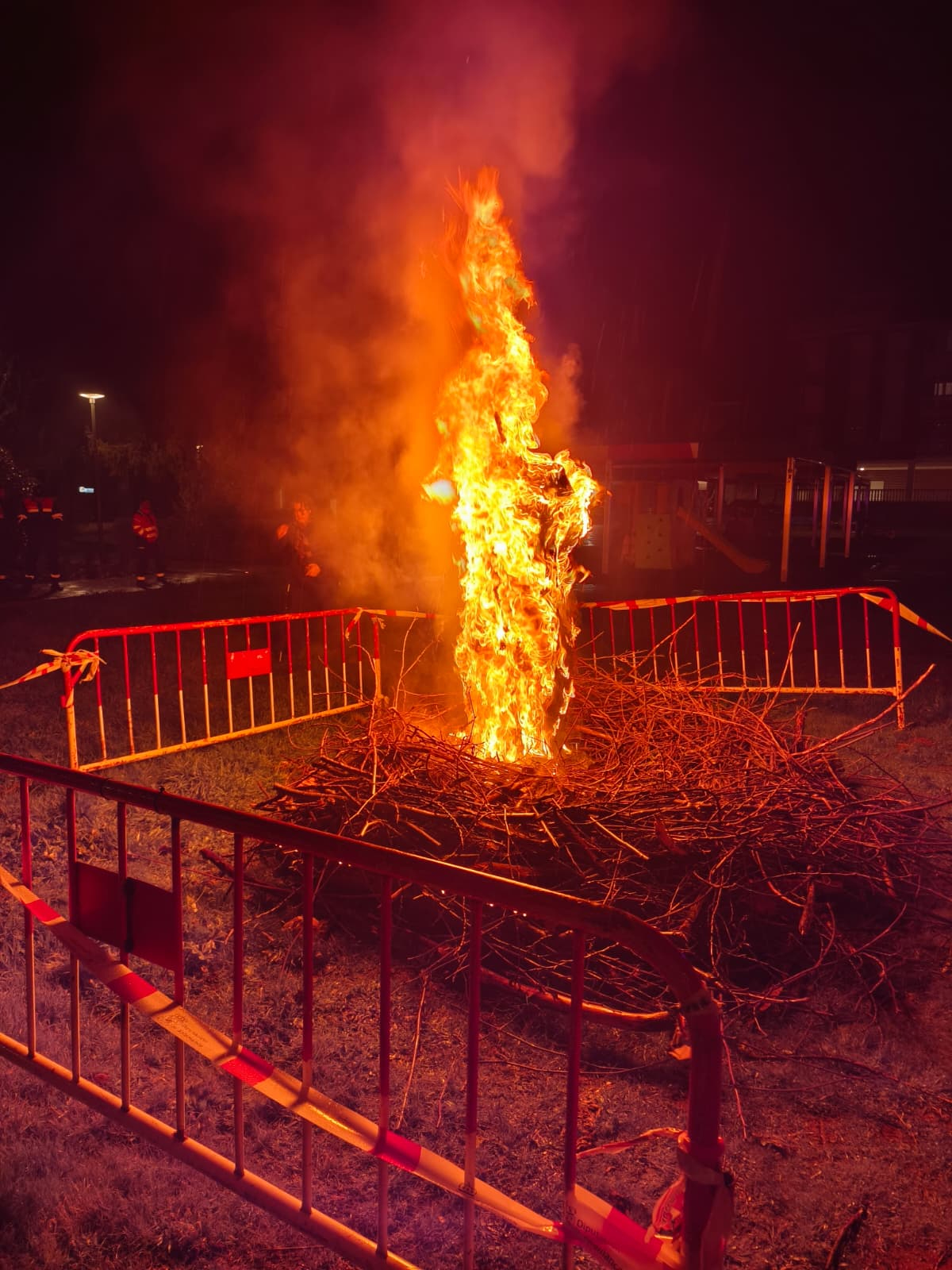 Antes de proceder al encendido del fuego, las asistentes compartieron un chocolate caliente en el mismo entorno del edificio municipal. El encuentro sirvió para reforzar los lazos entre las participantes en un ambiente distendido previo al momento cumbre de la tarde.