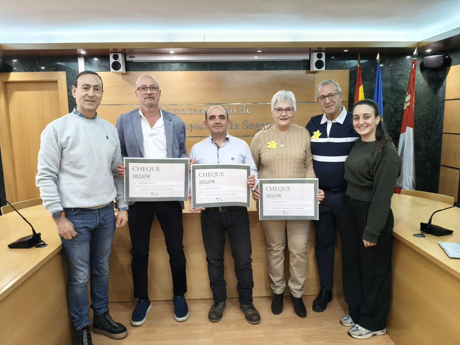 El Ayuntamiento de Carbajosa de la Sagrada ha materializado este viernes la entrega de la recaudación obtenida durante la celebración de la tradicional paella solidaria de las pasadas Fiestas de San Roque. El acto, celebrado al mediodía en el salón de plenos, ha servido para distribuir un total de 2.558 euros entre tres entidades de carácter social y sanitario que operan en la comunidad.