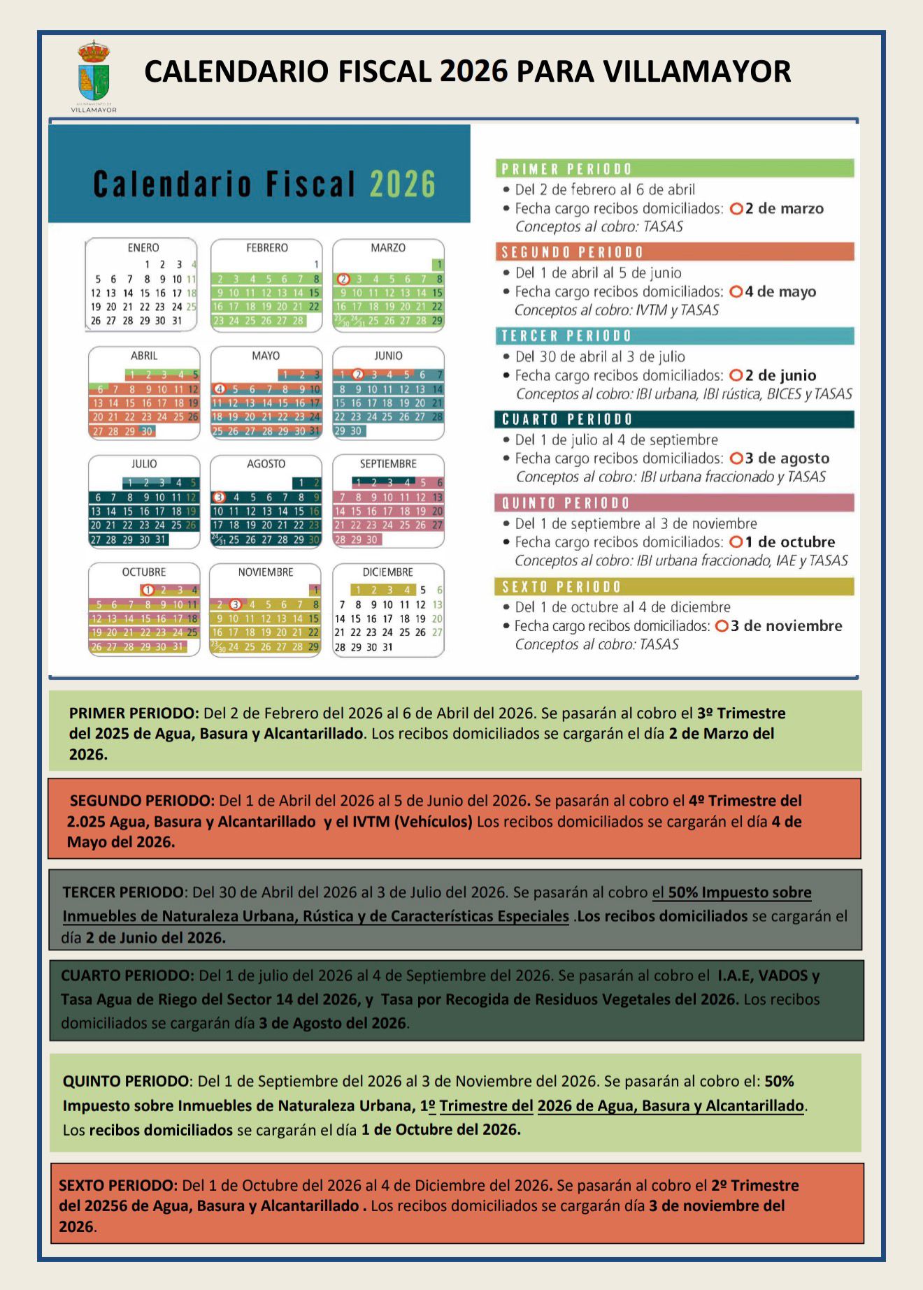 El Ayuntamiento ha detallado las fechas exactas para el cumplimiento de las obligaciones tributarias: