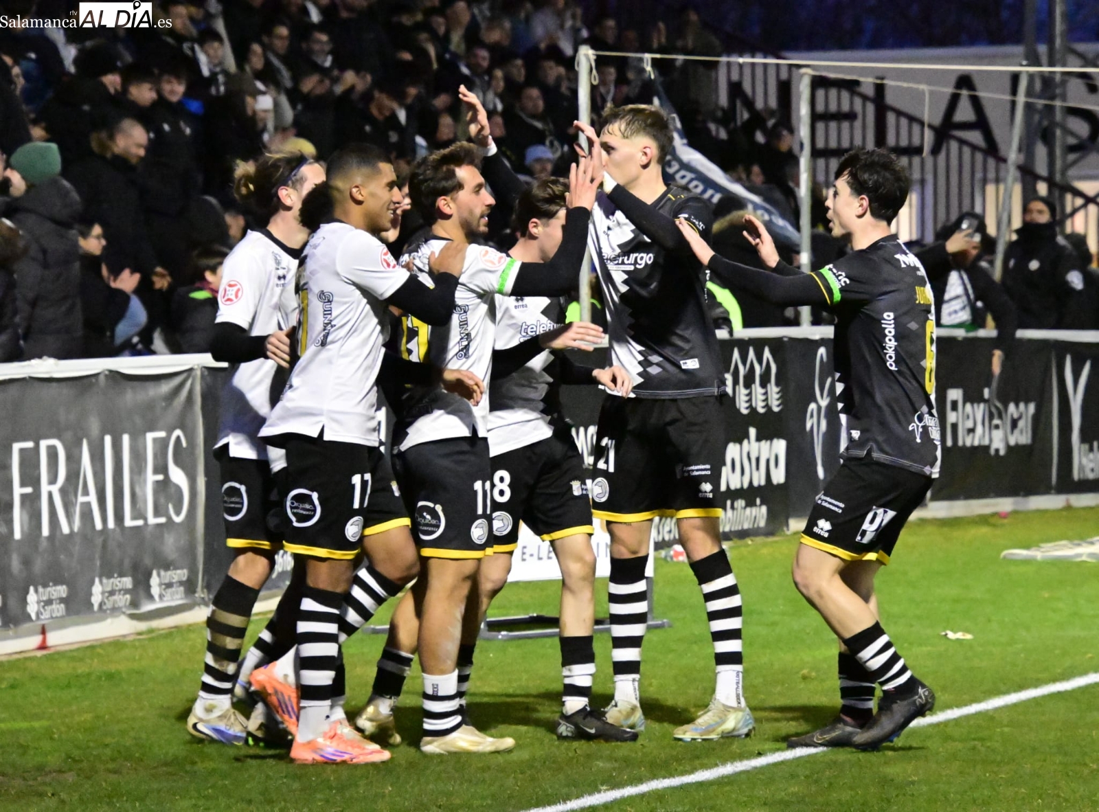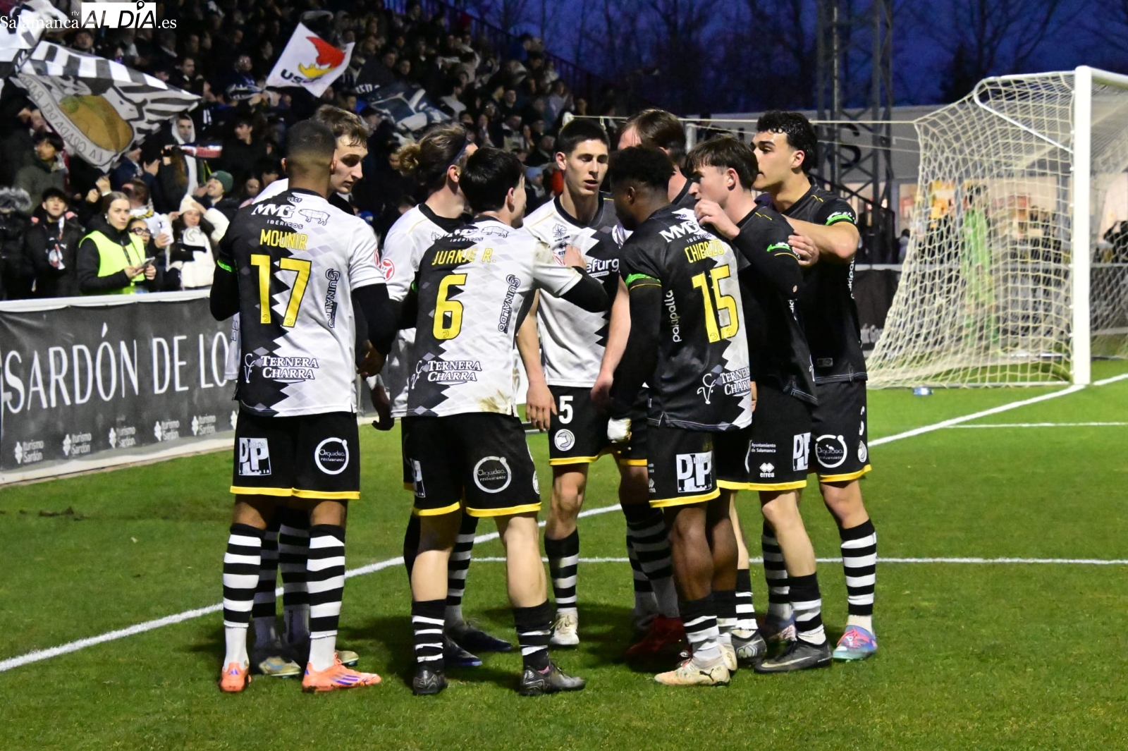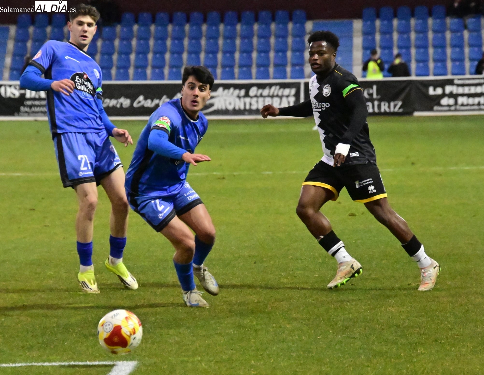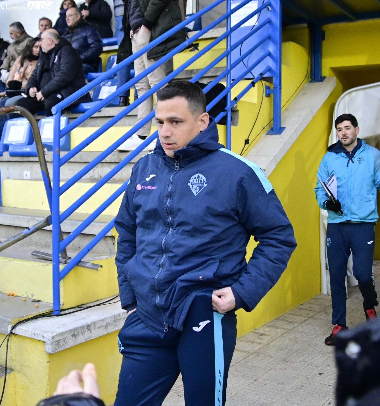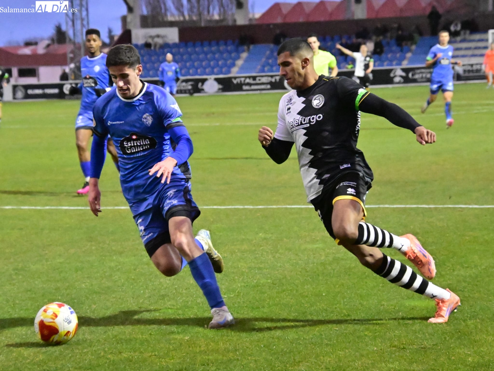 Con el balón en juego, la afición charra ha estado callada dos minutos como señal de protesta por los arbitrajes y luego ya ha empezado a animar. Entre tanto, el fútbol ha sido poco vistoso y con ocasiones de escaso peligro más allá de algún tiro de Enol Coto y Prado, pero ninguno de ellos le ha dado mayores problemas a Marco Coronas.