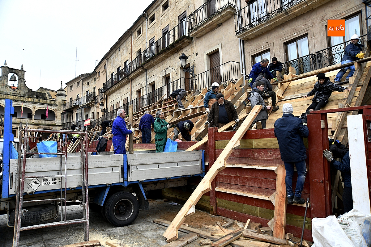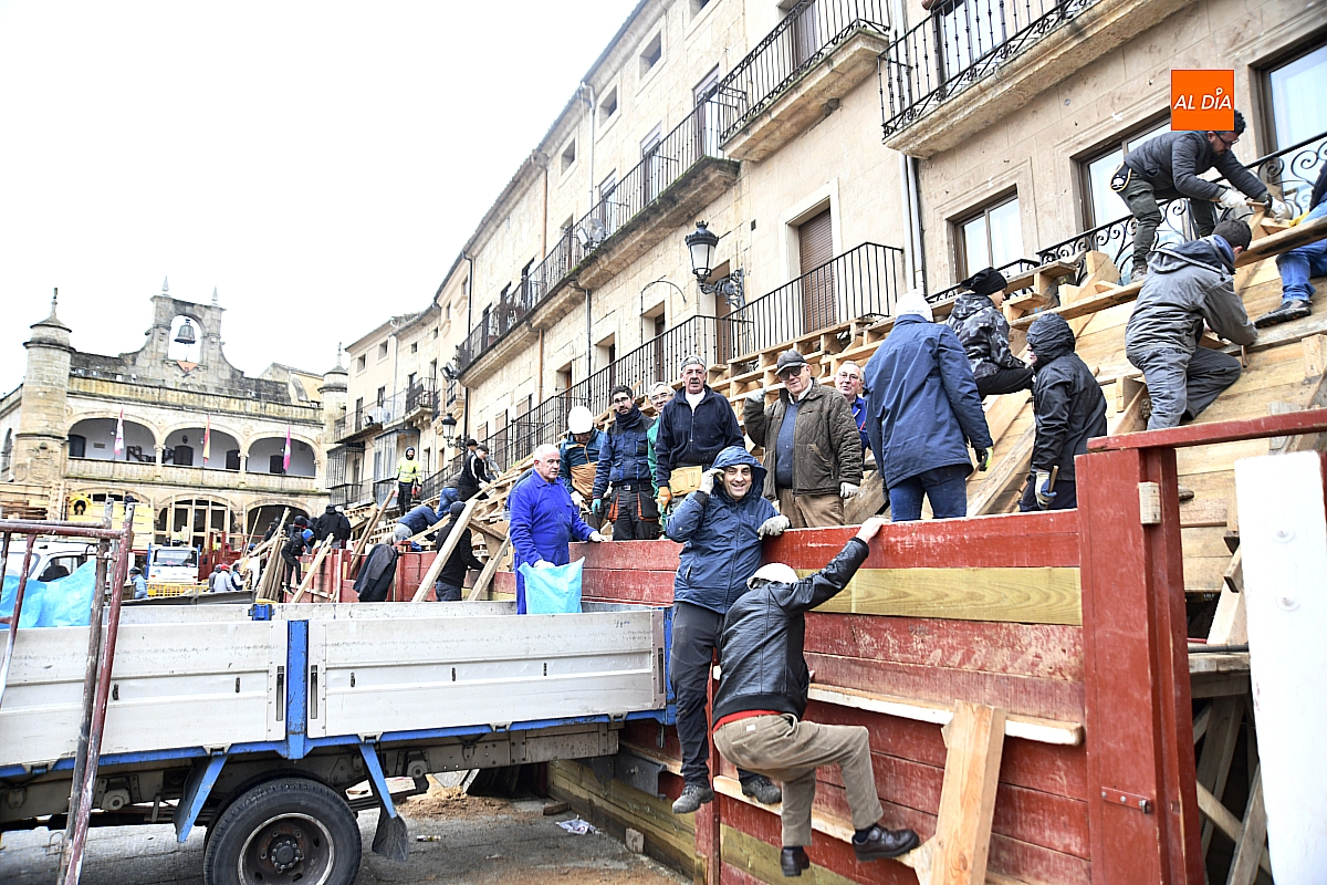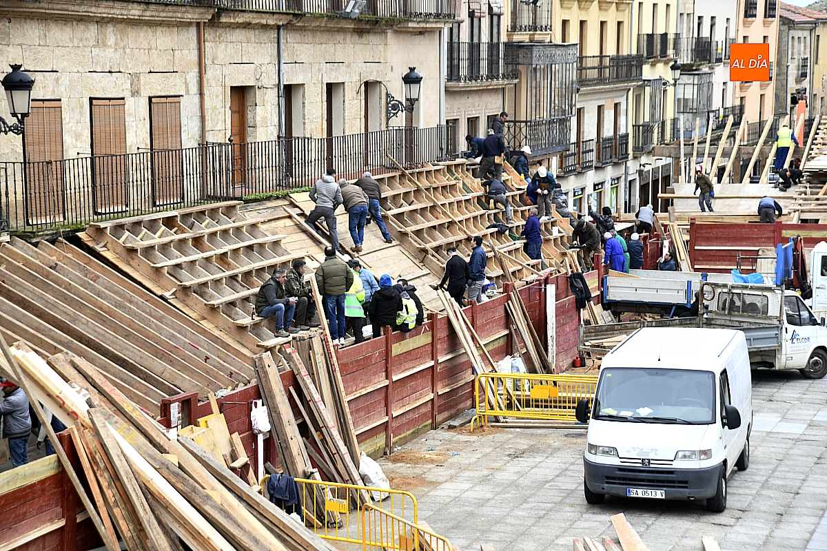 La ilusión compartida y el compañerismo hicieron frente al mal tiempo. Lejos de deslucir una tarea ancestral —reconocida como Bien de Interés Cultural por la Junta de Castilla y León—, la lluvia subrayó su carácter colectivo y resistente. Así, en estos días decisivos que preceden a la llegada del Carnaval, el coso taurino continúa levantándose tabla a tabla, como cada año, fiel a una tradición que se construye con madera, esfuerzo y perseverancia.