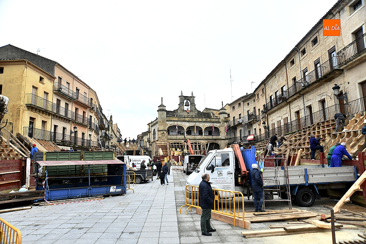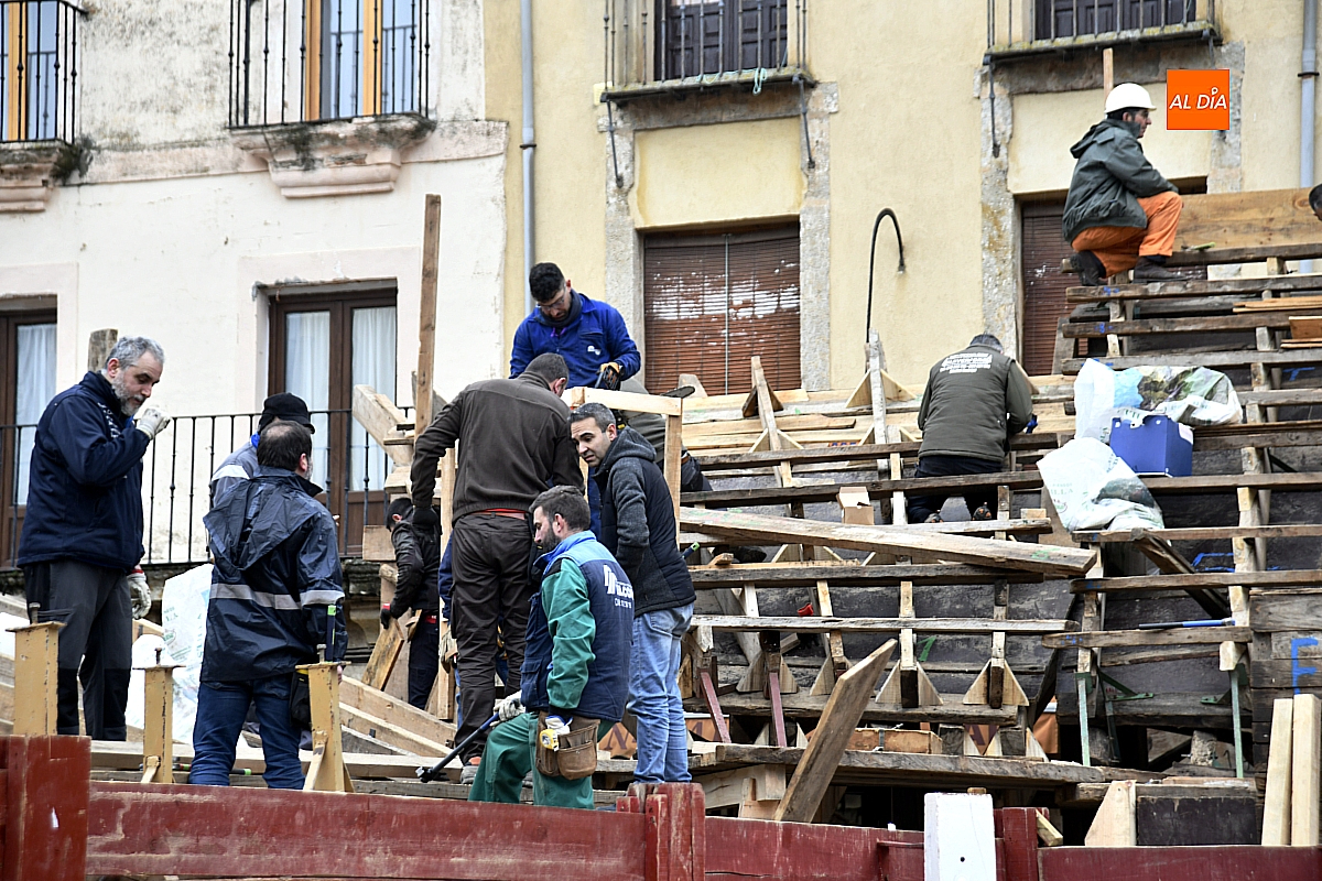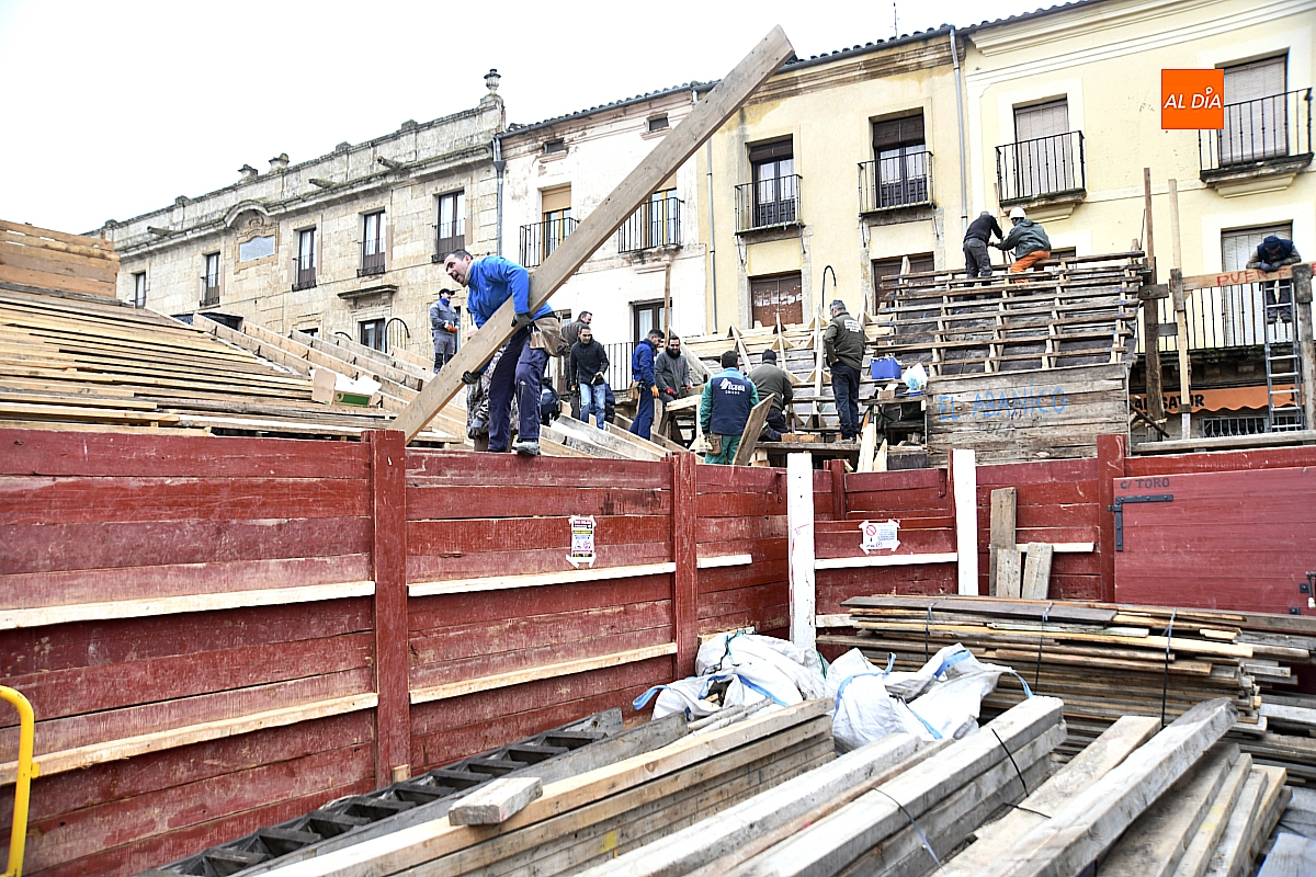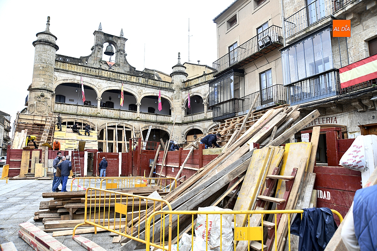 El efímero coso taurino mirobrigense va tomando forma entre jornadas maratonianas y breves treguas del cielo