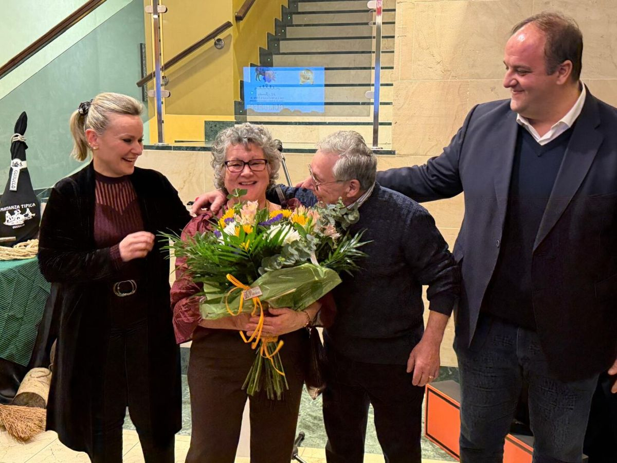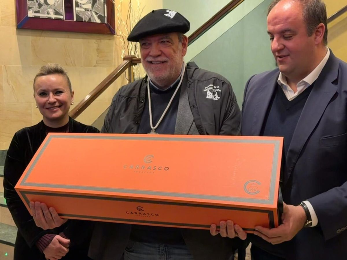 En este acto, el Ayuntamiento, como homenaje y agradecimiento a la labor durante estos 40 años, entregó una placa y un jamón a Jesús Merino y un ramo de flores a Conchita Parra.