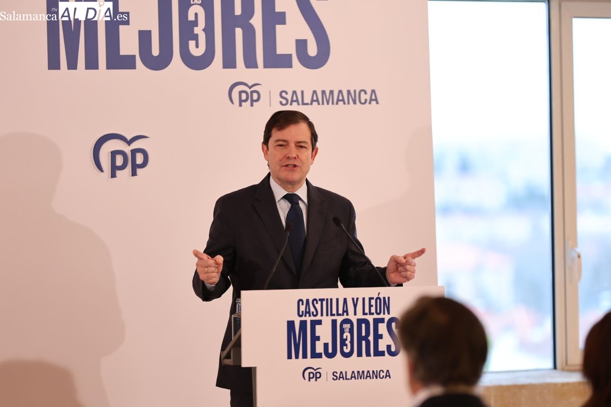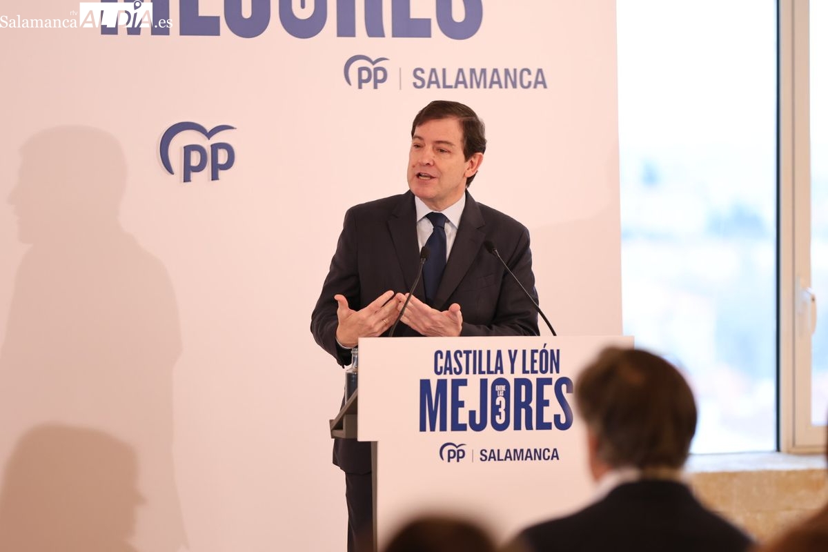 El presidente del Partido Popular de Castilla y León, Alfonso Fernández Mañueco, ha protagonizado este sábado, 7 de febrero, el acto de presentación de la candidatura del PP de Salamanca para las próximas elecciones a las Cortes de Castilla y León, que se celebrarán el 15 de marzo. Durante el evento, Mañueco ha destacado que encabeza una lista "renovada en más del 60%", diseñada para conjugar "experiencia y juventud" con el objetivo de ofrecer "serenidad, responsabilidad y certezas" a los ciudadanos.