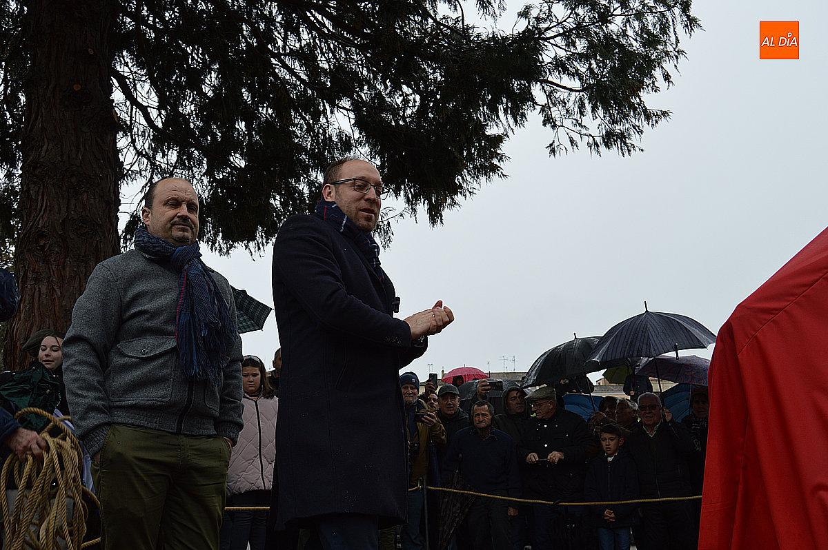Por su parte, el autor, Sergio Alonso Moro, expresó su ilusión al ver a tantas personas congregadas para apoyarlo, algo que no esperaba debido al mal tiempo. Asimismo, se mostró agradecido al Ayuntamiento por haber confiado en él para este proyecto, señalando que supone para él un honor y un orgullo que una obra suya quede expuesta en su propio pueblo.