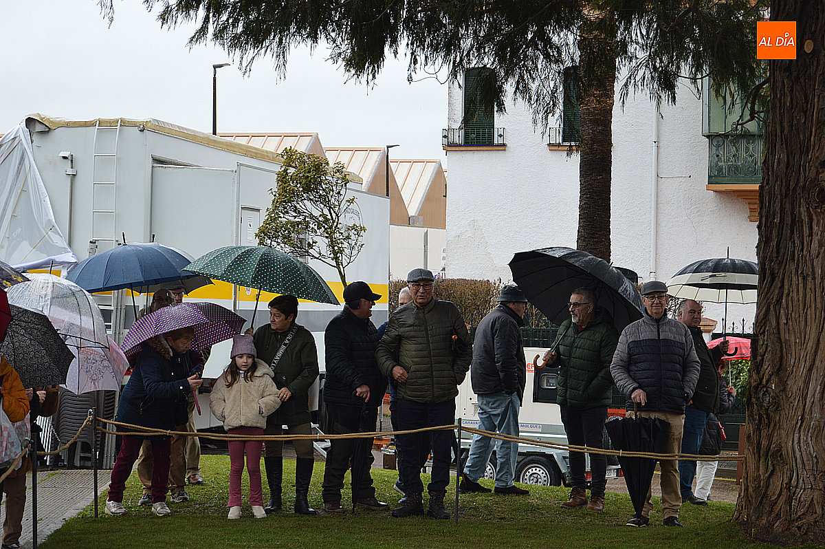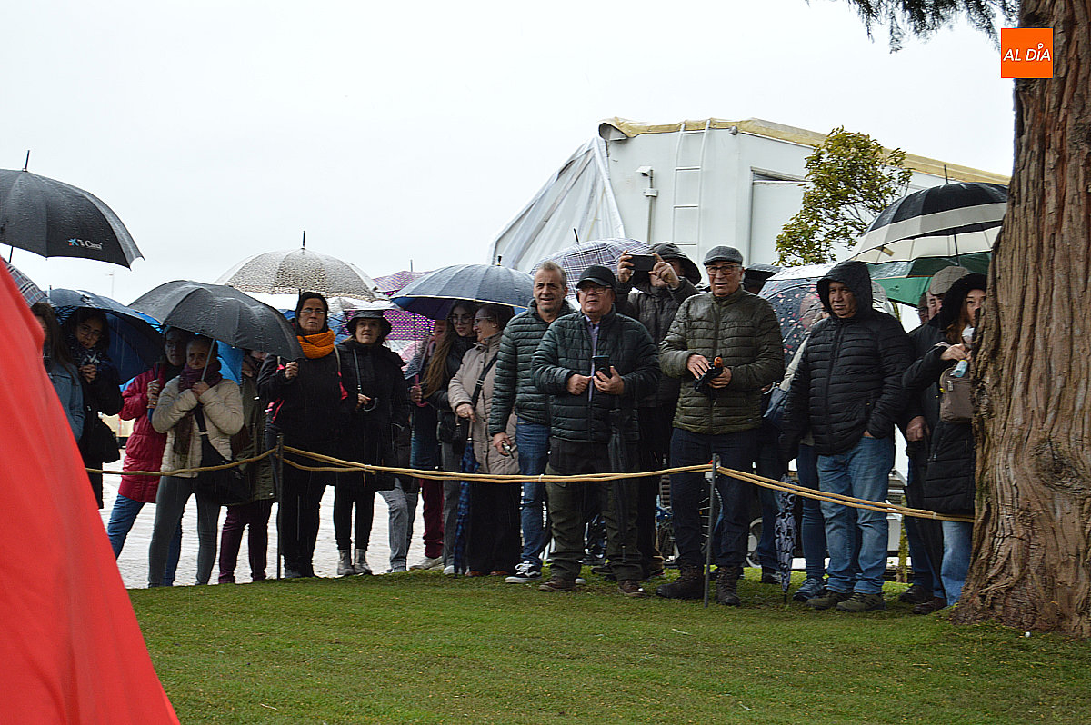 Posteriormente, y aunque la lluvia continuaba, el público no dudó en acercarse con precaución al recinto para fotografiarse con la escultura y, en algunos casos, también con el propio artista.