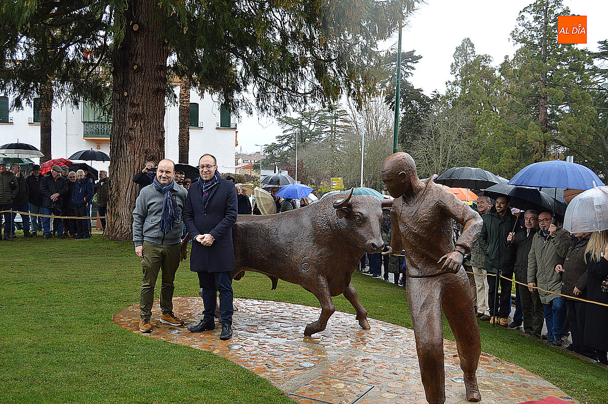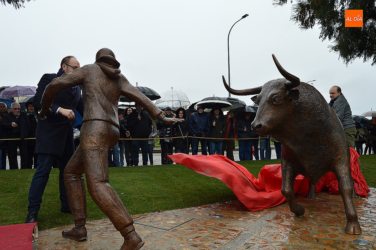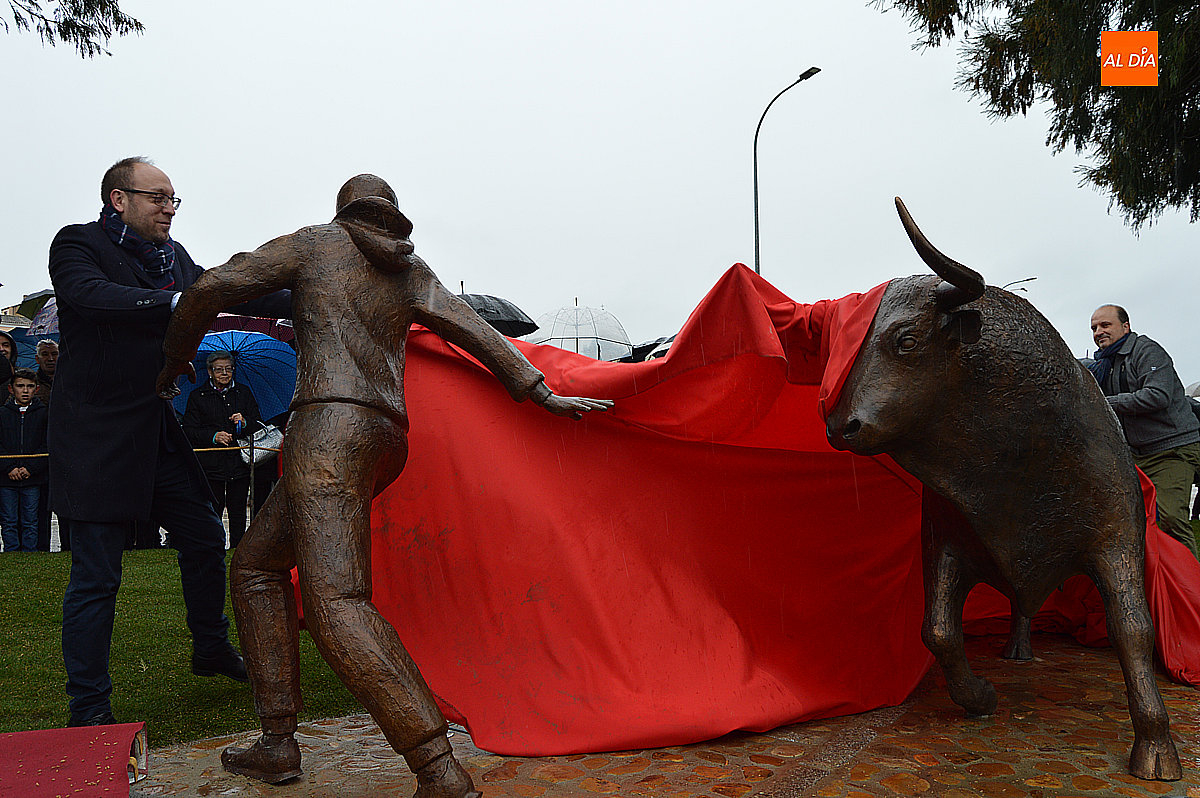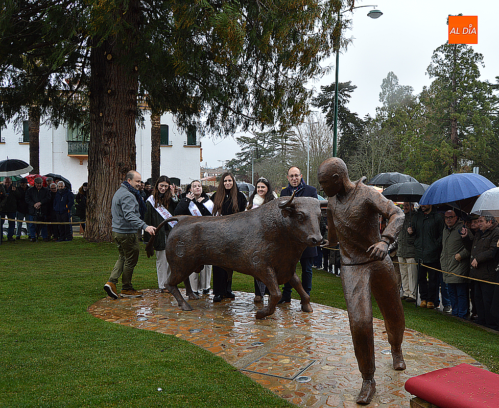 El alcalde de Ciudad Rodrigo, Marcos Iglesias, destapó el monumento junto al artista, Sergio Alonso Moro. La escultura, titulada El corredor y el toro, fue recibida con un cálido aplauso por parte de los asistentes, que vitorearon al autor y reconociendo su gran trabajo.