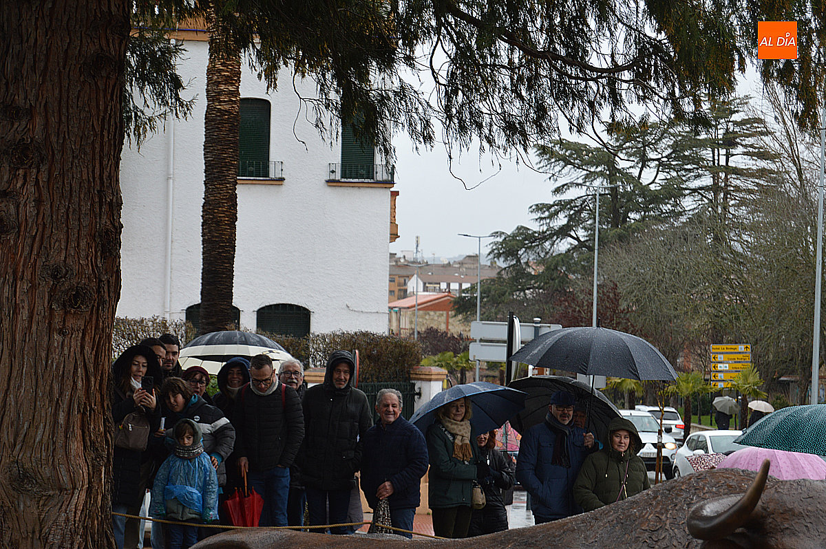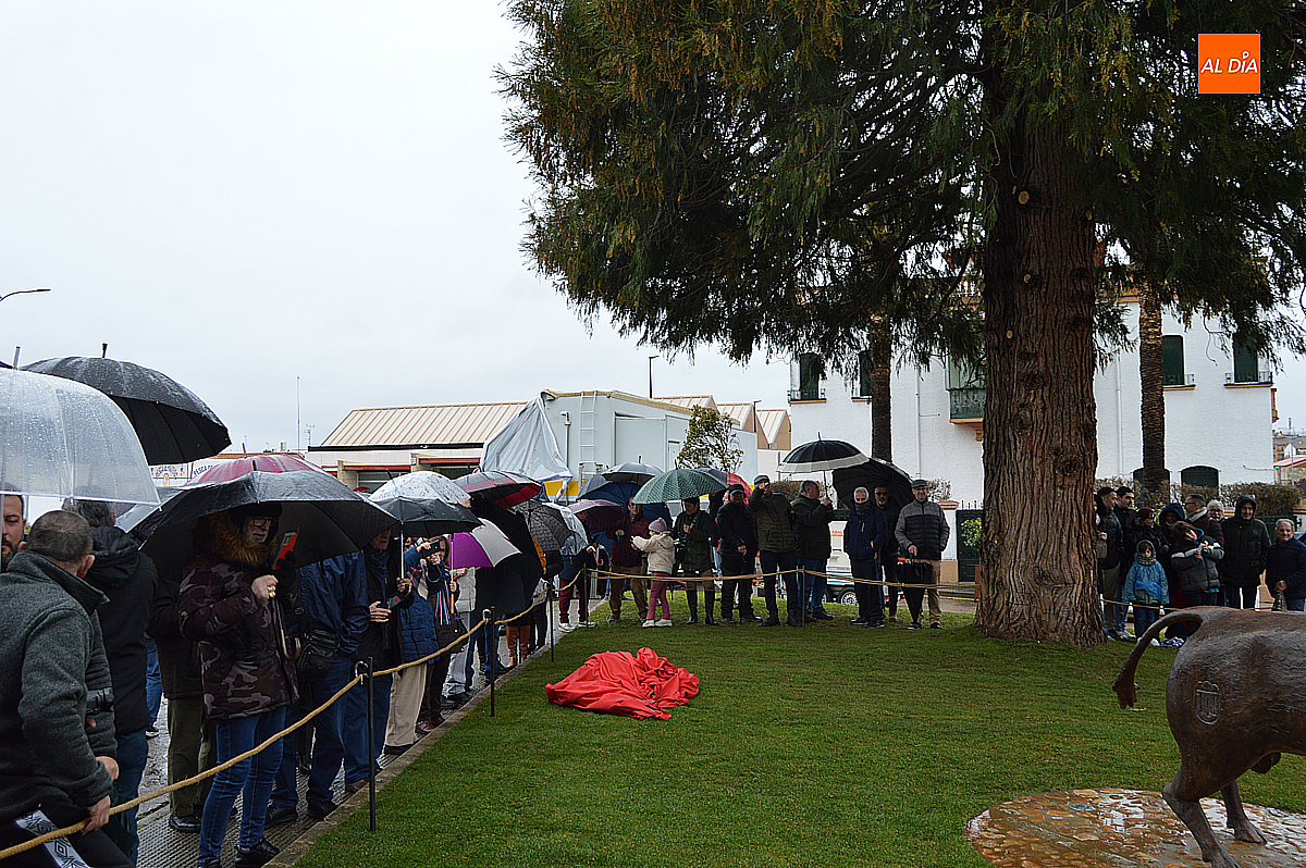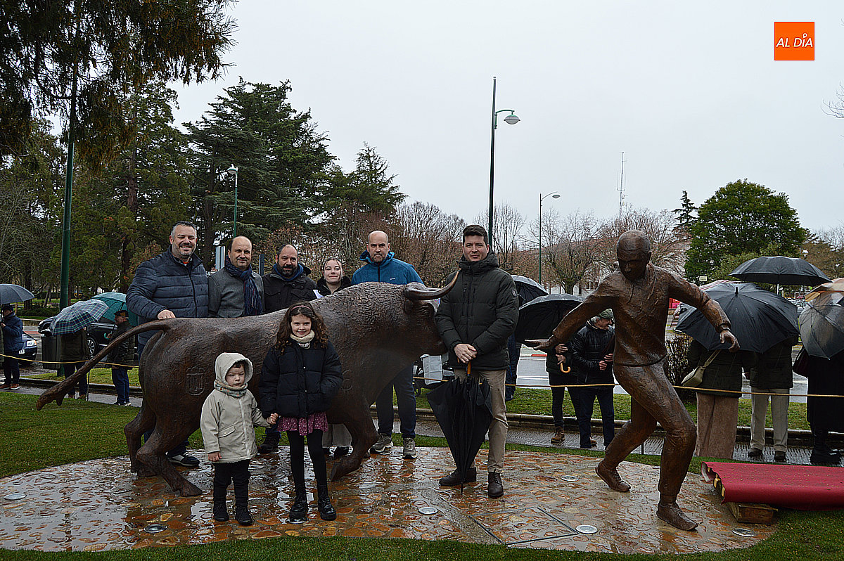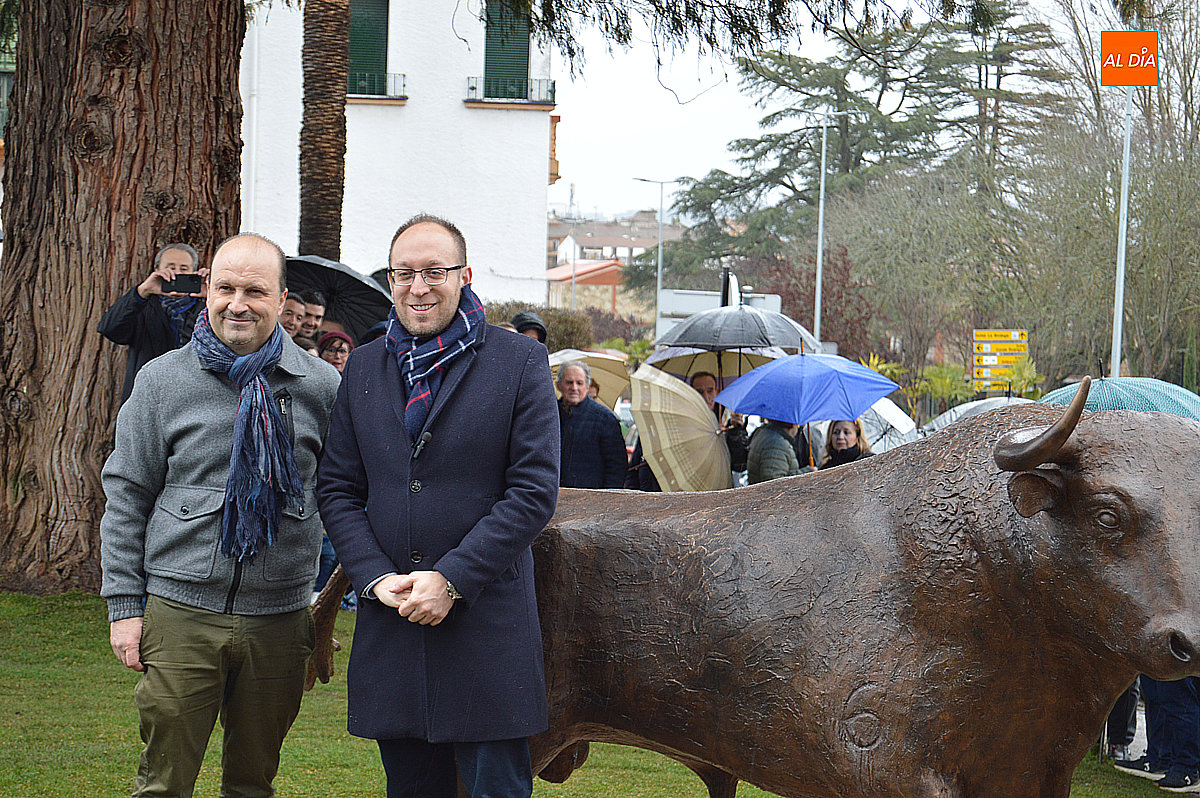 El alcalde de Ciudad Rodrigo, Marcos Iglesias, destapó el monumento junto al artista, Sergio Alonso Moro. La escultura, titulada El corredor y el toro, fue recibida con un cálido aplauso por parte de los asistentes, que vitorearon al autor y reconociendo su gran trabajo.