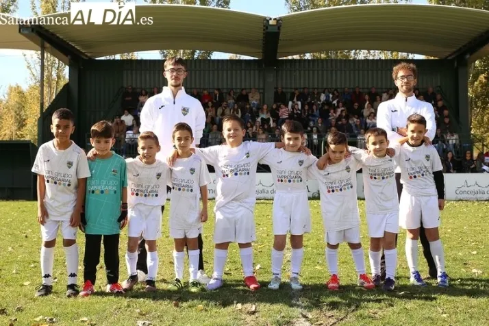 El conjunto prebenjamín del Alba de Tormes CF compite en Primera División Provincial con una plantilla corta pero muy unida, apostando por el aprendizaje con balón, los valores y el sentimiento de equipo