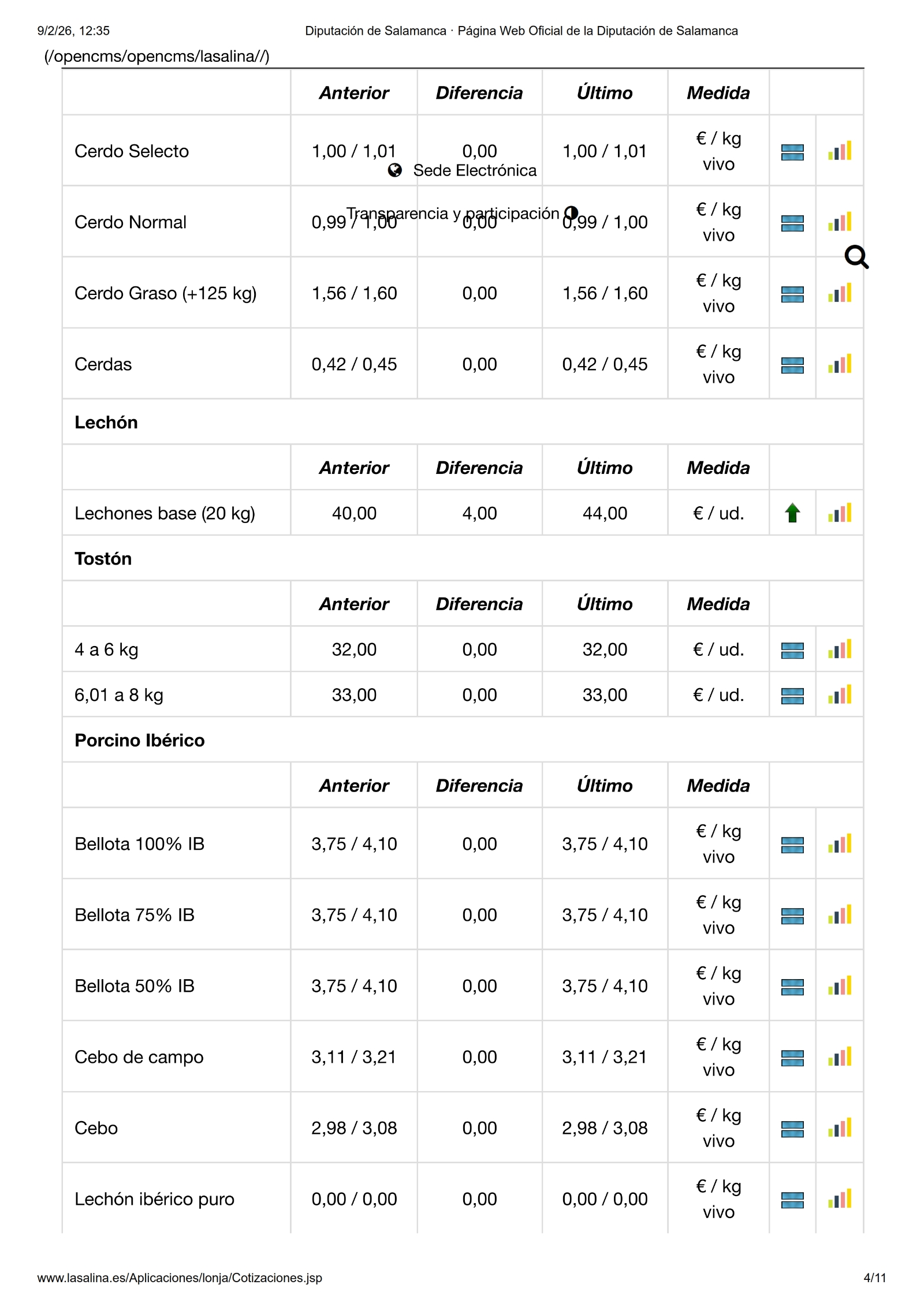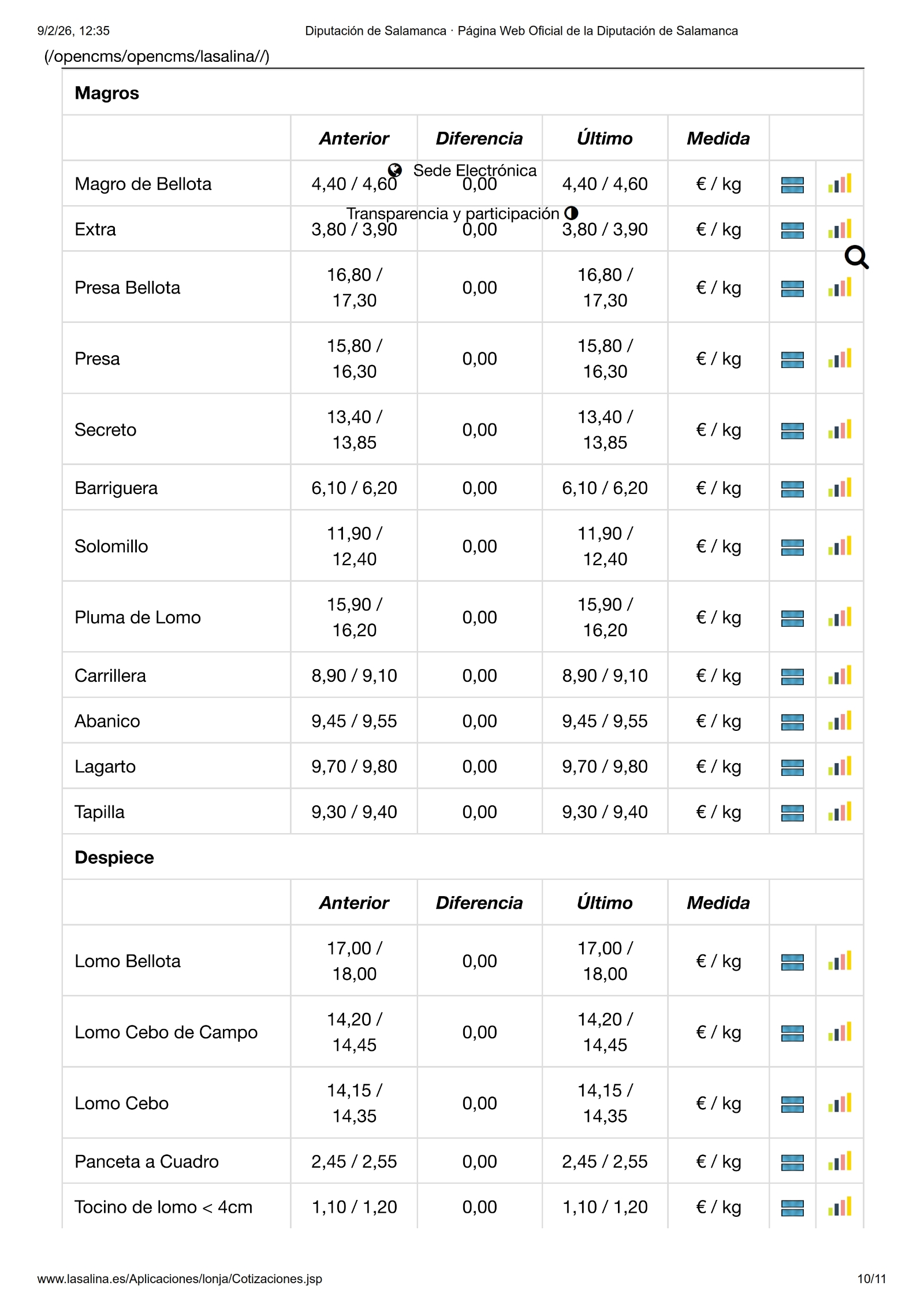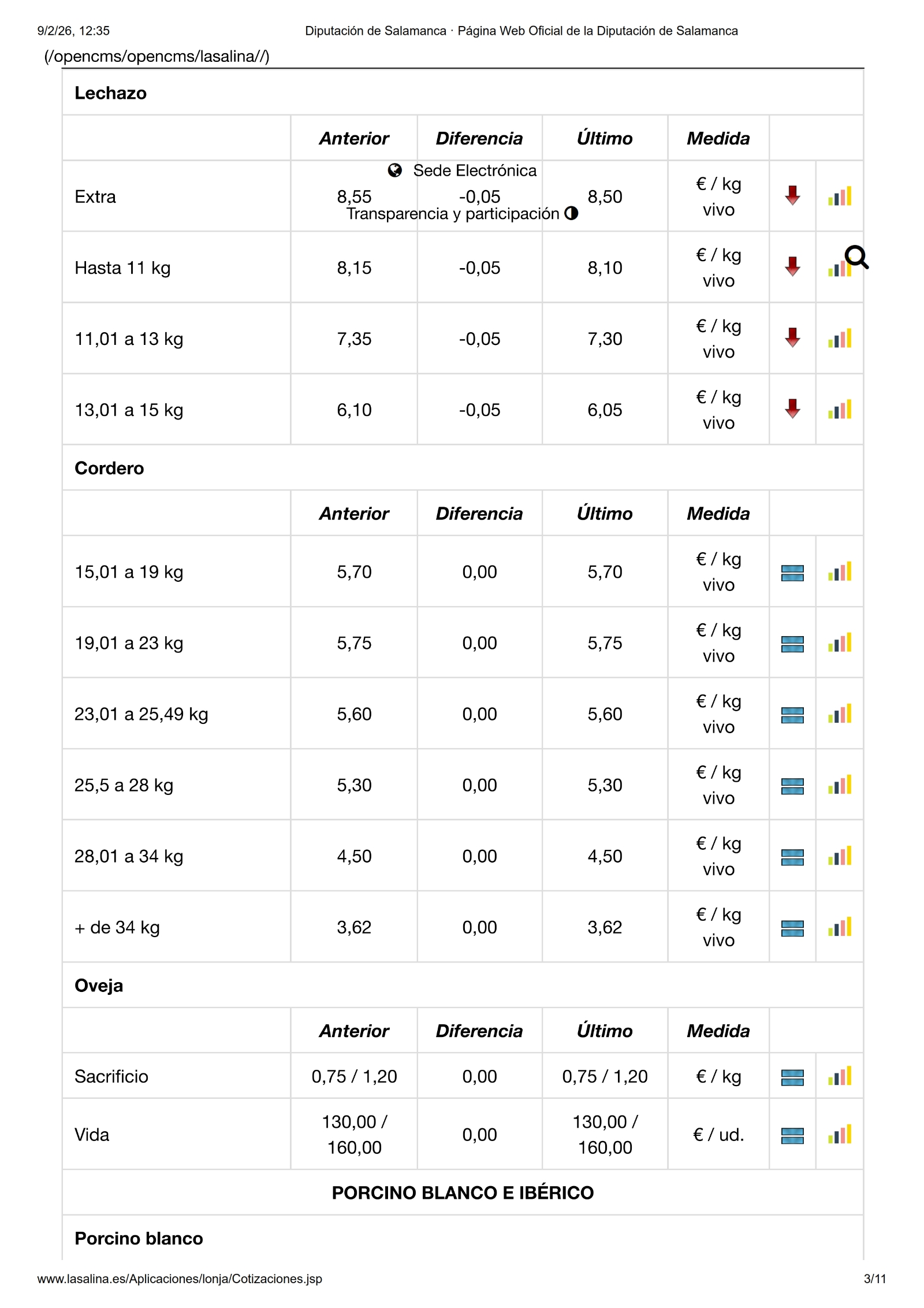 En la Mesa de Ovino, nueva bajada de los lechazos, en esta ocasión de -0,05 €/kg. Y en la de Porcino Blanco solo se mueven los lechones con una subida de 4,00 €/ud. Lo mismo sucede en la de Ibérico, donde los lechones suben 0,05 €/kg. En la Mesa de Despiece de Ibérico, no hay cambios.