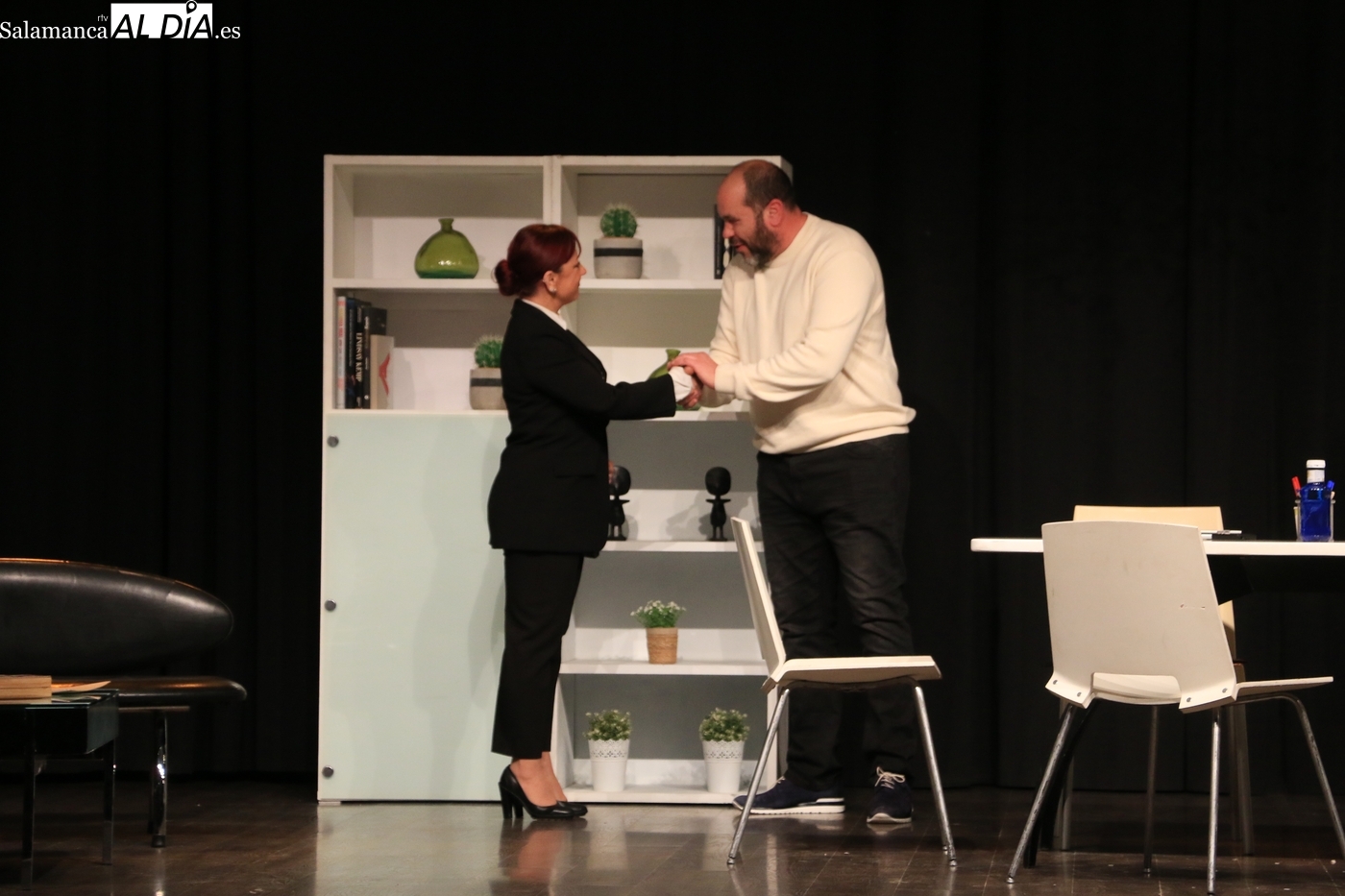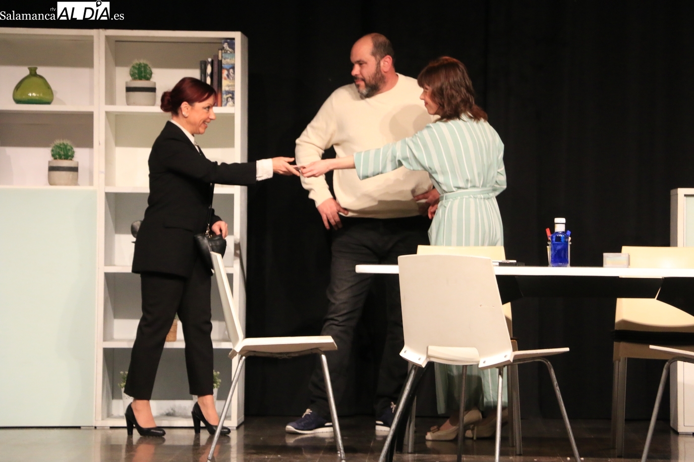 El XXXVIII Certamen Nacional de Teatro 'Villa de Vitigudino' vivió ayer domingo una de sus jornadas más intensas y aplaudidas. La compañía alicantina 'Aquí te pillo, aquí teatro' logró conectar de inmediato con el público gracias a la puesta en escena de 7 años, un magnífico thriller psicológico que mantuvo la tensión en el patio de butacas de principio a fin.
