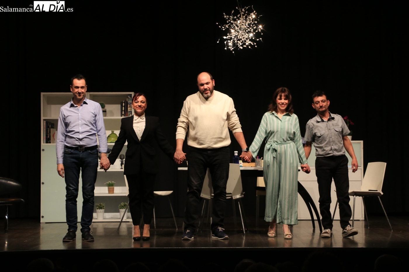 El éxito de la velada se sustentó en la excelente interpretación de los cinco actores que componen el elenco. Miguel Ángel Juan, Francesco Gil, Toni Heras, Cristina Ortega y Maite Yago desplegaron sobre las tablas un juego de lealtades y traiciones que enganchó a los asistentes. Bajo la dirección de Begoña Tenés, el grupo supo marcar el ritmo trepidante que exige esta obra, donde cuatro socios deben decidir en una sola noche quién de ellos sacrificará su libertad para salvar a la empresa.