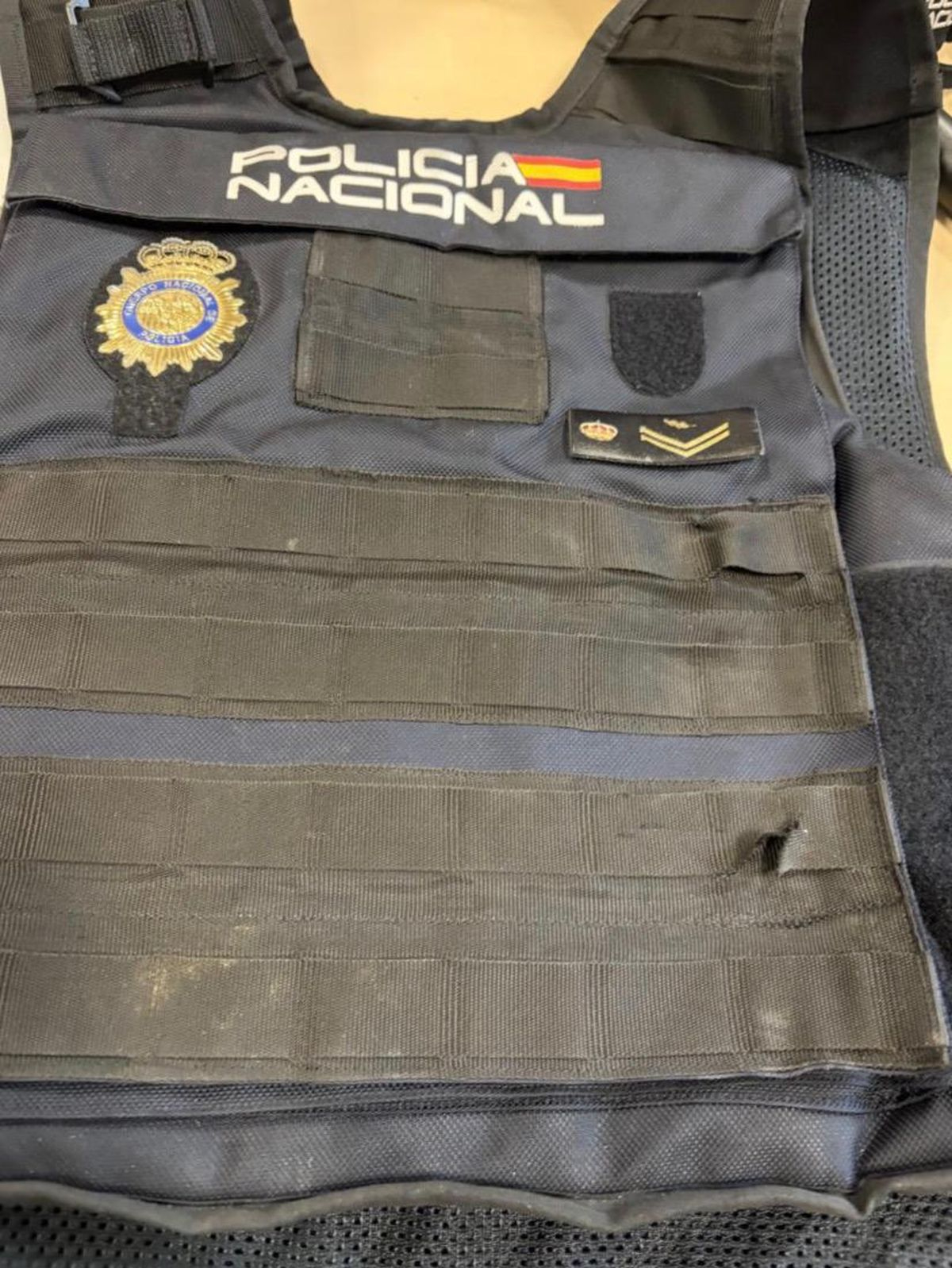 A la llegada de los agentes al lugar, el individuo no depuso su actitud y arremetió directamente contra ellos con el arma blanca para evitar su detención. Durante el enfrentamiento, intentó apuñalar en el costado a uno de los policías nacionales. Afortunadamente, el chaleco antibalas que portaba el agente impidió que la navaja le causara lesiones en una zona vital, evitando consecuencias que podrían haber sido fatales.