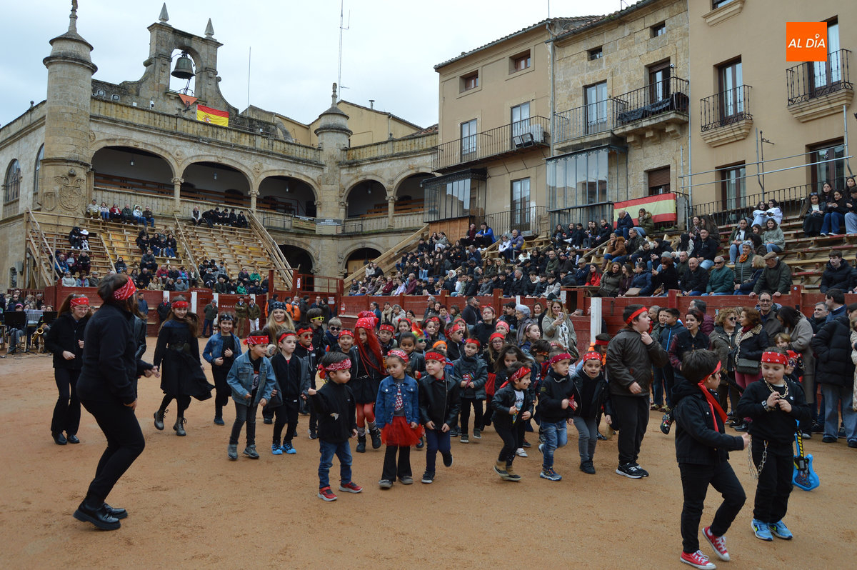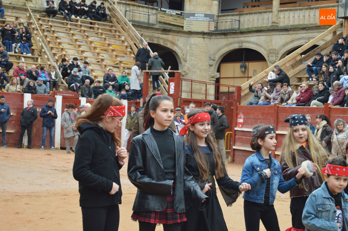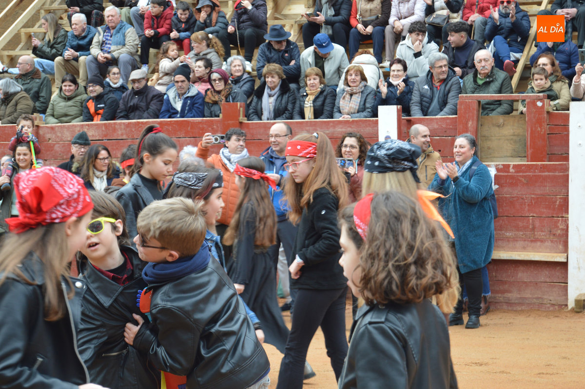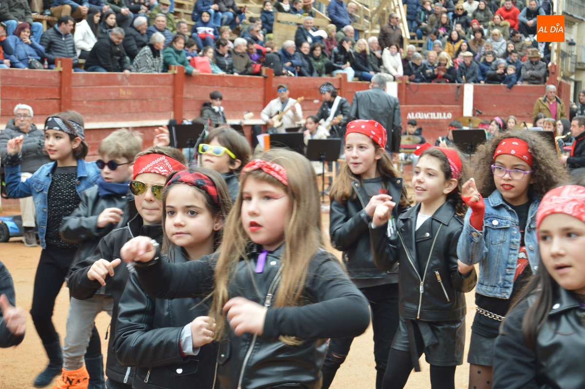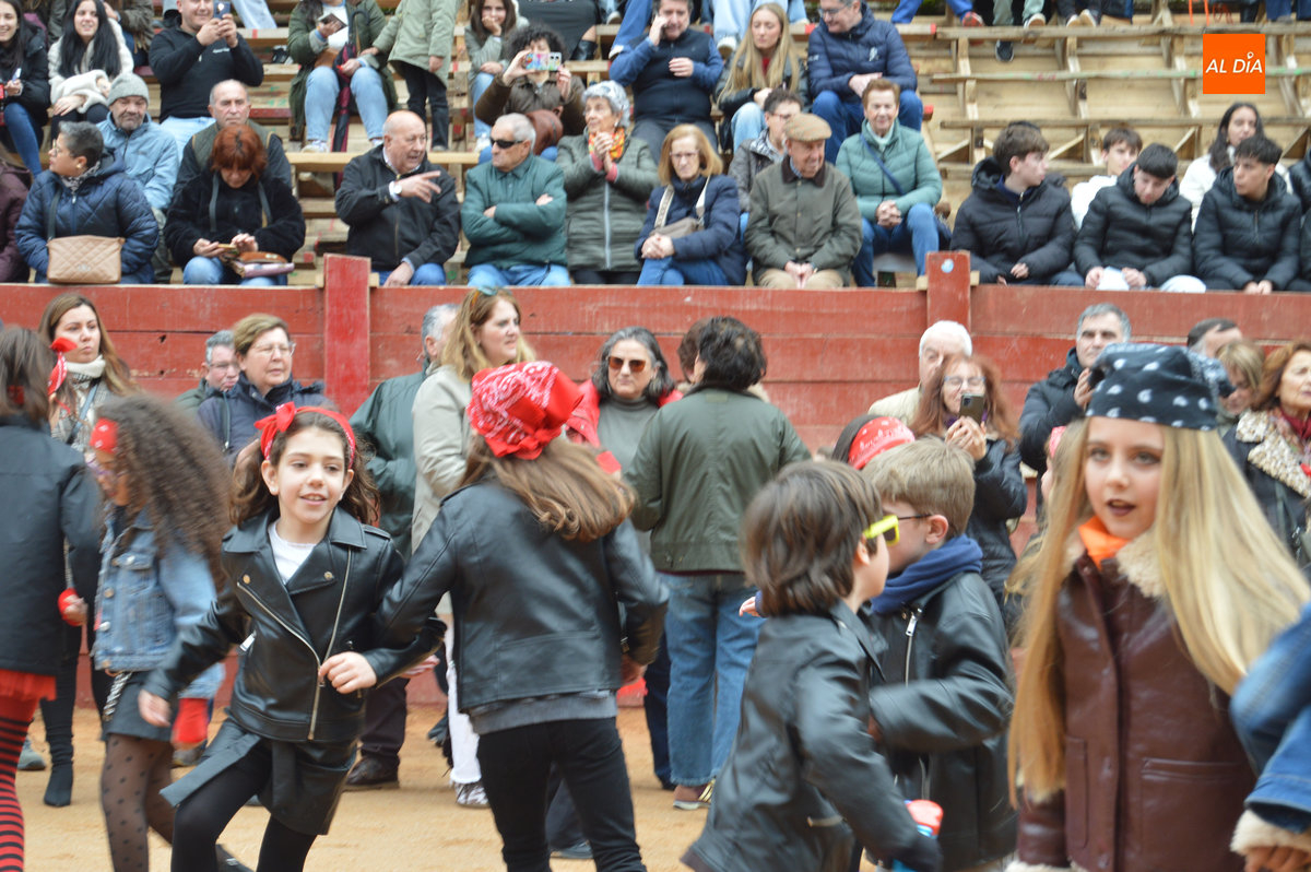 Una vez en el coso, como ya hicieran el pasado año, ofrecieron un pequeño espectáculo de baile acompañados por una equeña banda formada por miembros de la propia escuela. El repertorio incluyó conocidas canciones, así como temas populares del Carnaval, entre ellos la tradicional Campana Gorda.