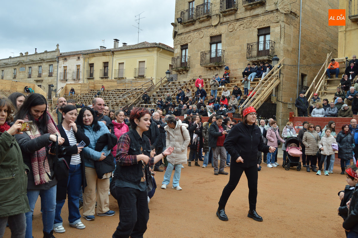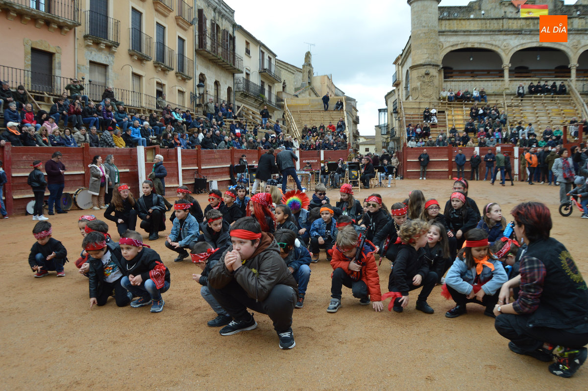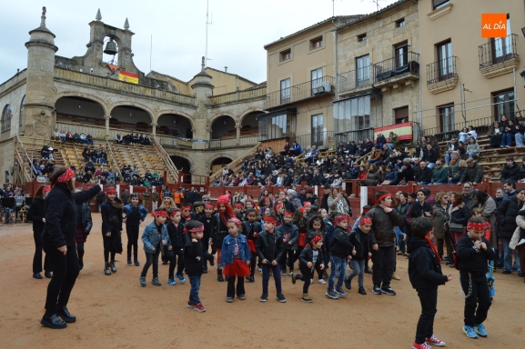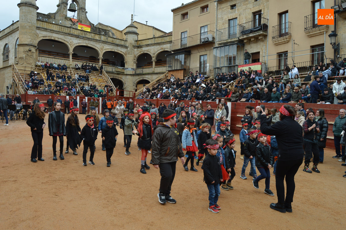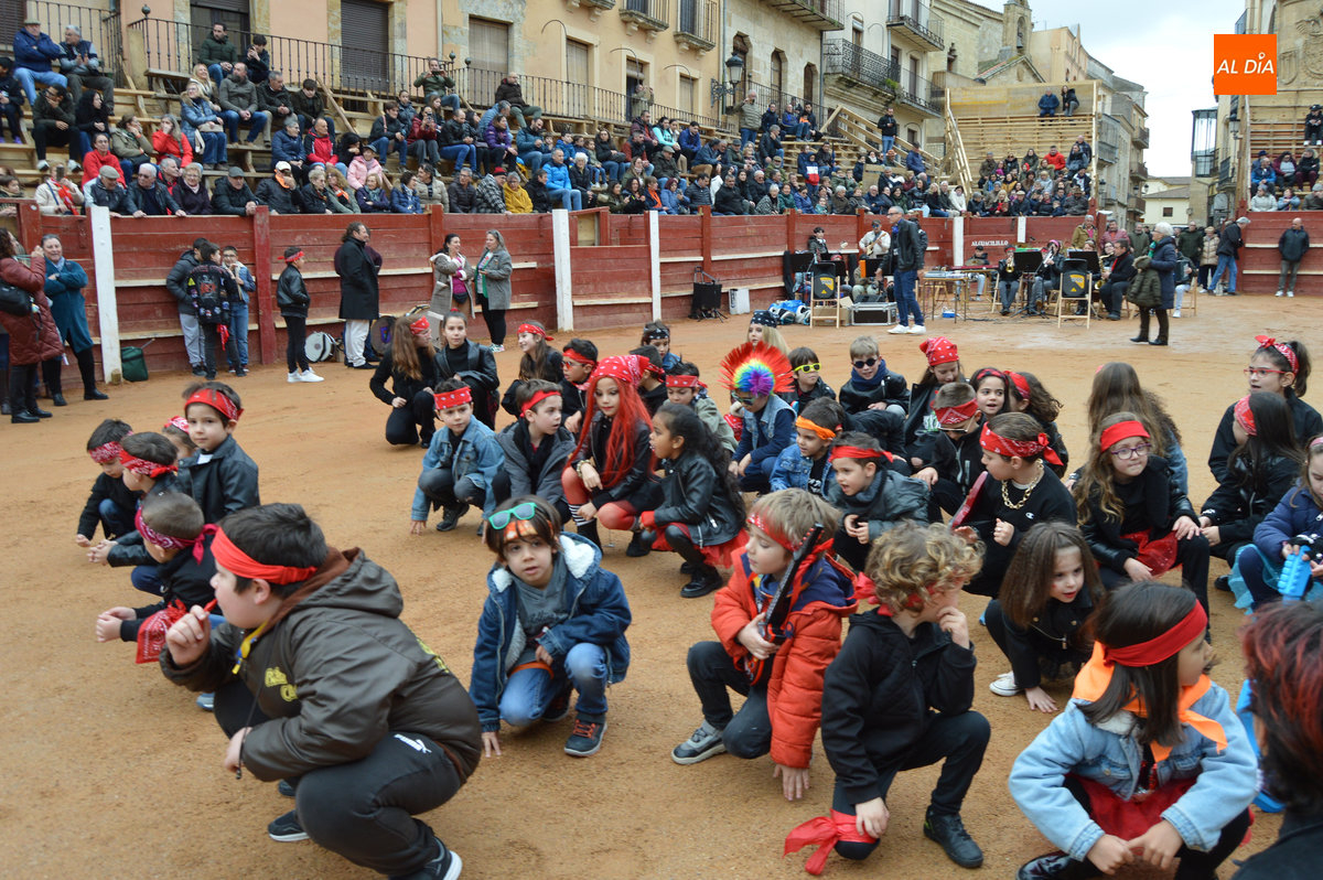 Una vez en el coso, como ya hicieran el pasado año, ofrecieron un pequeño espectáculo de baile acompañados por una equeña banda formada por miembros de la propia escuela. El repertorio incluyó conocidas canciones, así como temas populares del Carnaval, entre ellos la tradicional Campana Gorda.