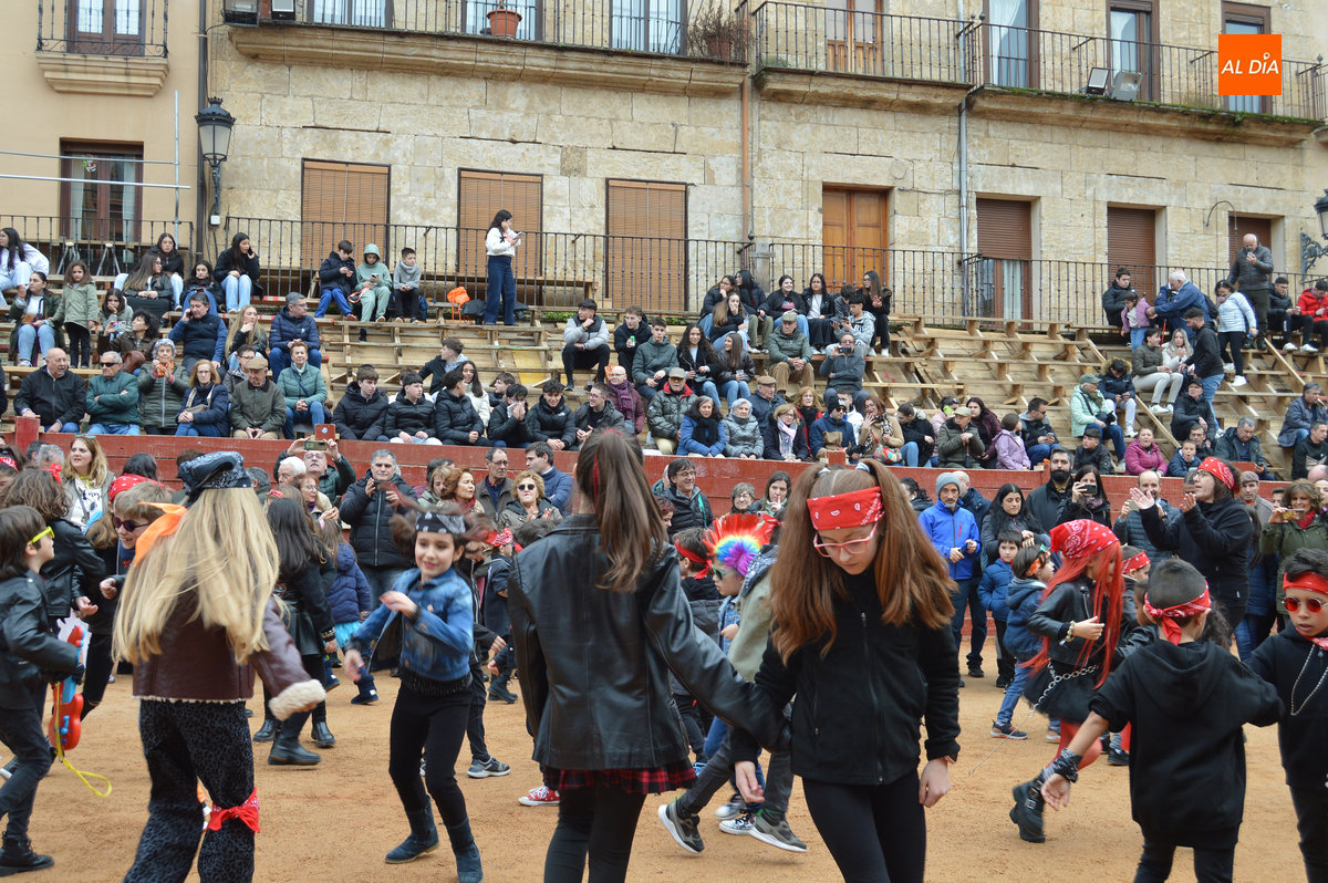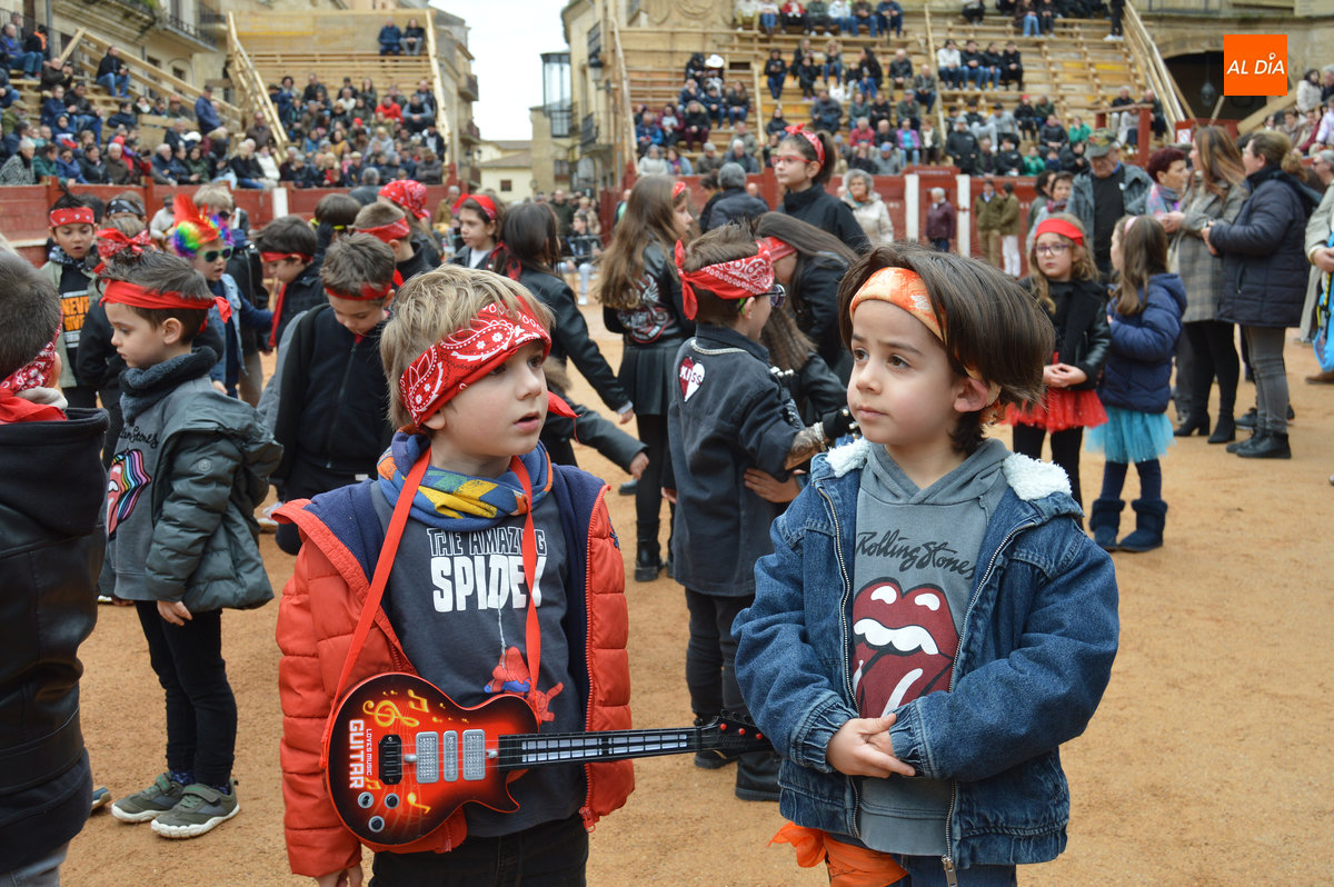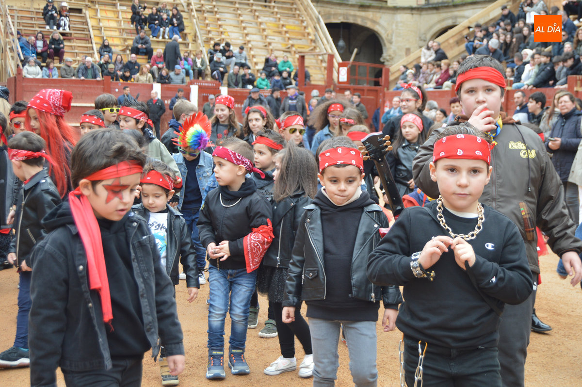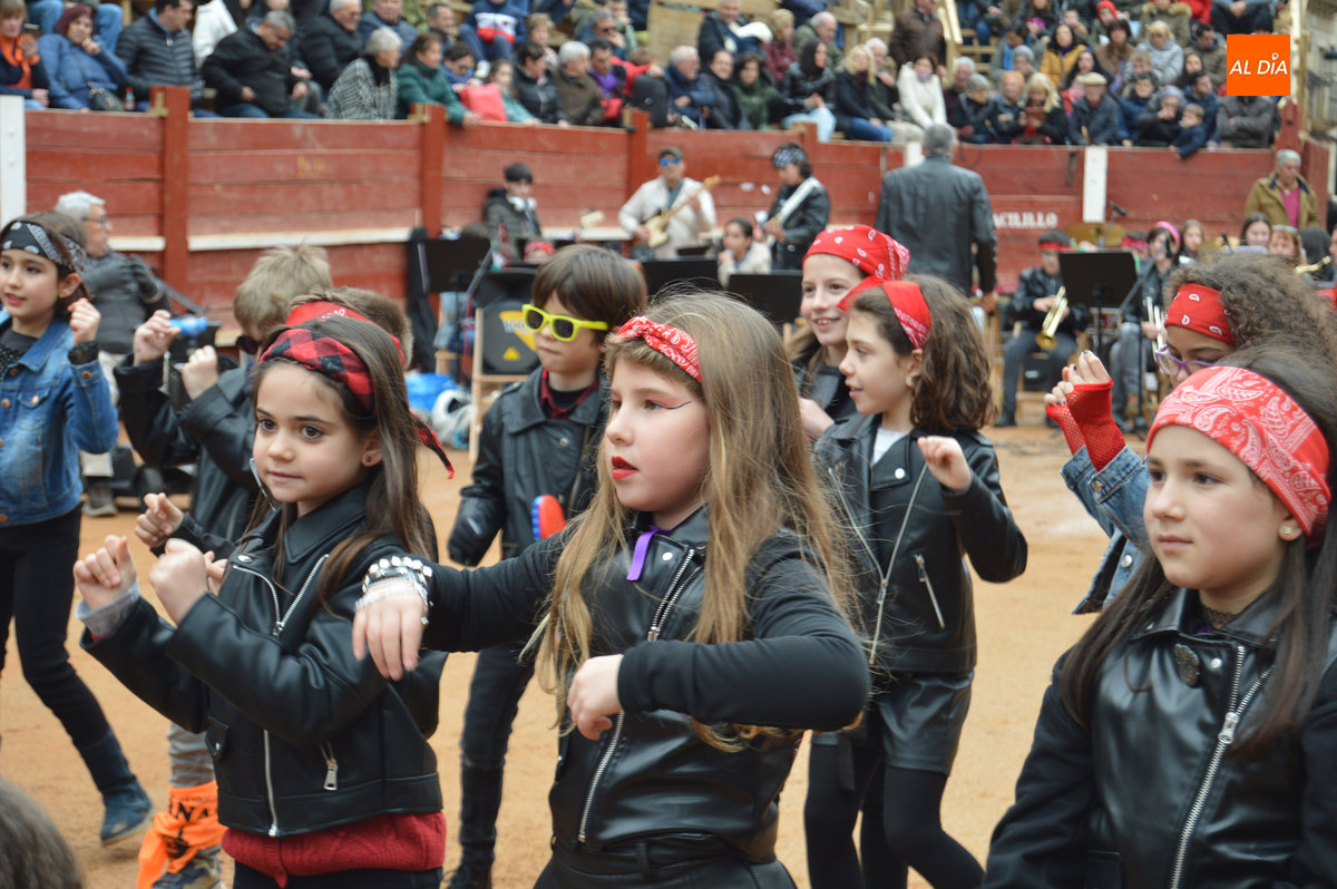 Alumnos y profesores recorrieron las calles disfrazados de rockeros de los 90 y ofrecieron un espectáculo musical y de baile en la Plaza de Toros.