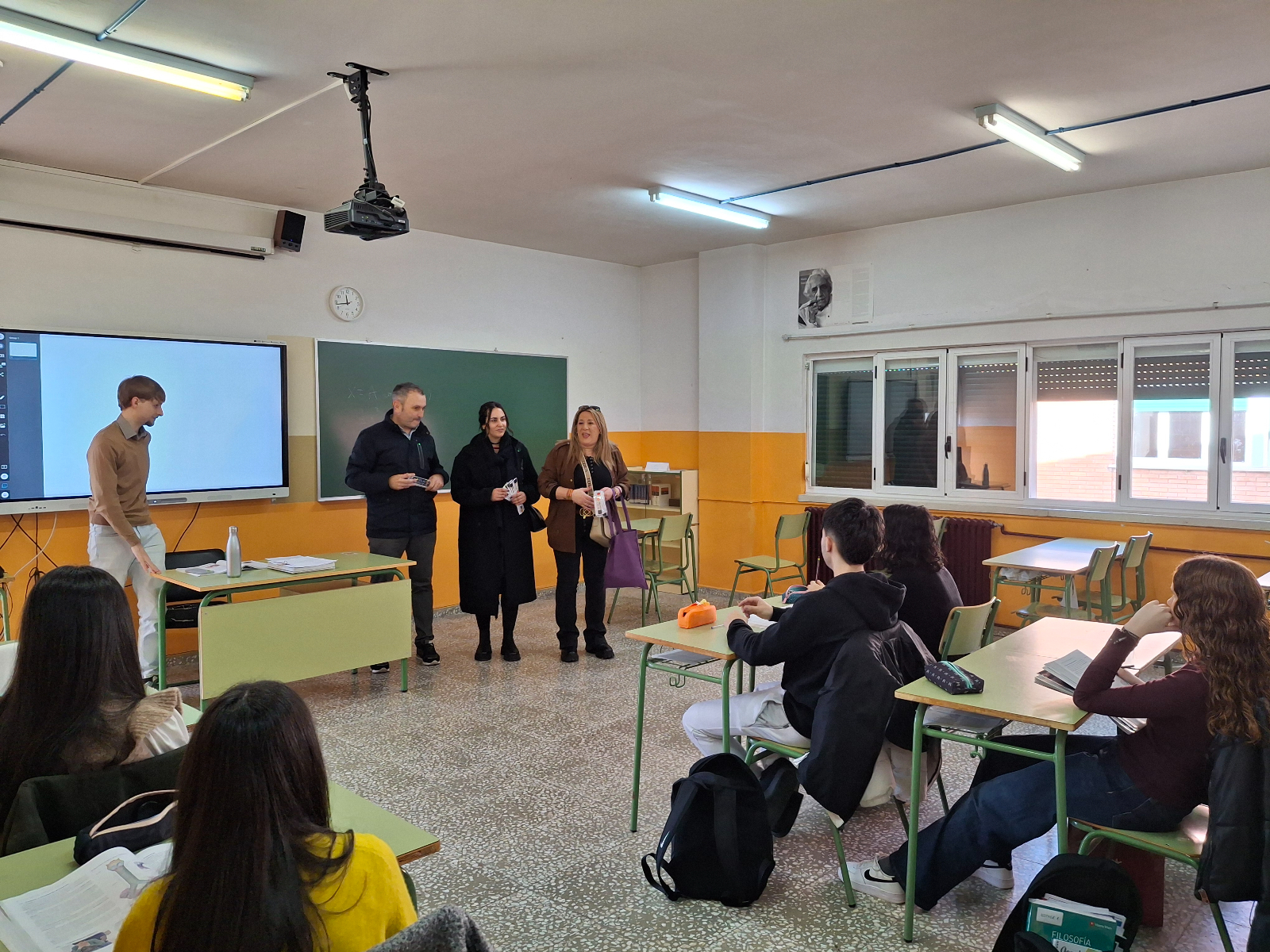 La delegada de Juventud, Ana Castaño, acompañada por la delegada de Educación, Paola Martín Muñoz, y el delegado de Policía Local, Rubén Benito, han sido los encargados de hacer entrega de estos dispositivos en los distintos centros de Educación Secundaria de la localidad.