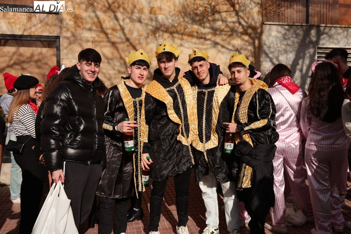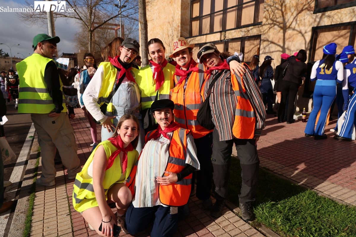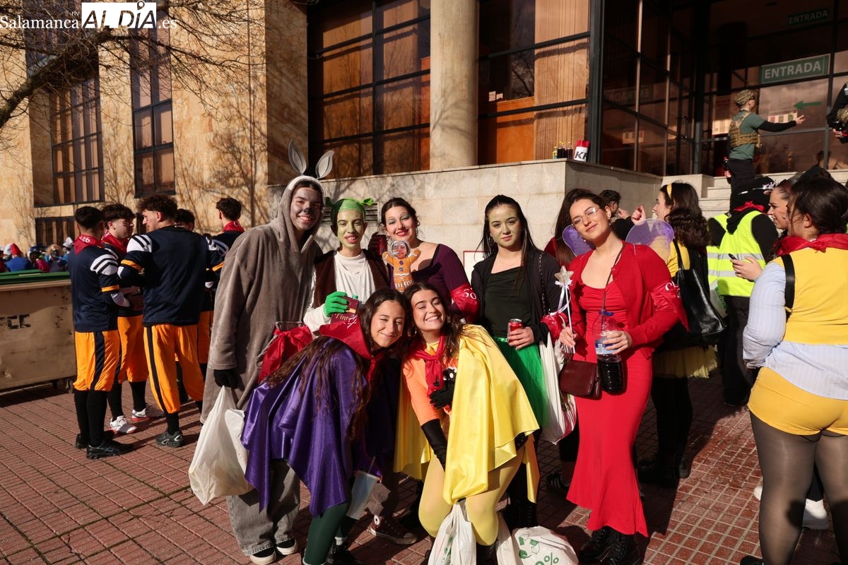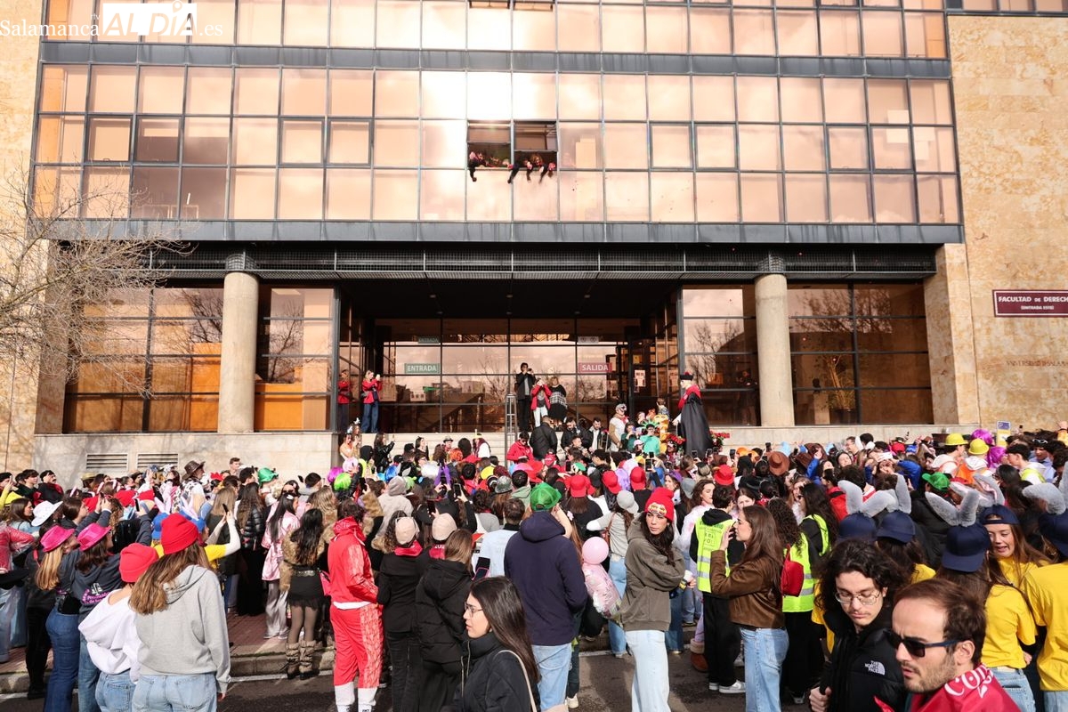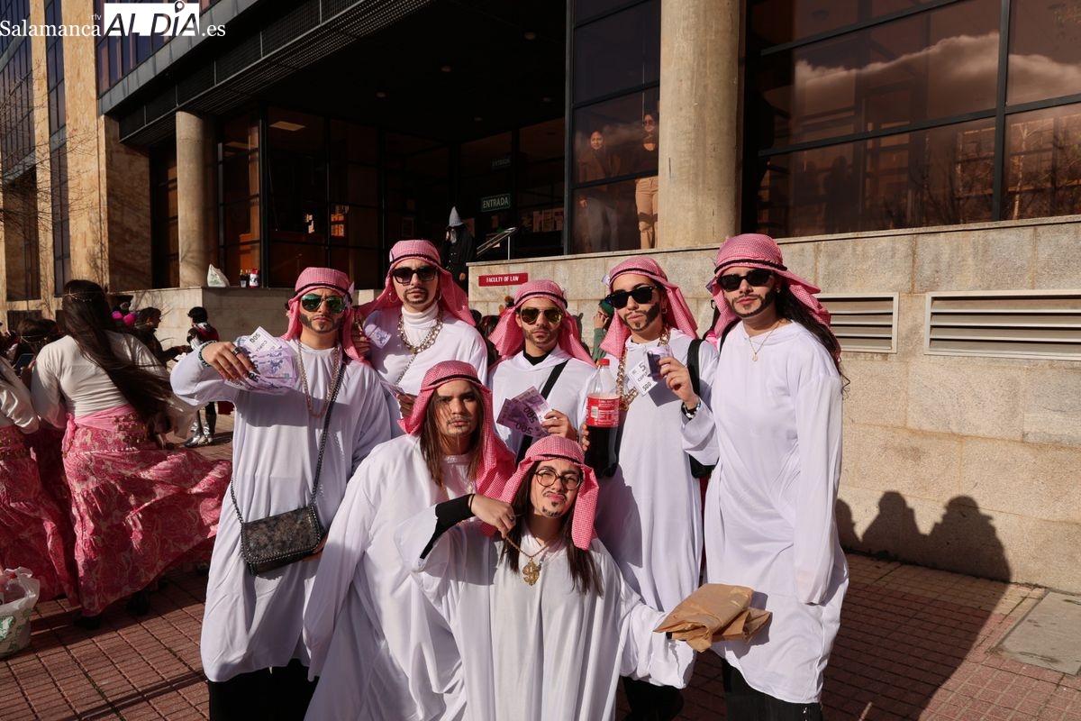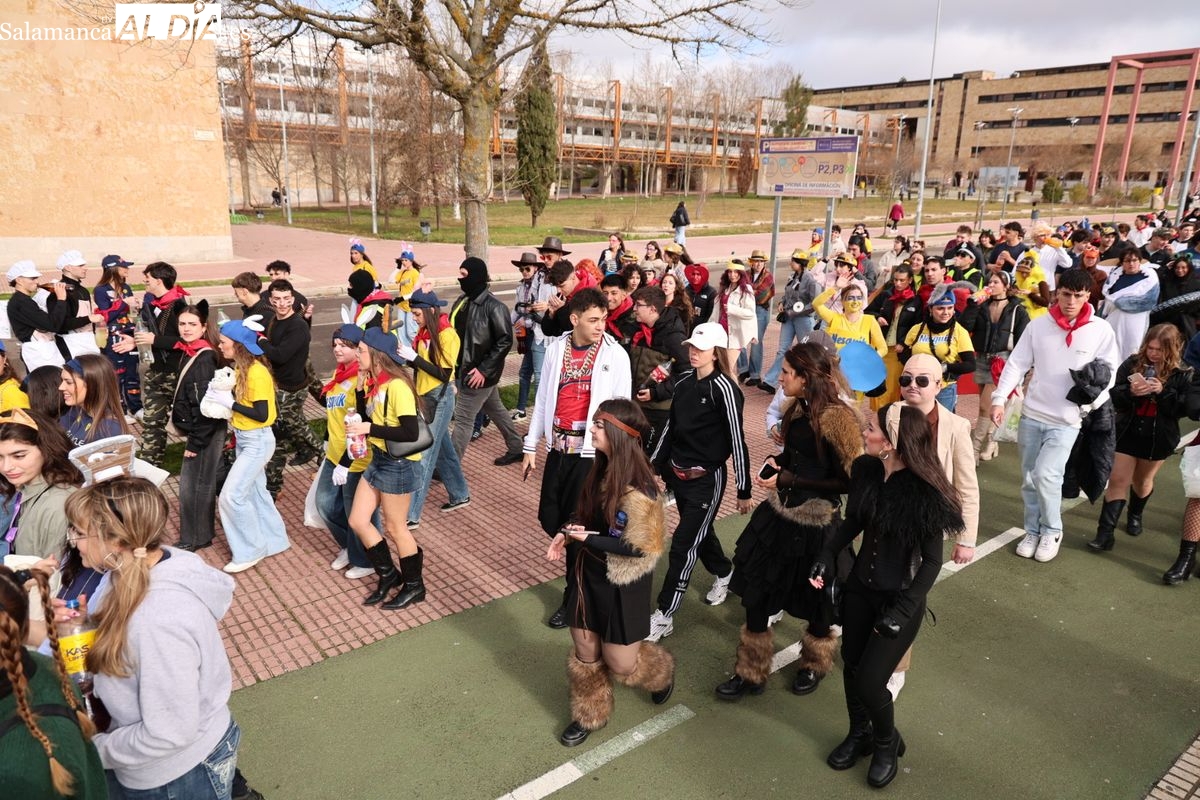 Acompañados por una charanga que ha amenizado el recorrido, los estudiantes han dejado aparcados por unas horas los códigos y manuales para celebrar a su patrón, San Raimundo de Peñafort. La imaginación ha sido la nota dominante en los disfraces, donde se han podido ver desde referencias a la actualidad política y social hasta propuestas grupales clásicas, consolidando este evento como uno de los más vistosos del calendario estudiantil salmantino.