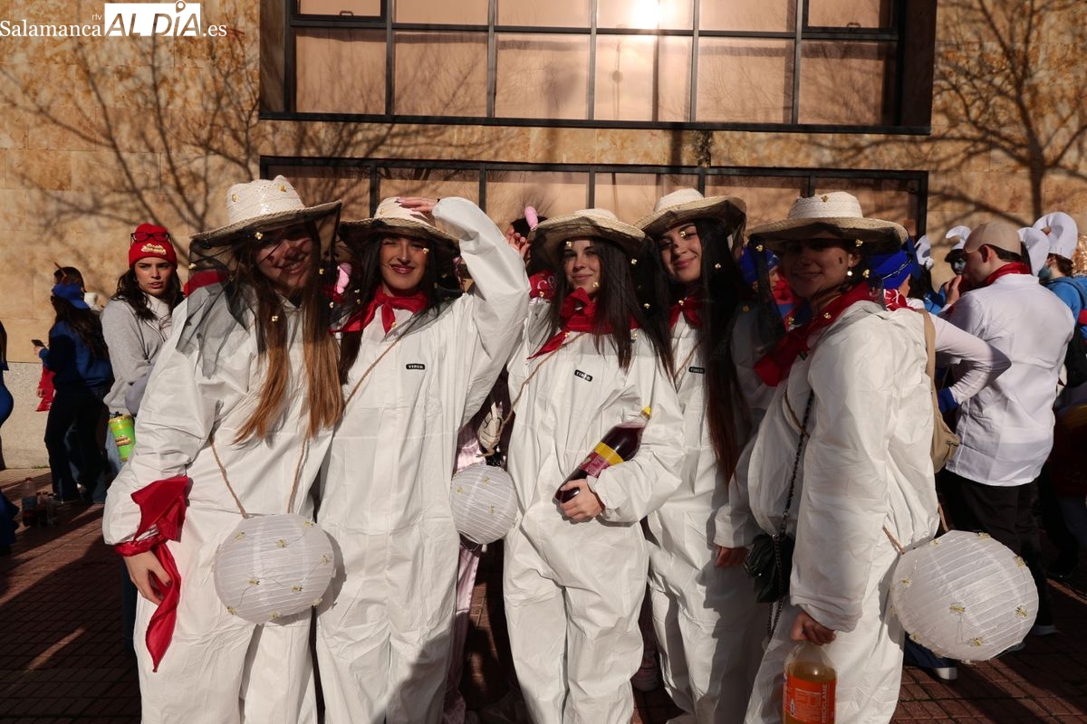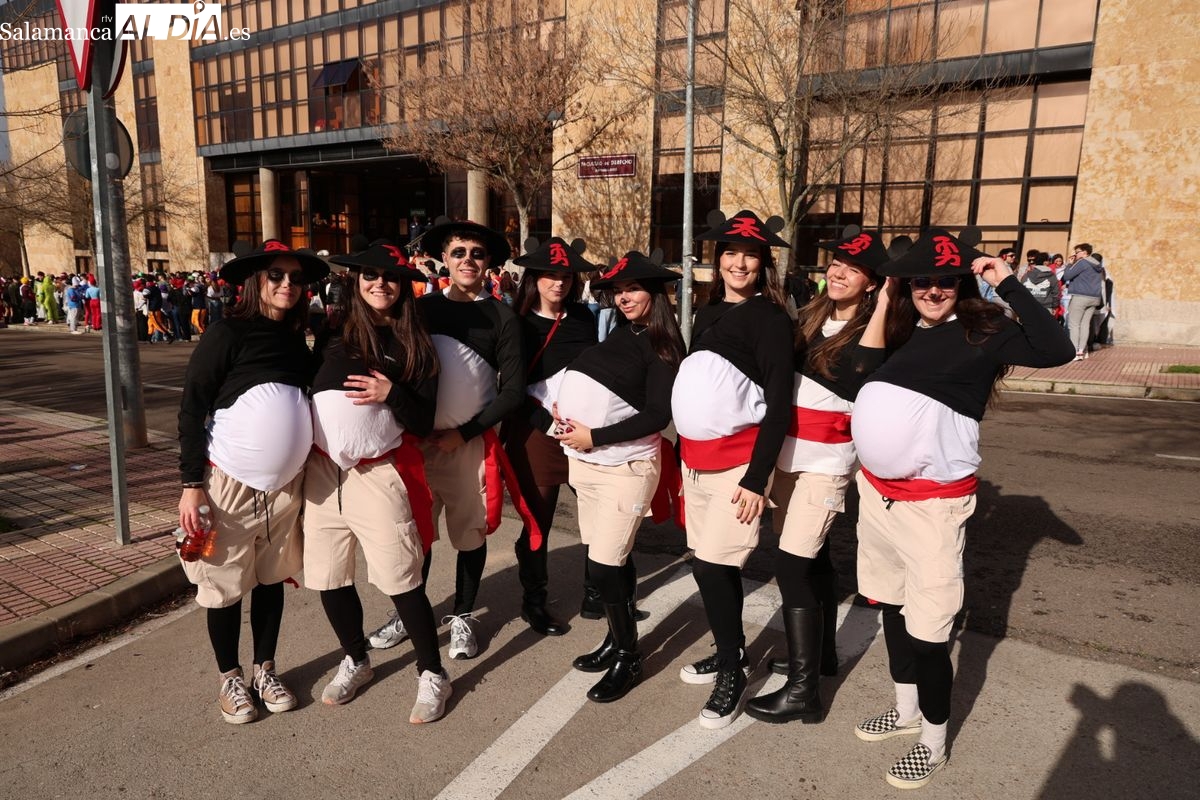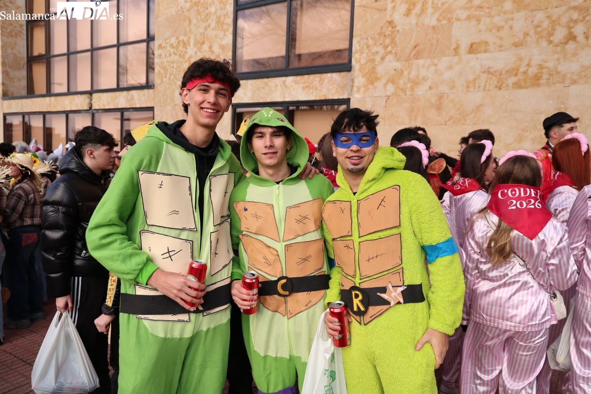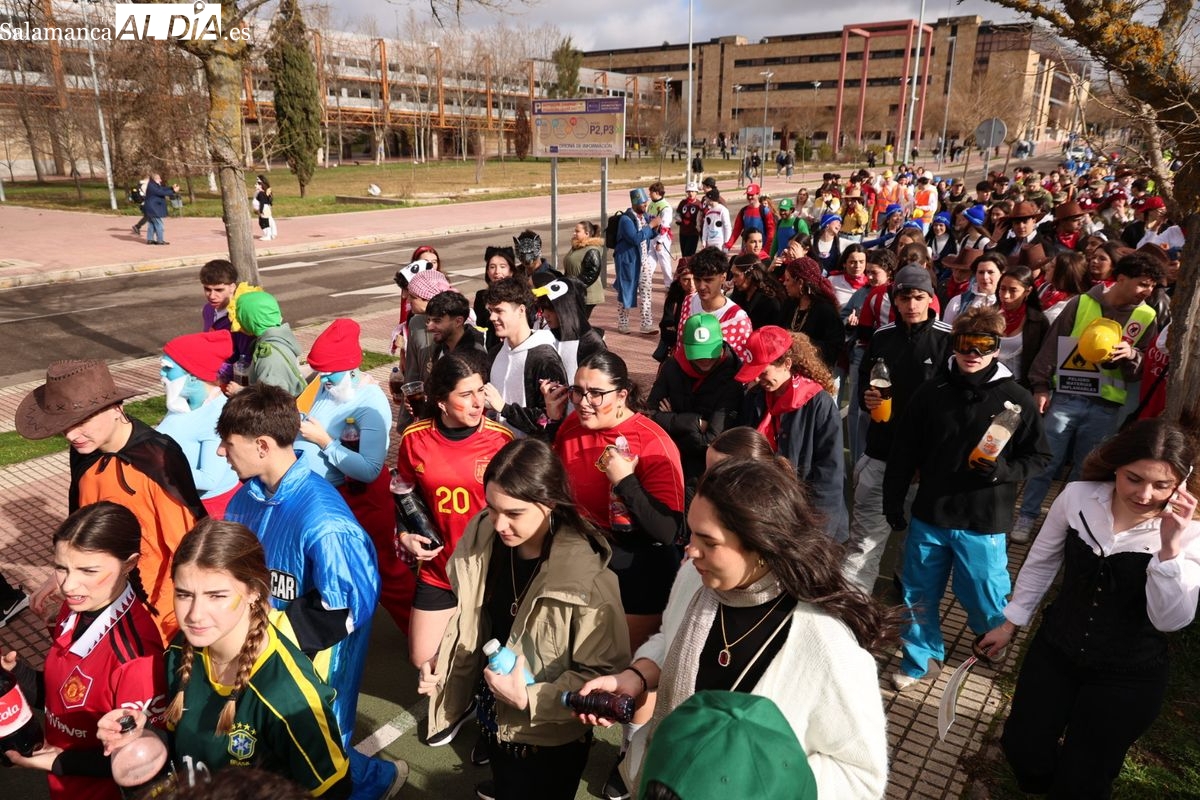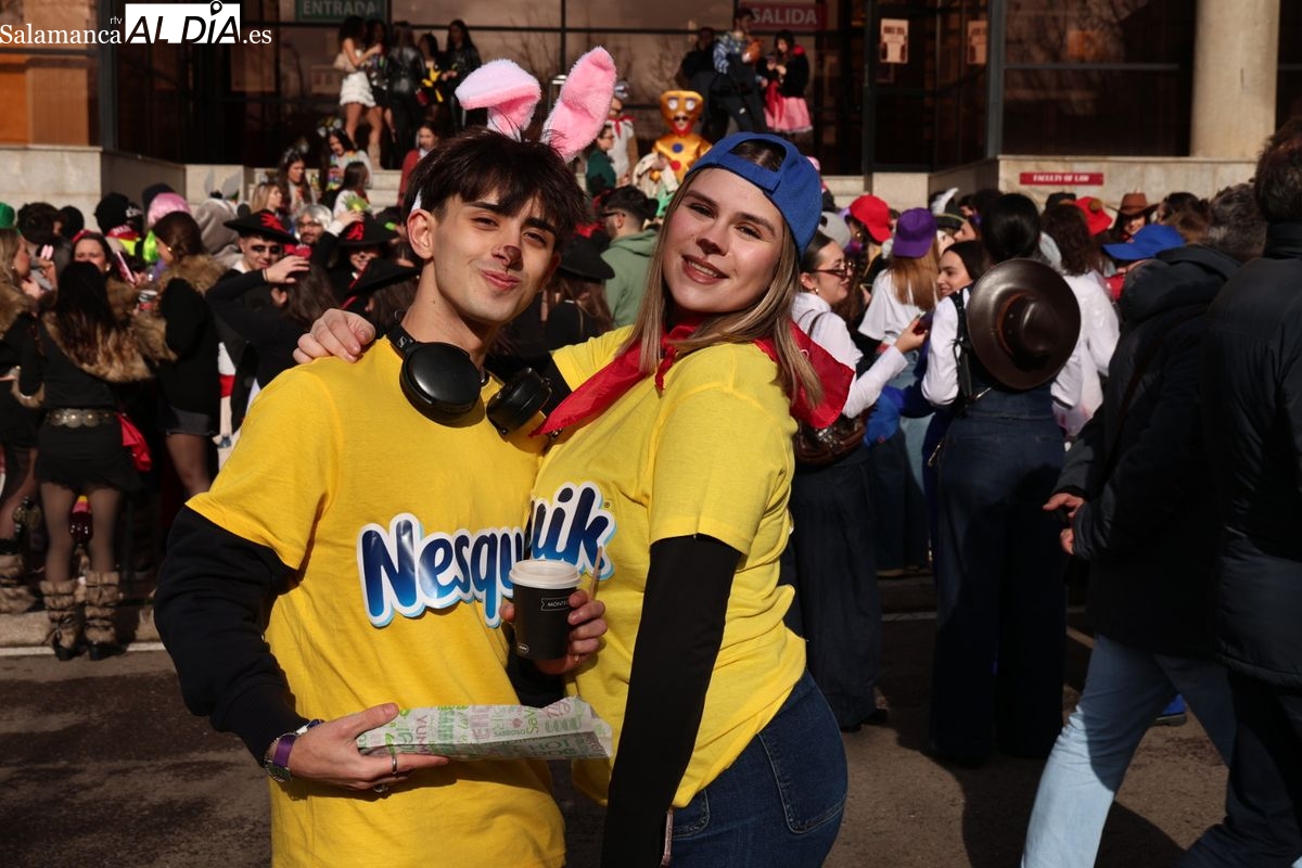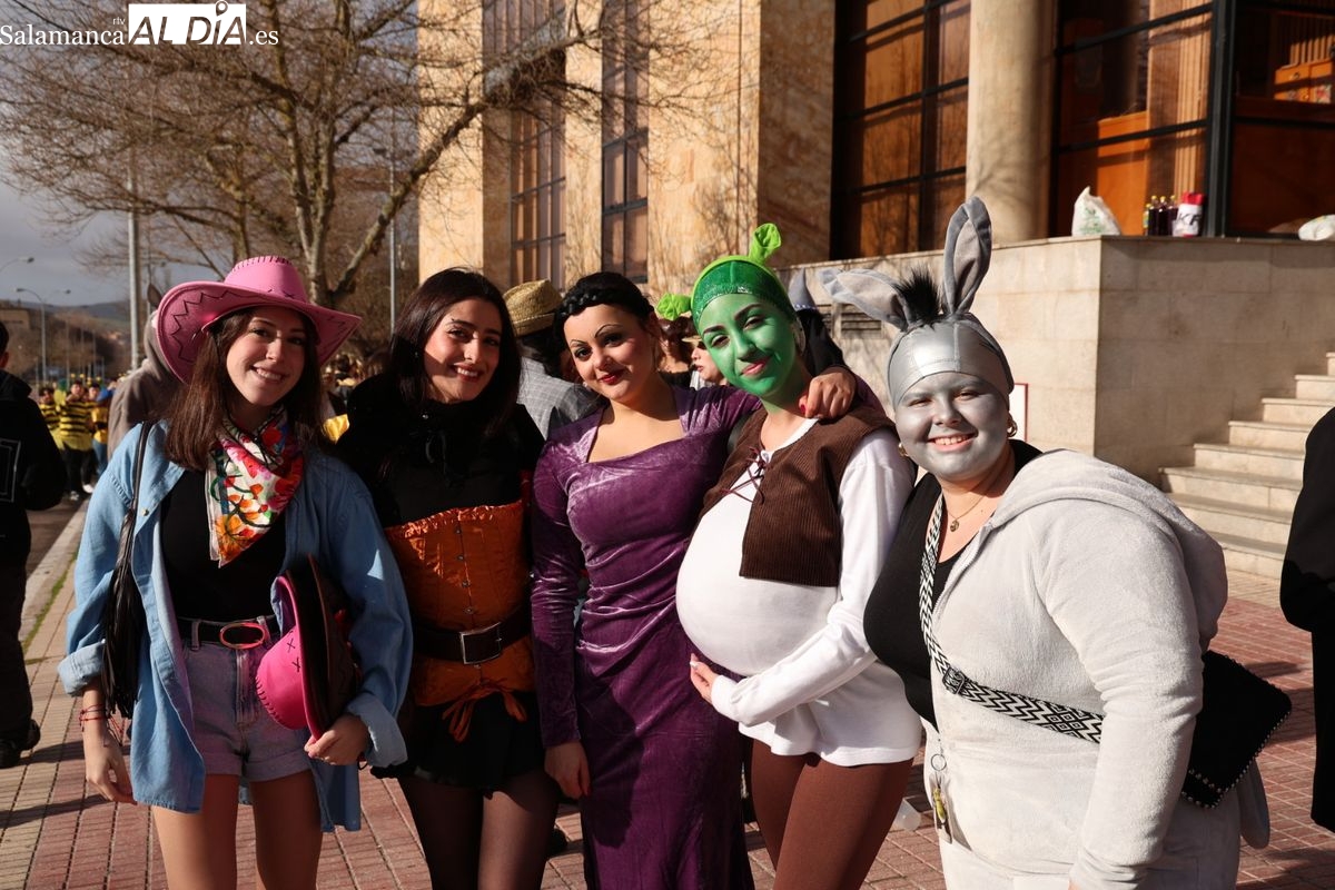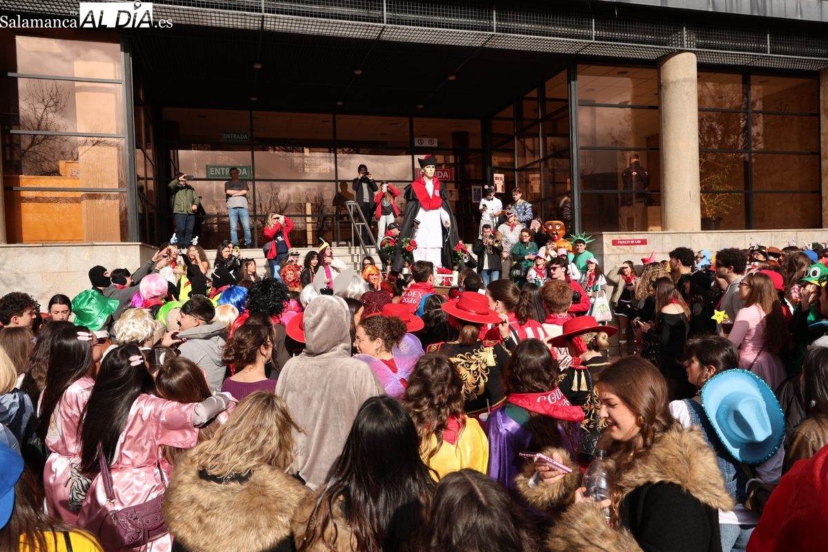 Acompañados por una charanga que ha amenizado el recorrido, los estudiantes han dejado aparcados por unas horas los códigos y manuales para celebrar a su patrón, San Raimundo de Peñafort. La imaginación ha sido la nota dominante en los disfraces, donde se han podido ver desde referencias a la actualidad política y social hasta propuestas grupales clásicas, consolidando este evento como uno de los más vistosos del calendario estudiantil salmantino.