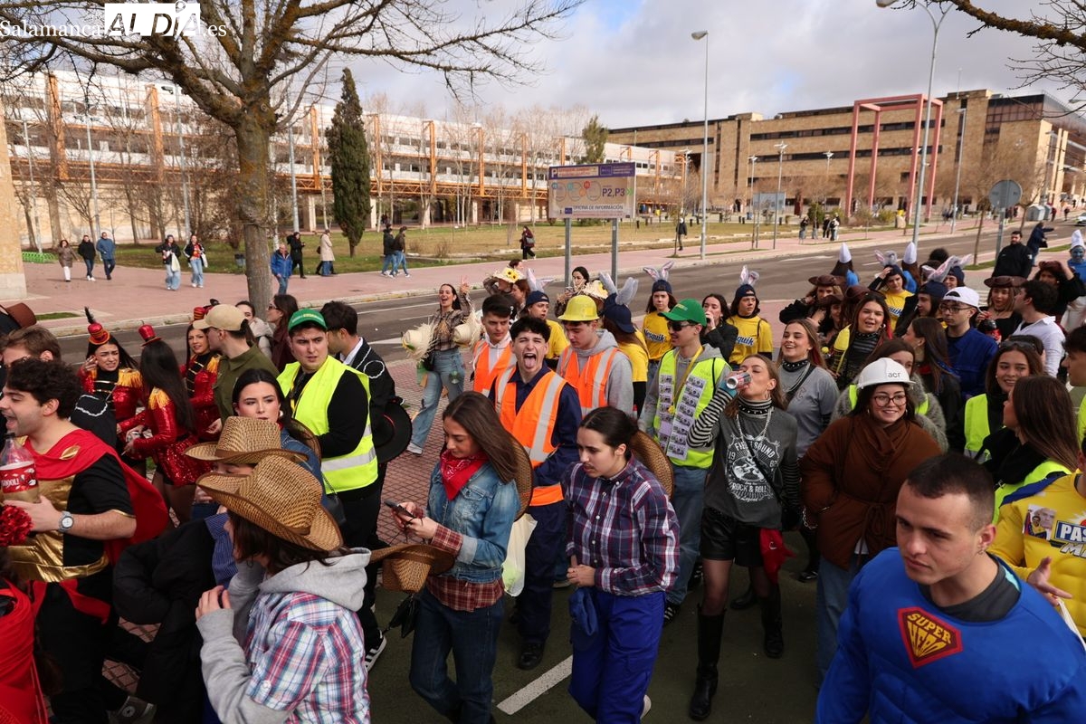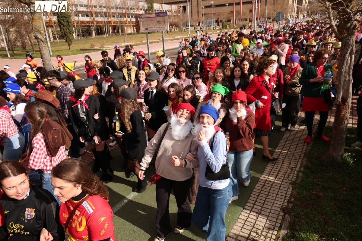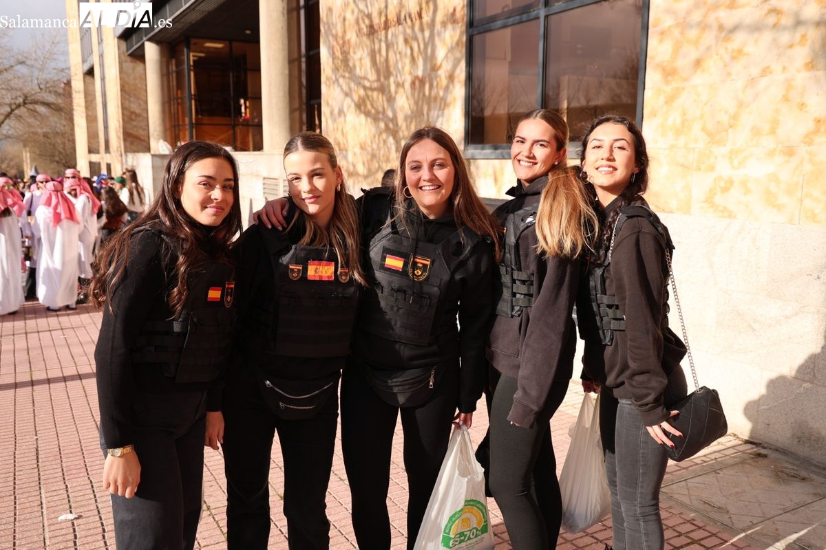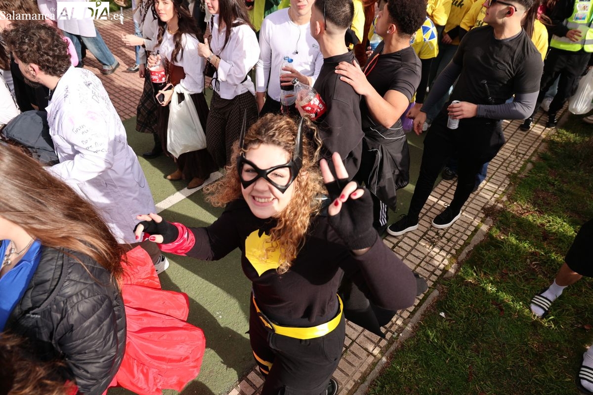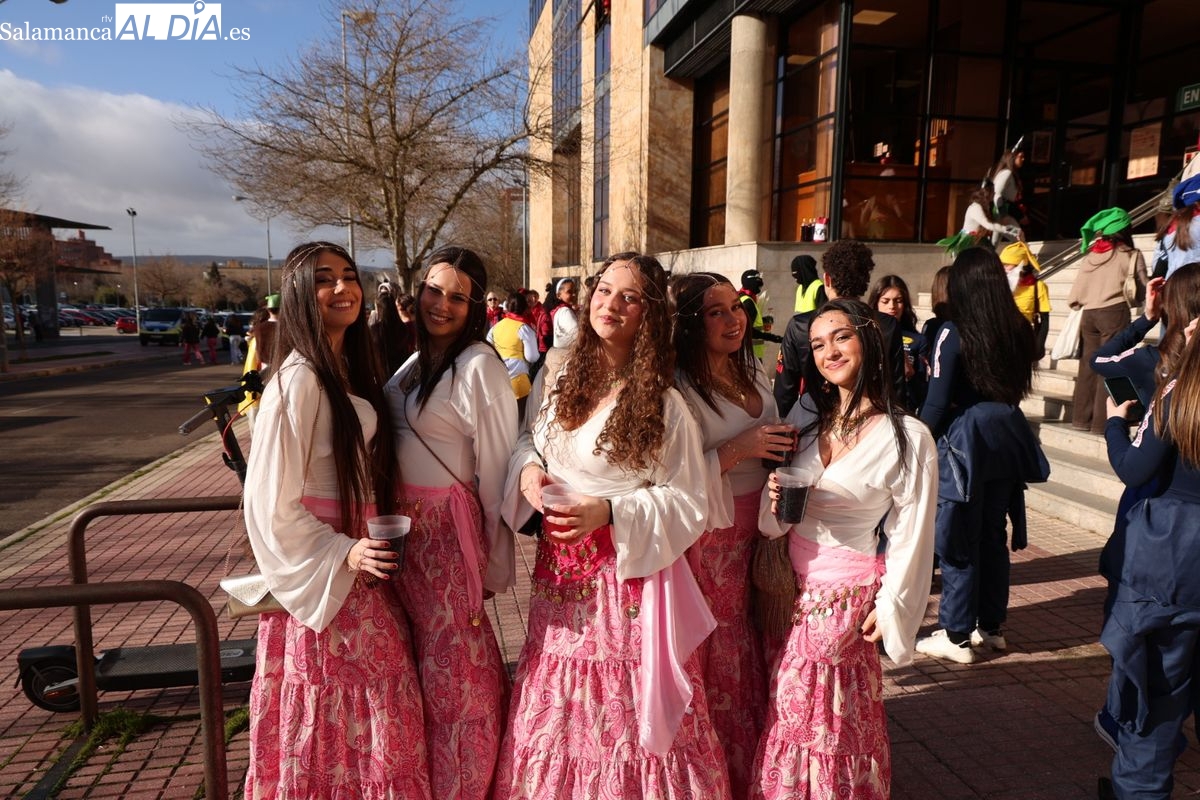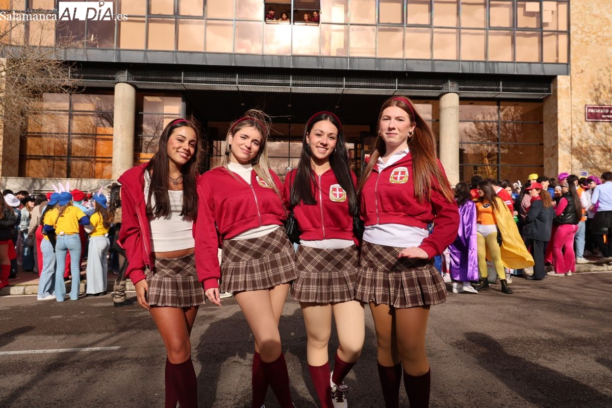Acompañados por una charanga que ha amenizado el recorrido, los estudiantes han dejado aparcados por unas horas los códigos y manuales para celebrar a su patrón, San Raimundo de Peñafort. La imaginación ha sido la nota dominante en los disfraces, donde se han podido ver desde referencias a la actualidad política y social hasta propuestas grupales clásicas, consolidando este evento como uno de los más vistosos del calendario estudiantil salmantino.