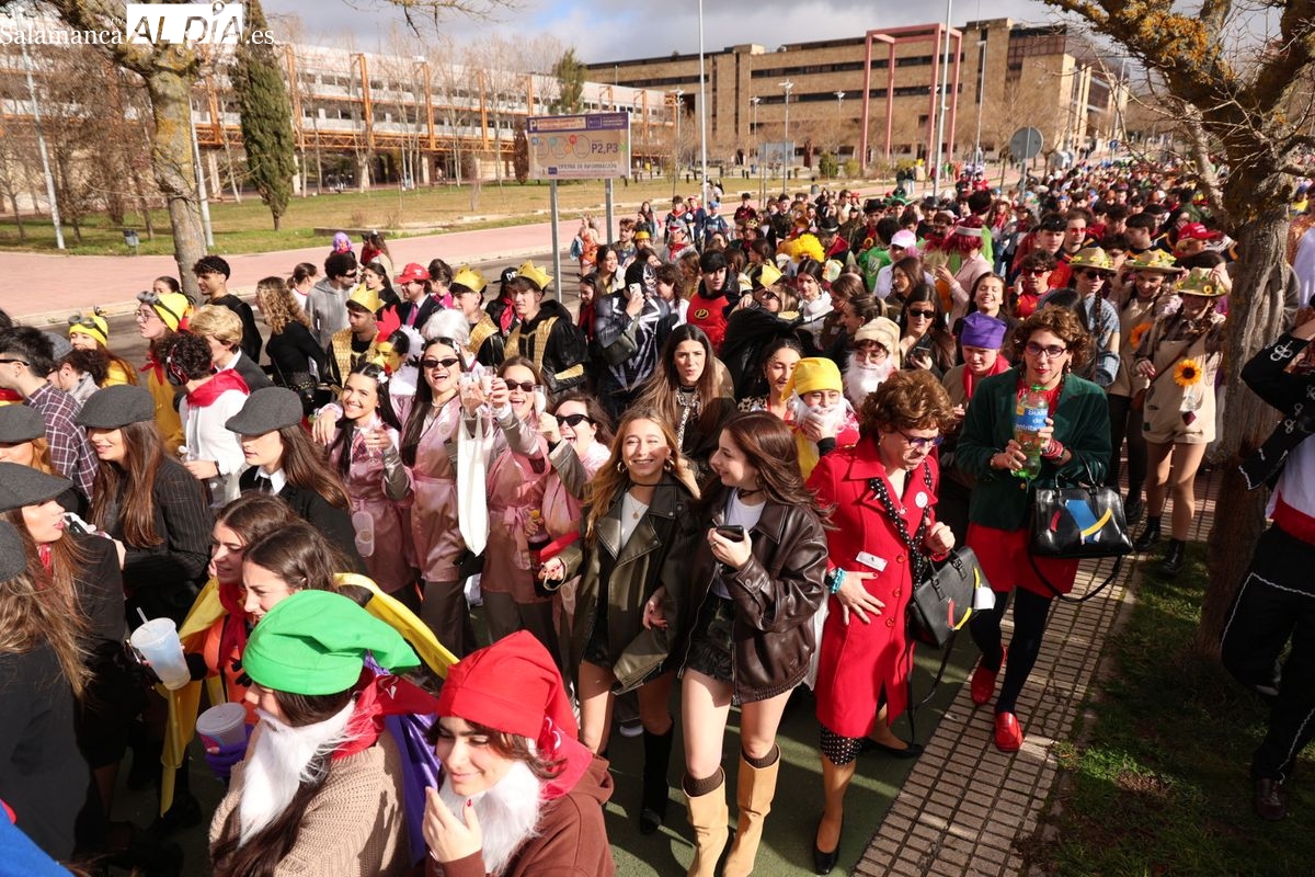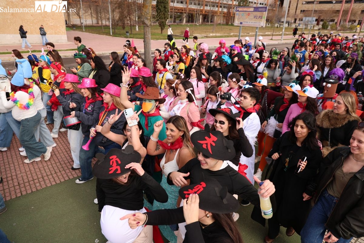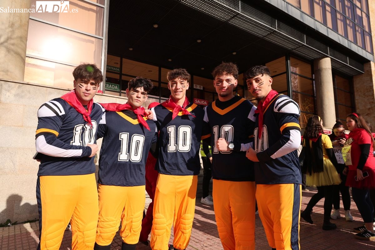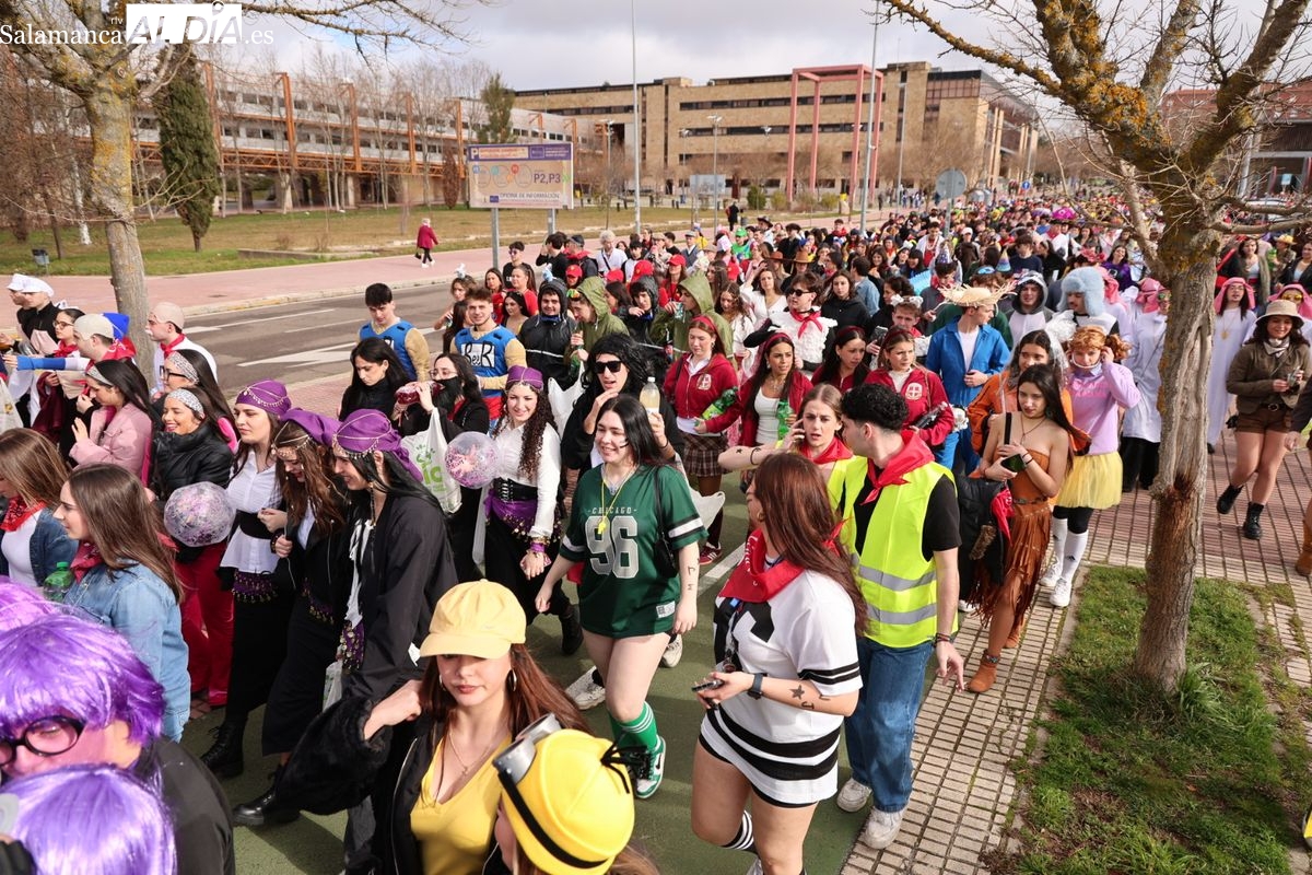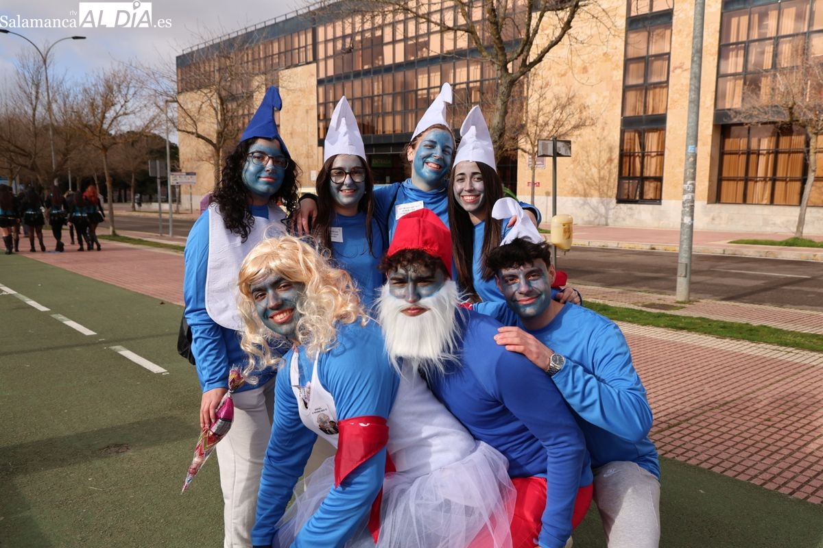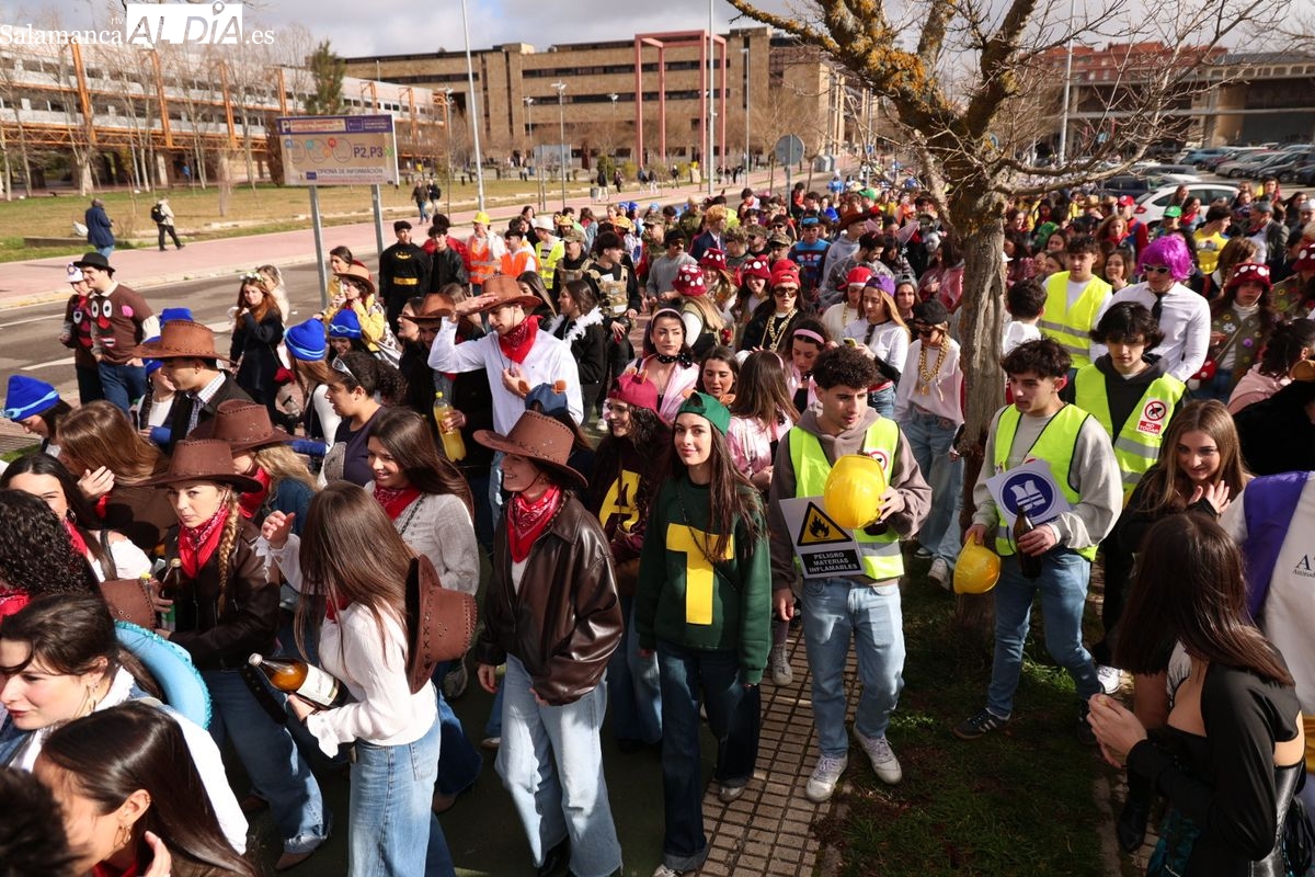 Acompañados por una charanga que ha amenizado el recorrido, los estudiantes han dejado aparcados por unas horas los códigos y manuales para celebrar a su patrón, San Raimundo de Peñafort. La imaginación ha sido la nota dominante en los disfraces, donde se han podido ver desde referencias a la actualidad política y social hasta propuestas grupales clásicas, consolidando este evento como uno de los más vistosos del calendario estudiantil salmantino.