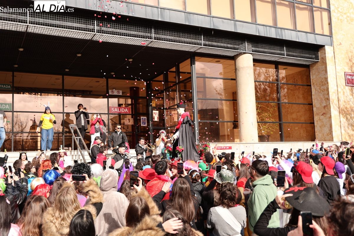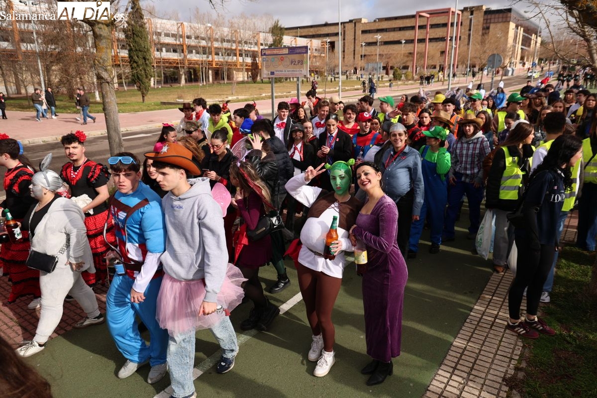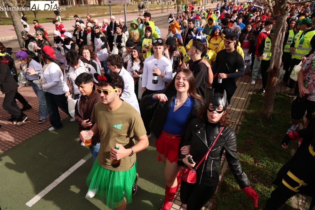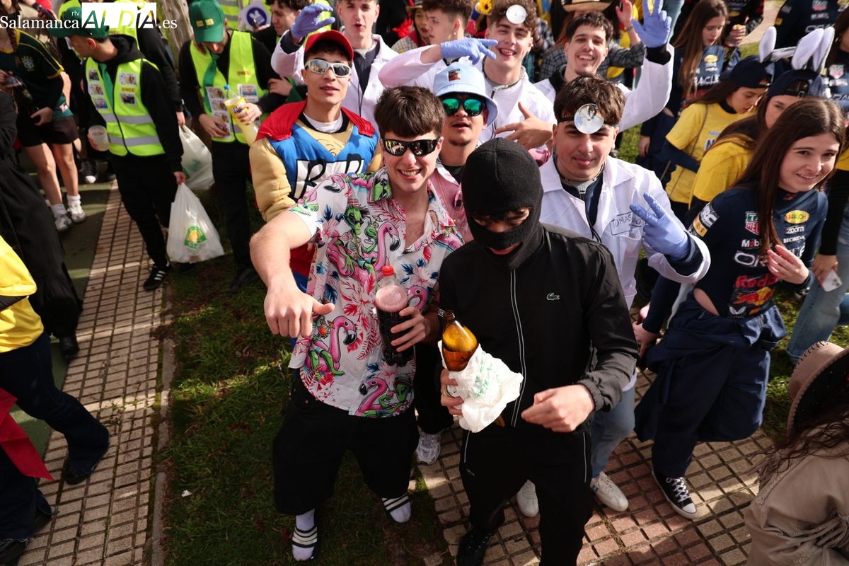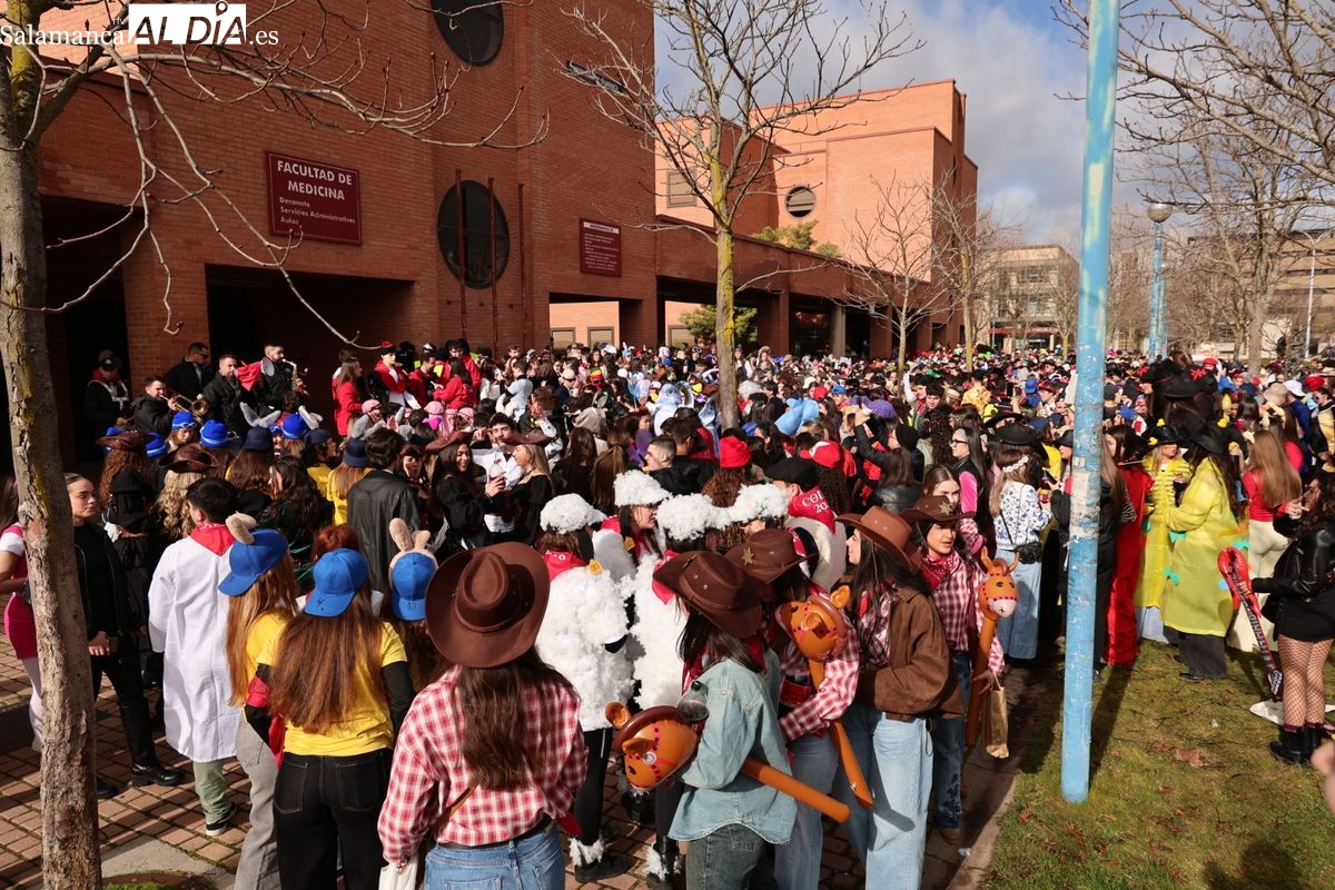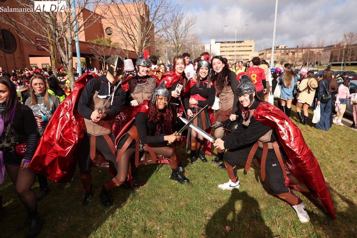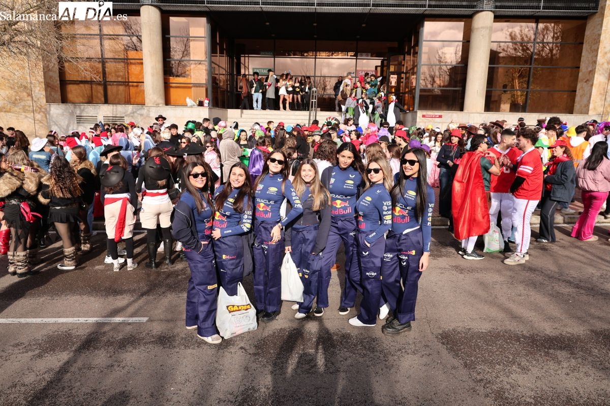 Acompañados por una charanga que ha amenizado el recorrido, los estudiantes han dejado aparcados por unas horas los códigos y manuales para celebrar a su patrón, San Raimundo de Peñafort. La imaginación ha sido la nota dominante en los disfraces, donde se han podido ver desde referencias a la actualidad política y social hasta propuestas grupales clásicas, consolidando este evento como uno de los más vistosos del calendario estudiantil salmantino.