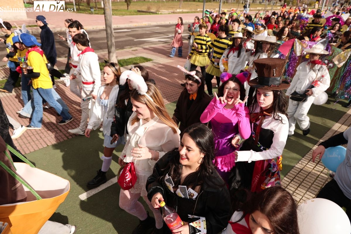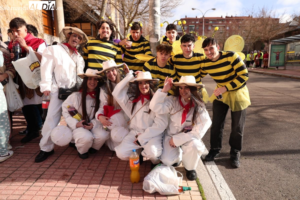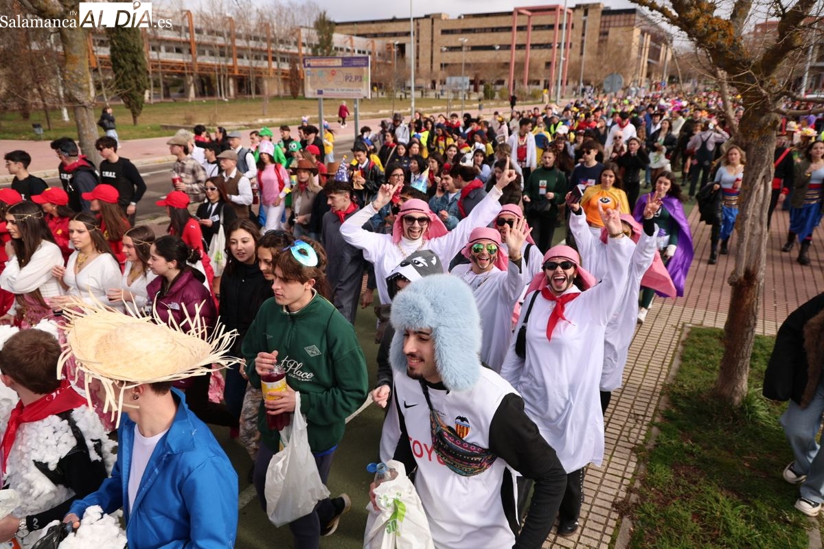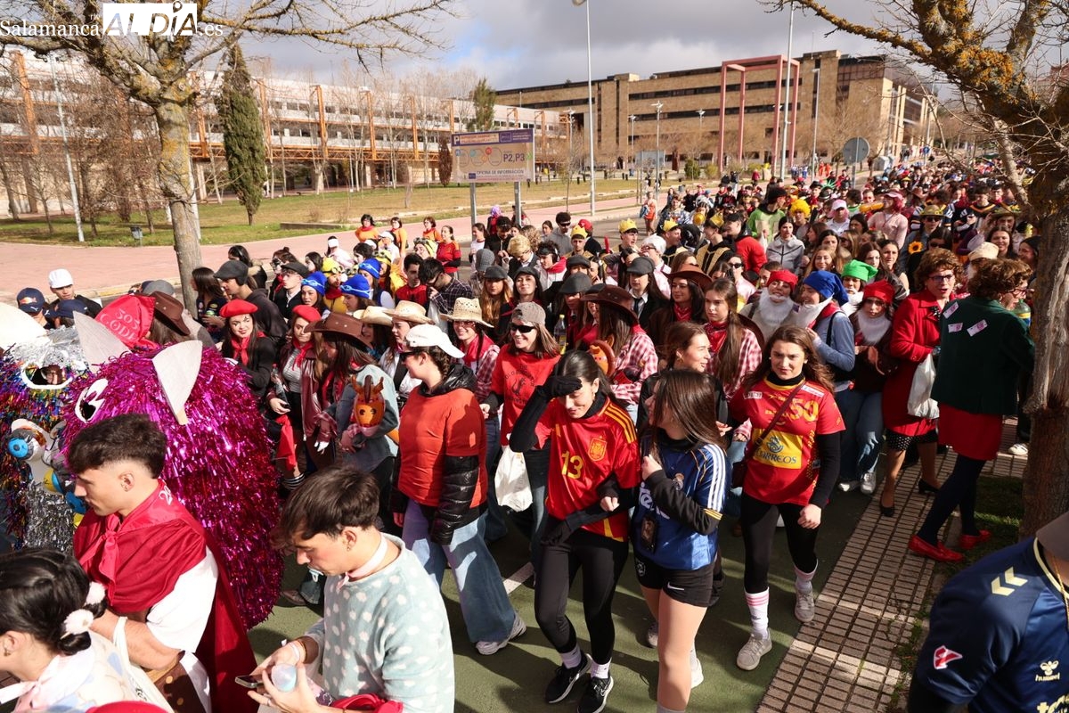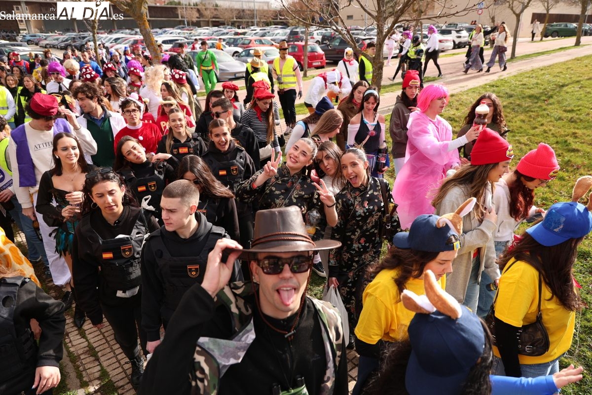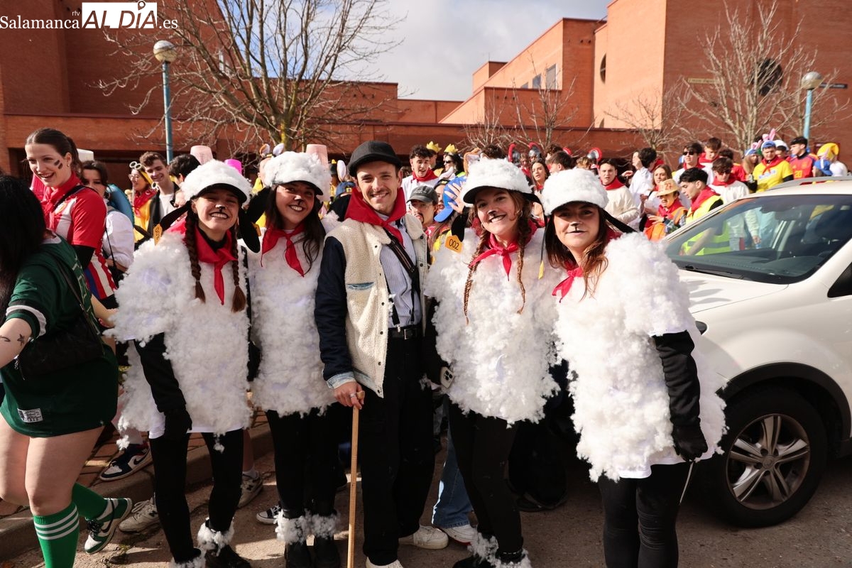 Acompañados por una charanga que ha amenizado el recorrido, los estudiantes han dejado aparcados por unas horas los códigos y manuales para celebrar a su patrón, San Raimundo de Peñafort. La imaginación ha sido la nota dominante en los disfraces, donde se han podido ver desde referencias a la actualidad política y social hasta propuestas grupales clásicas, consolidando este evento como uno de los más vistosos del calendario estudiantil salmantino.