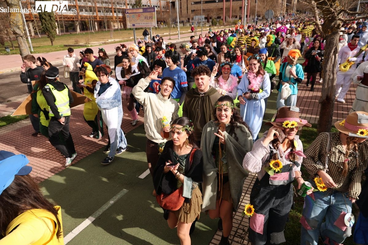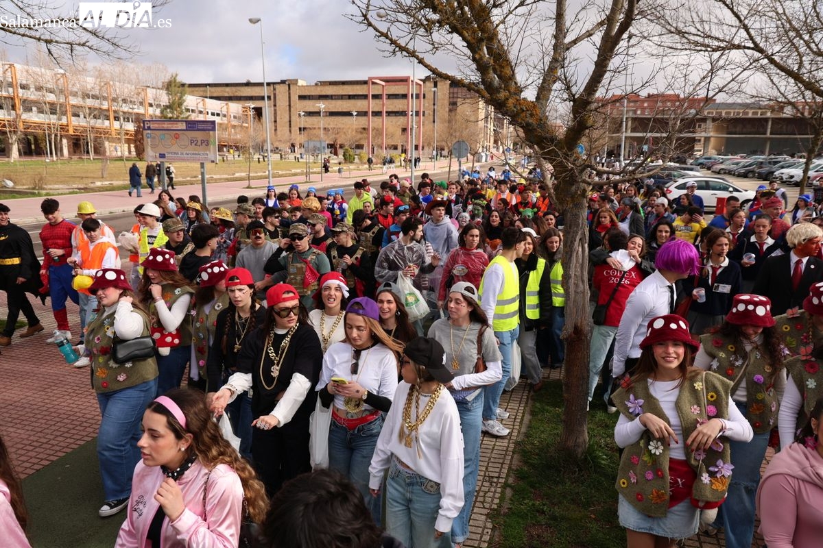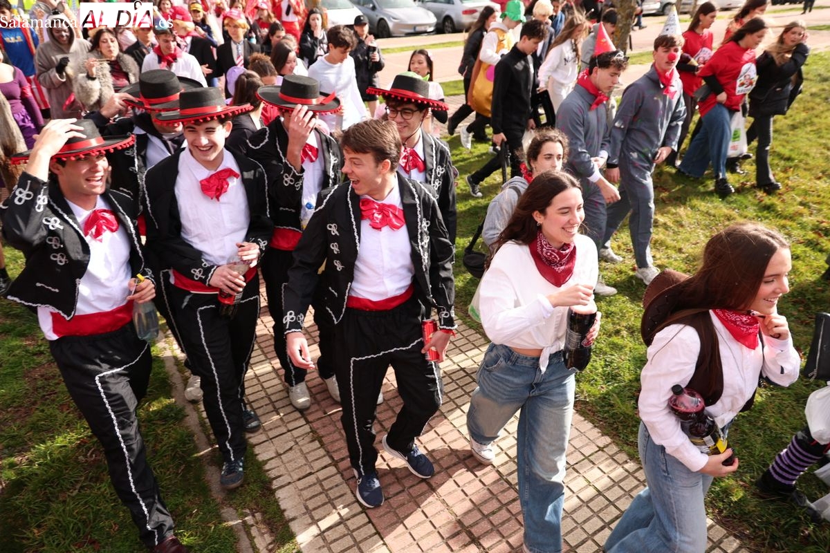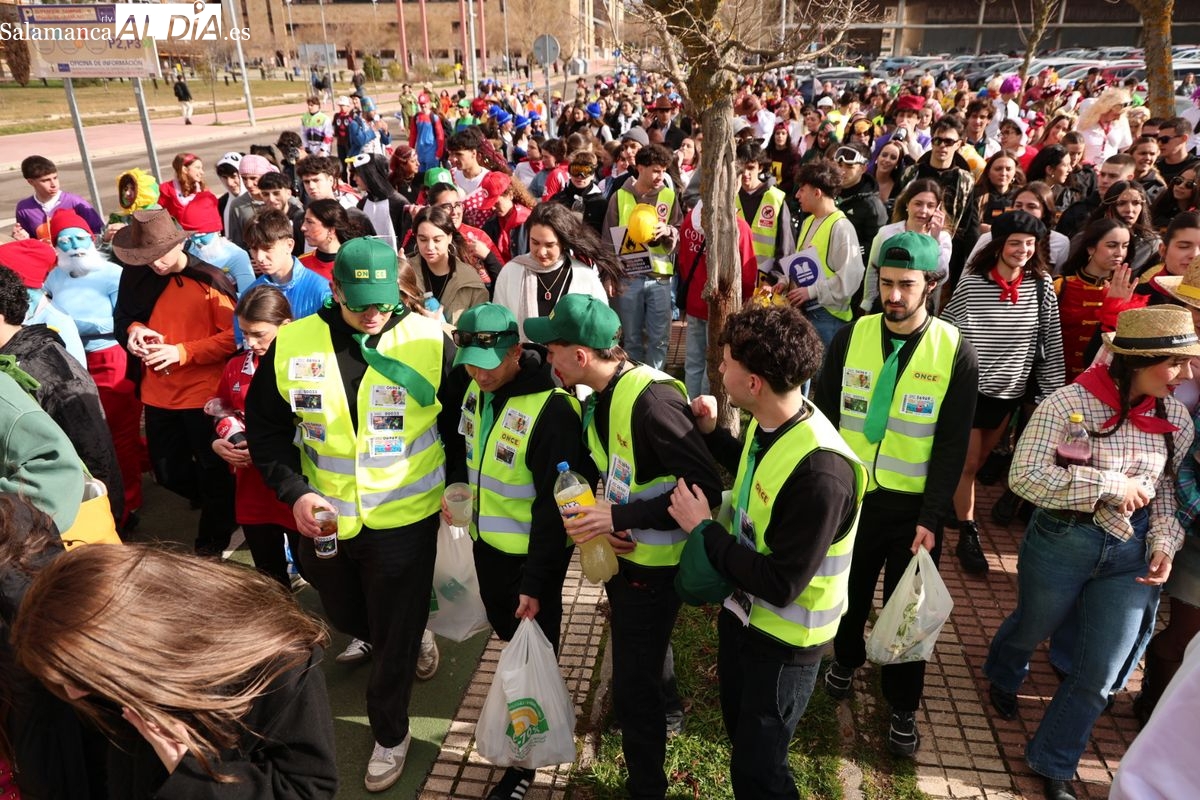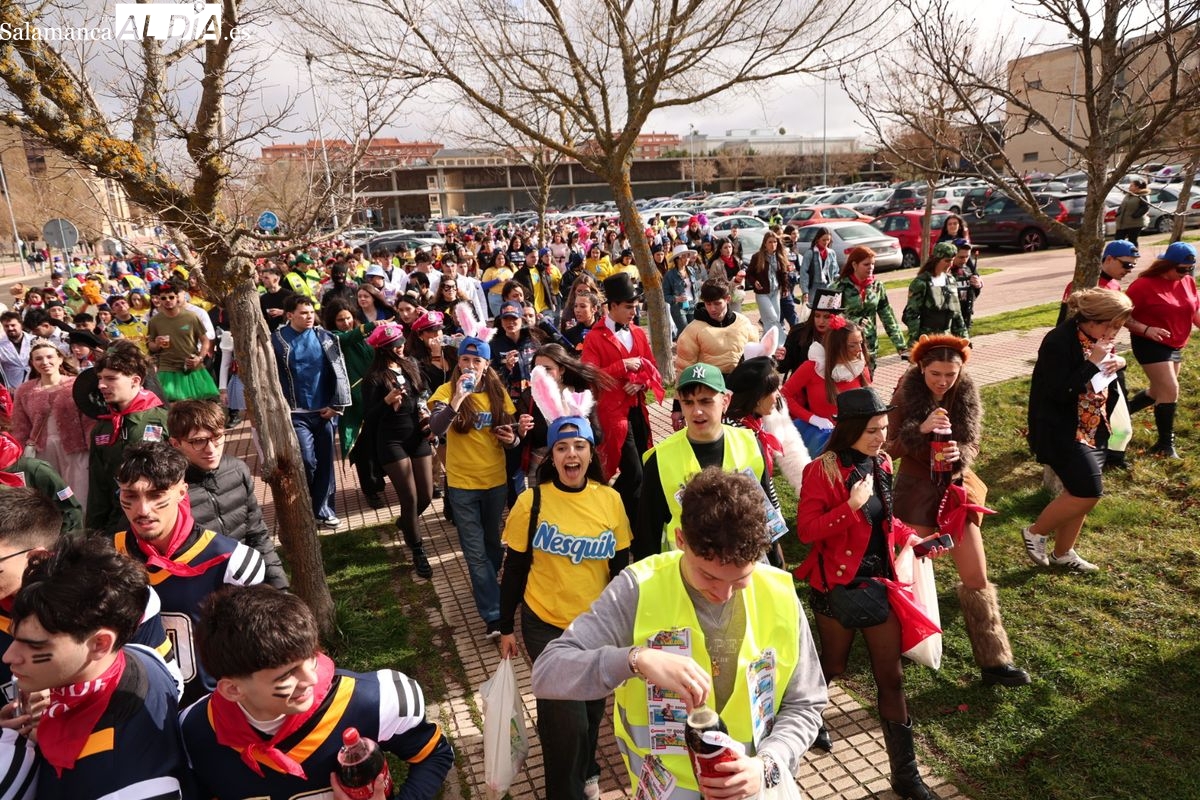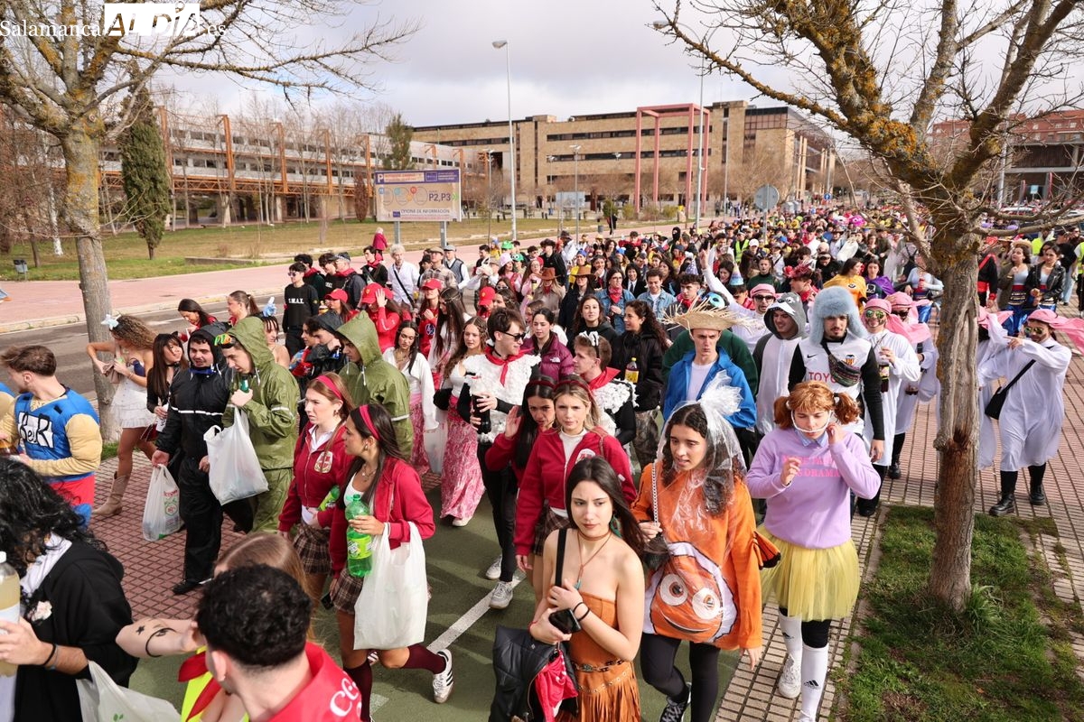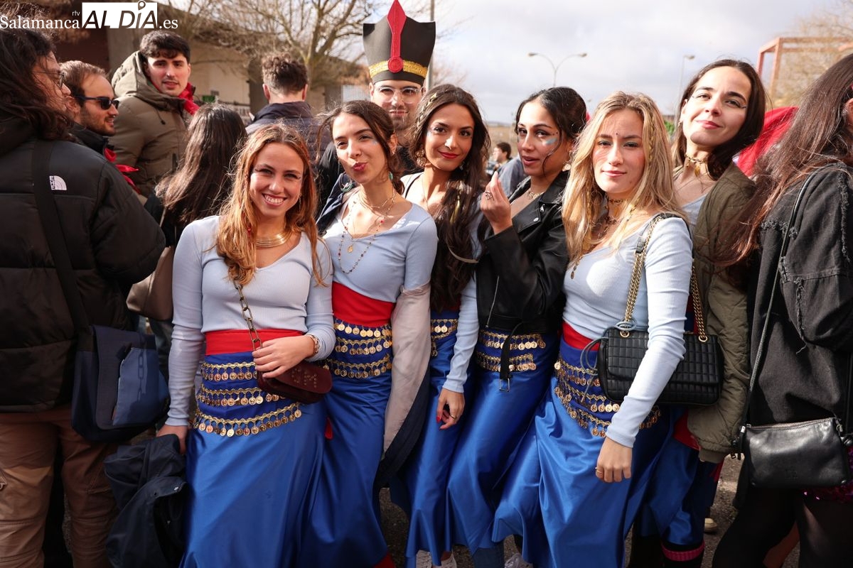 Acompañados por una charanga que ha amenizado el recorrido, los estudiantes han dejado aparcados por unas horas los códigos y manuales para celebrar a su patrón, San Raimundo de Peñafort. La imaginación ha sido la nota dominante en los disfraces, donde se han podido ver desde referencias a la actualidad política y social hasta propuestas grupales clásicas, consolidando este evento como uno de los más vistosos del calendario estudiantil salmantino.