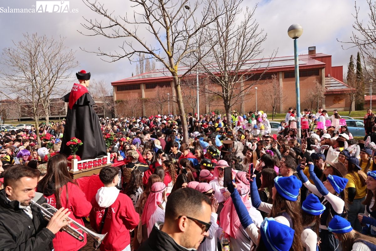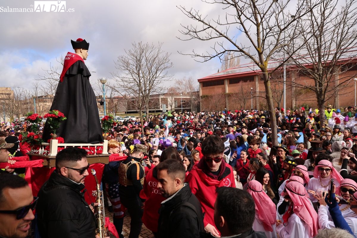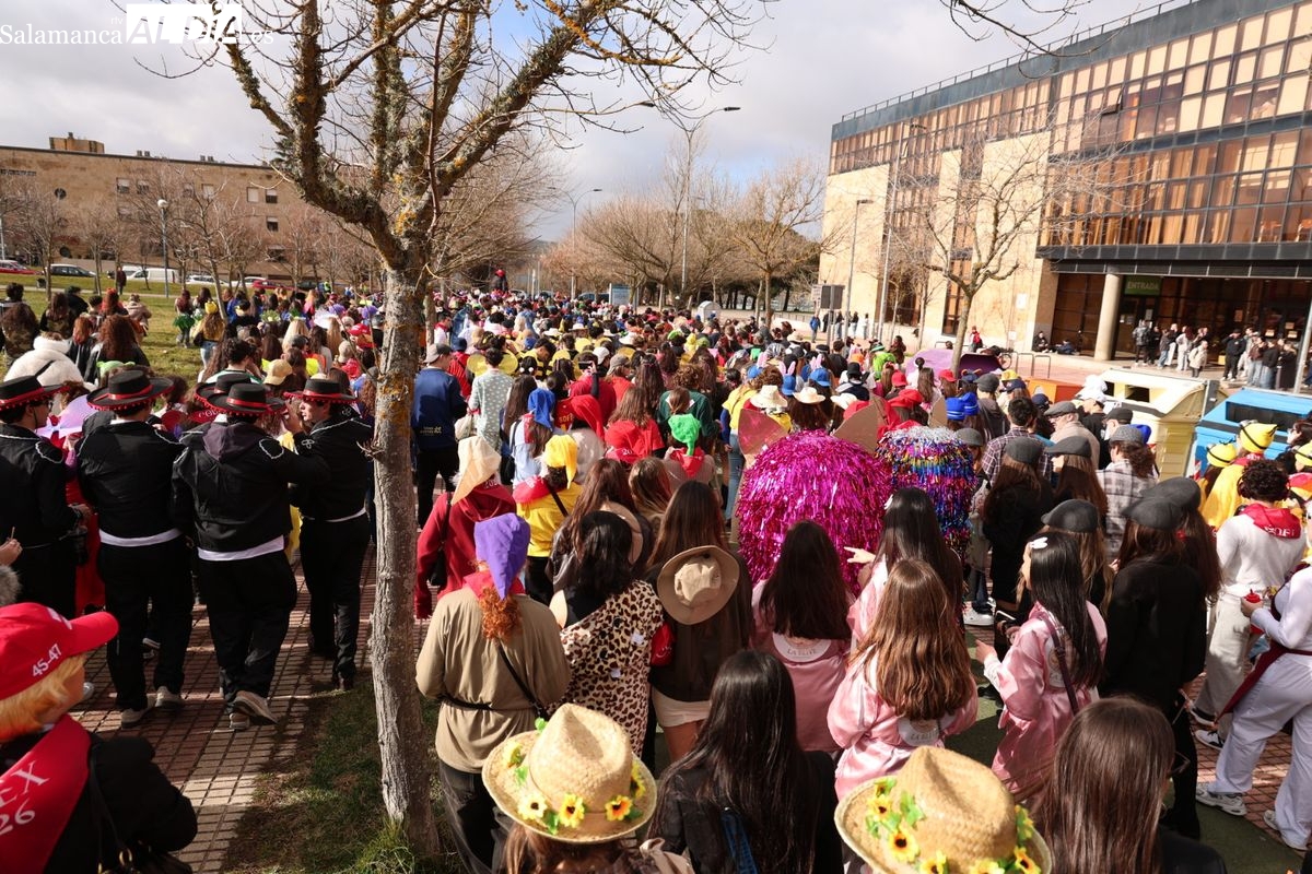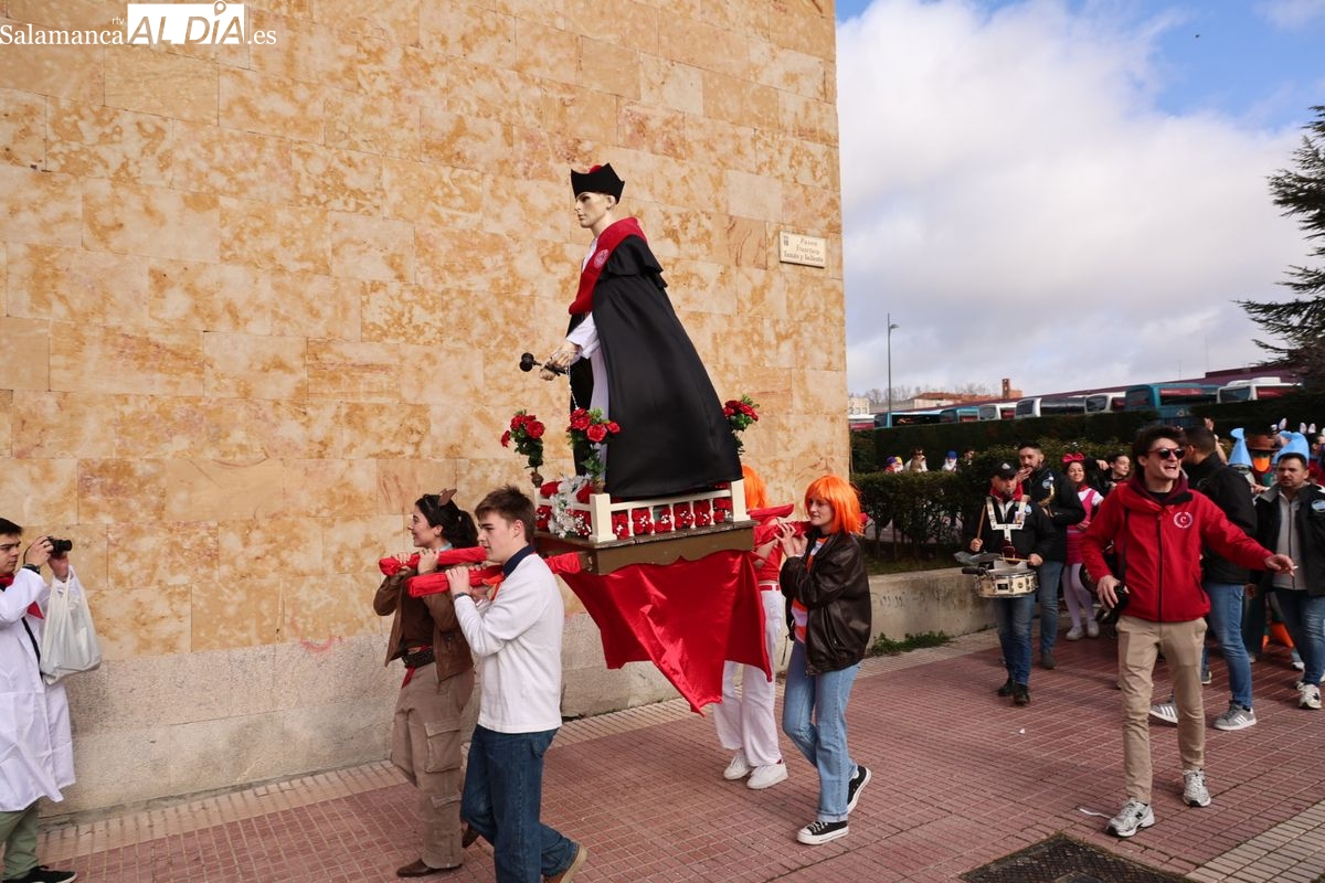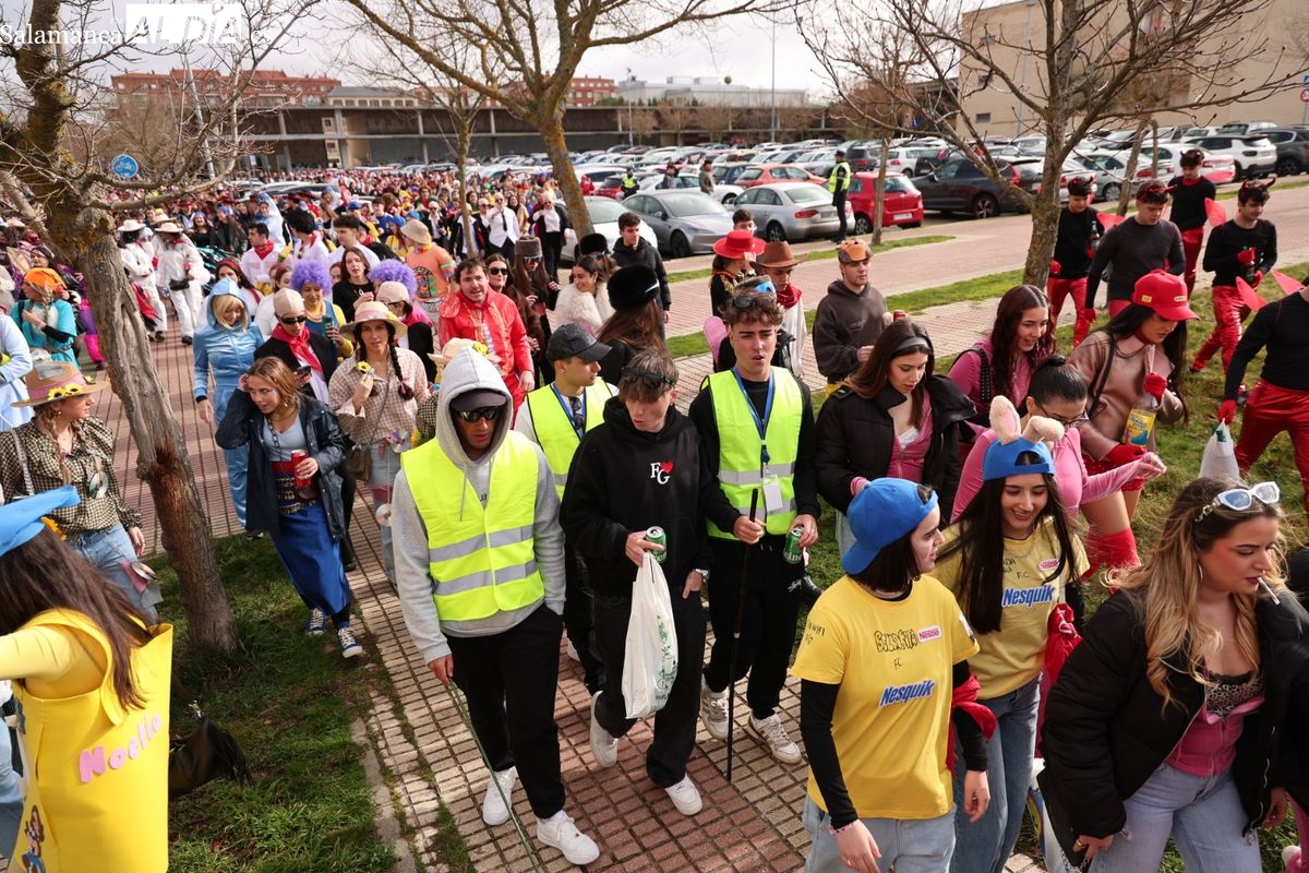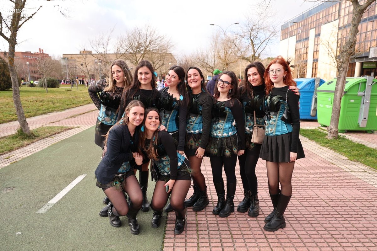 Acompañados por una charanga que ha amenizado el recorrido, los estudiantes han dejado aparcados por unas horas los códigos y manuales para celebrar a su patrón, San Raimundo de Peñafort. La imaginación ha sido la nota dominante en los disfraces, donde se han podido ver desde referencias a la actualidad política y social hasta propuestas grupales clásicas, consolidando este evento como uno de los más vistosos del calendario estudiantil salmantino.