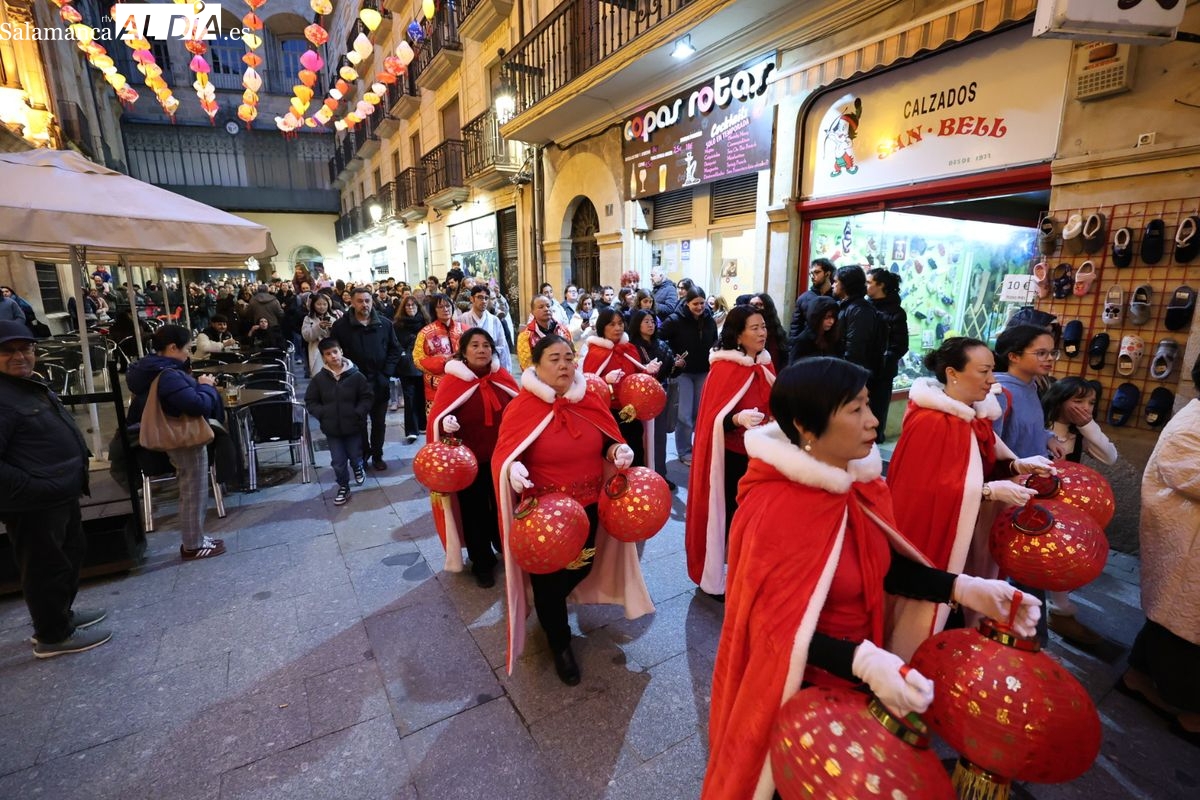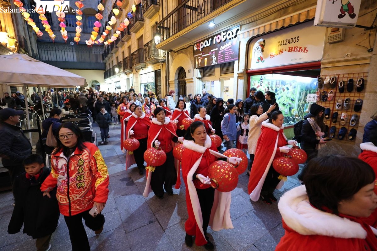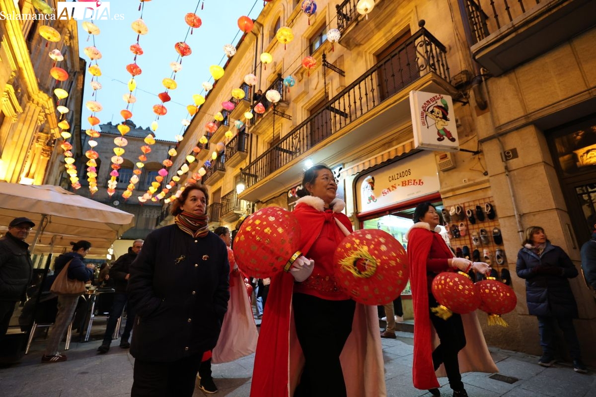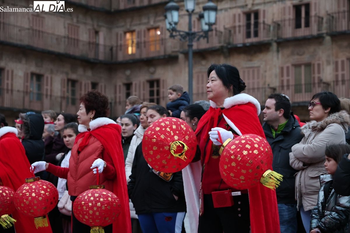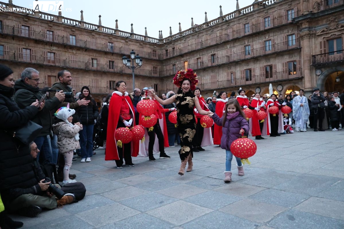 Salamanca continúa con las celebraciones del Año Nuevo Chino, que en la tarde de este jueves han tenido como escenario la Plaza Mayor y la calle Zamora. La programación festiva, organizada por el Ayuntamiento en colaboración con la Asociación Cantonesa de España, ha llenado de color el centro de la ciudad con un desfile tradicional y el encendido de una decoración especial.