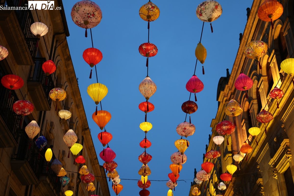 Con esta iniciativa, Salamanca tiende un puente hacia la cultura asiática y la integra en su paisaje urbano. De este modo, cualquier persona que pasee por esta vía peatonal entre este jueves y el próximo 1 de marzo lo hará bajo una vistosa 'alfombra' de farolillos de colores suspendida sobre la calle.