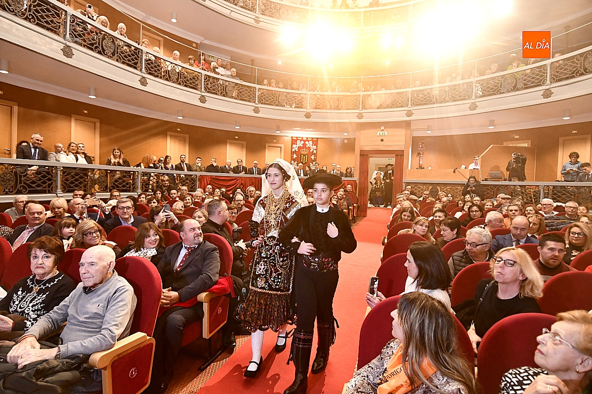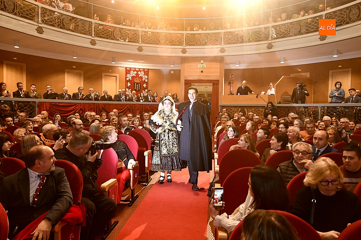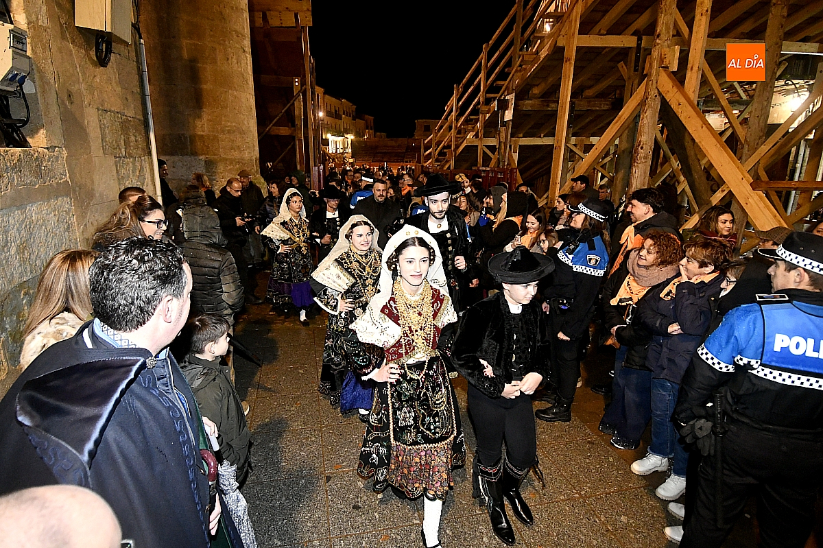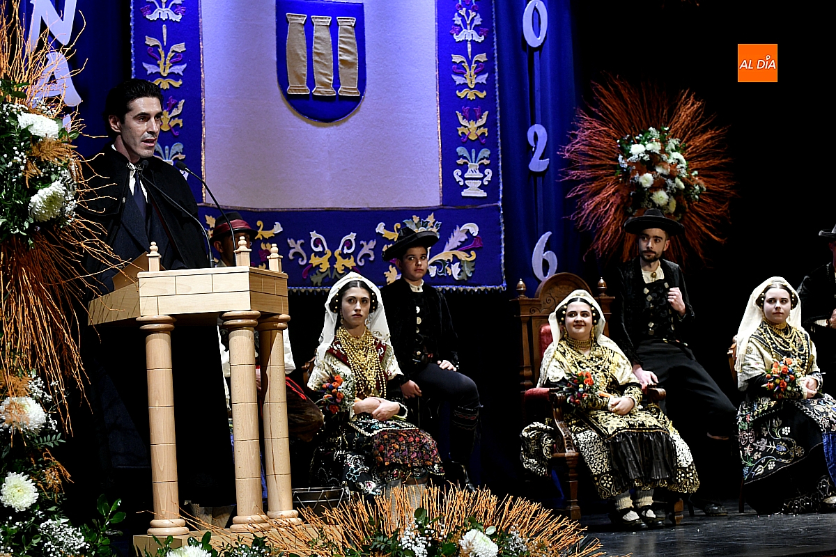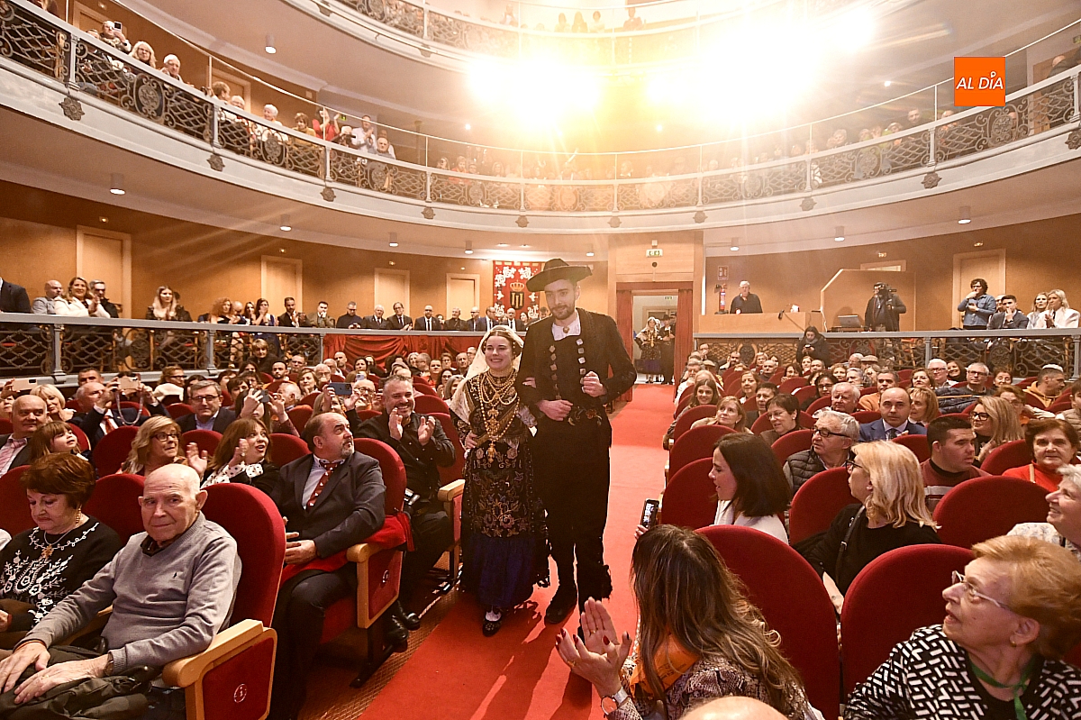 El acto dio comienzo con una cuidada puesta en escena: las damas accedieron al patio de butacas acompañadas por sus respectivos damos, seguidas de la Reina del Carnaval y del Pregonero Mayor, Alejandro Talavante, mientras resonaban la gaita y el tamboril interpretados por Diego González. La concejala Paola Muñoz ejerció como maestra de ceremonias en una apertura de marcado tono tradicional, atreviédose las damas de honor hacer una demostración de Floklore Charro.