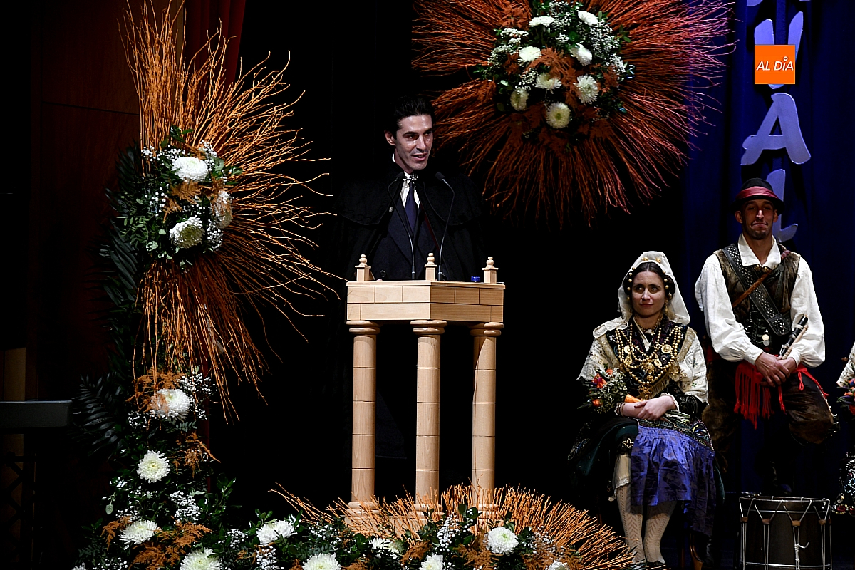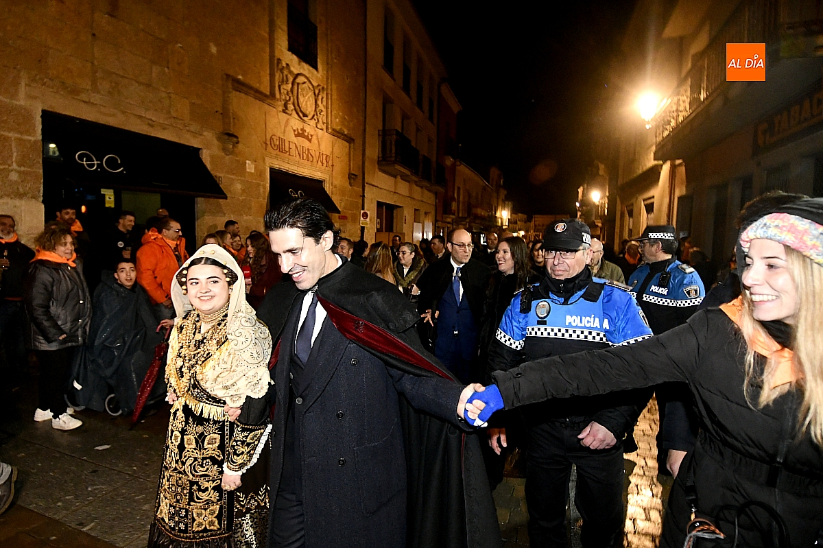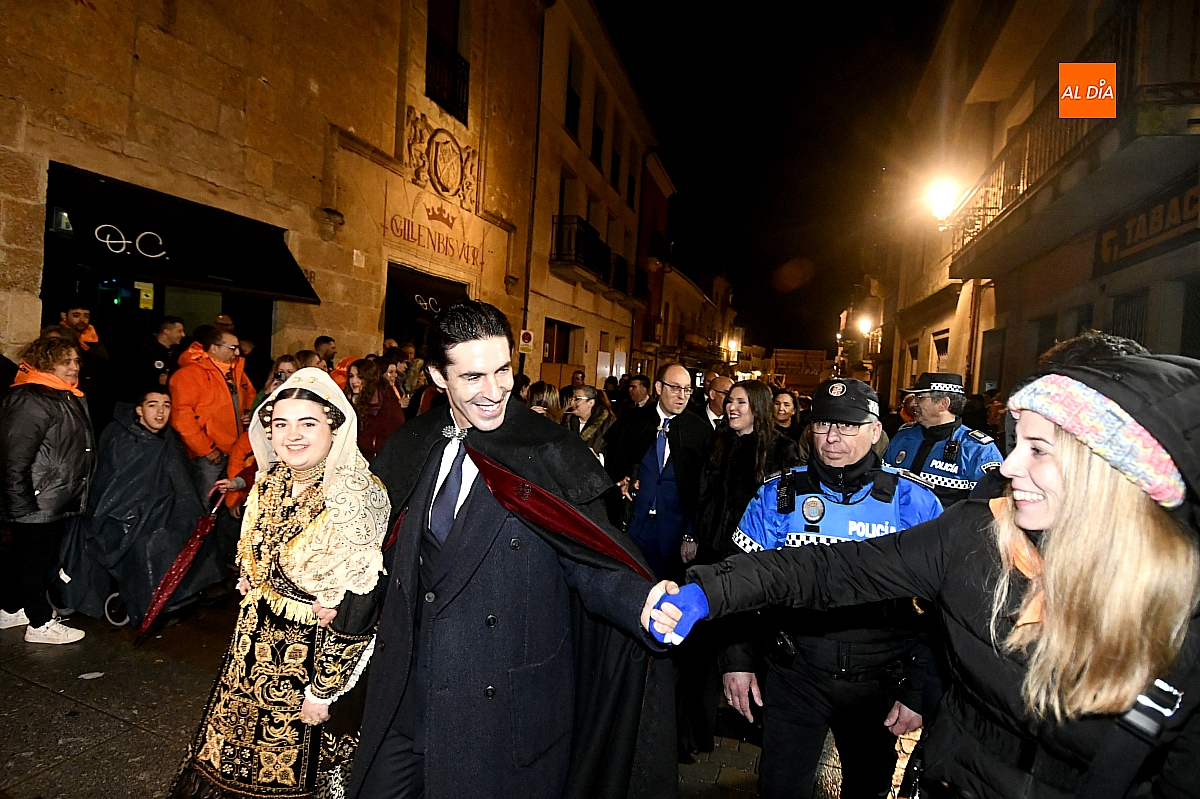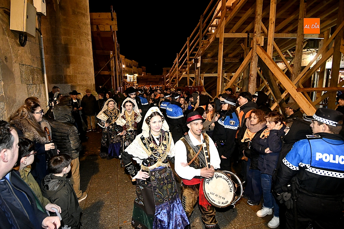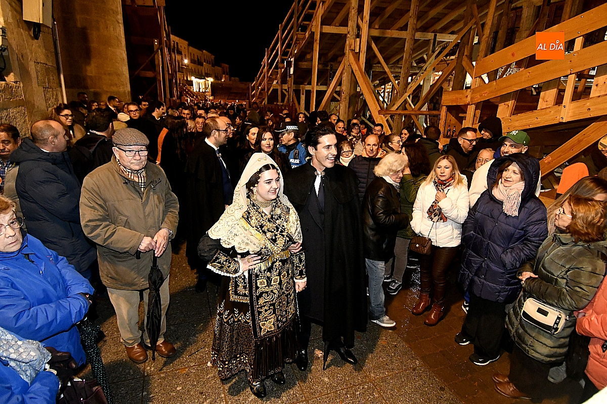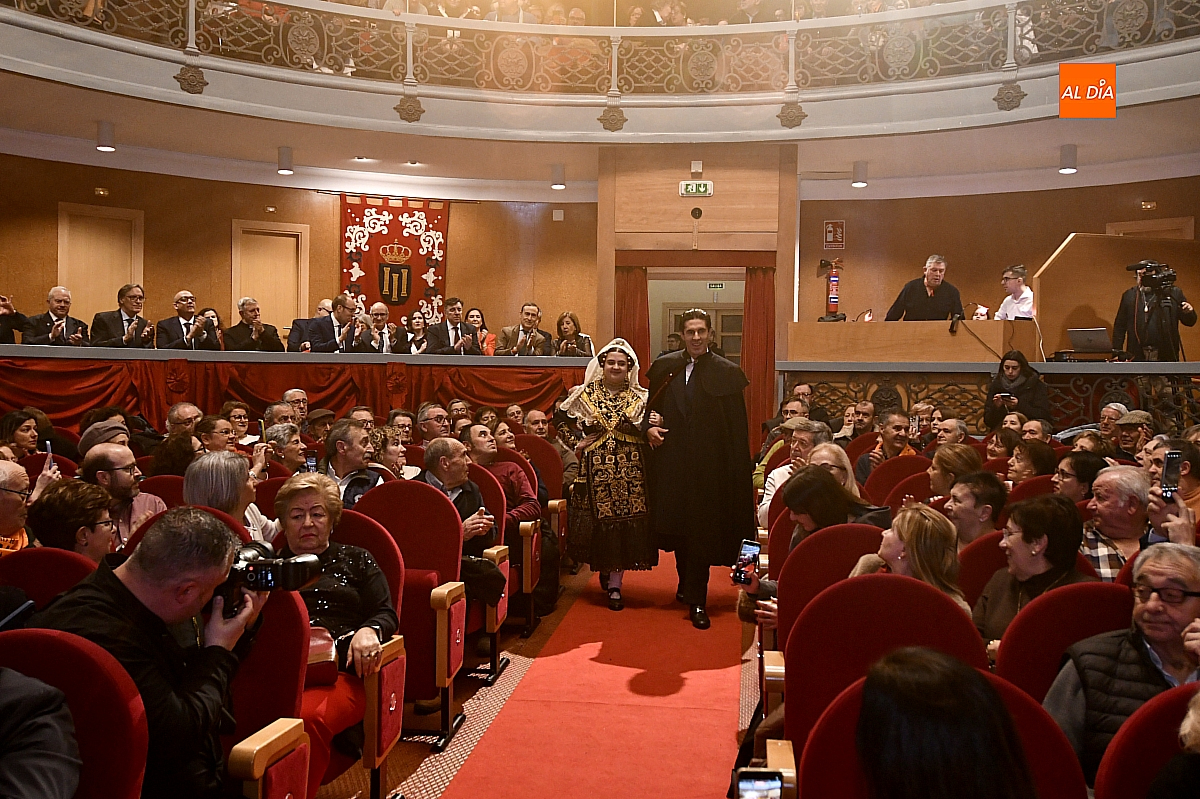 El acto dio comienzo con una cuidada puesta en escena: las damas accedieron al patio de butacas acompañadas por sus respectivos damos, seguidas de la Reina del Carnaval y del Pregonero Mayor, Alejandro Talavante, mientras resonaban la gaita y el tamboril interpretados por Diego González. La concejala Paola Muñoz ejerció como maestra de ceremonias en una apertura de marcado tono tradicional, atreviédose las damas de honor hacer una demostración de Floklore Charro.