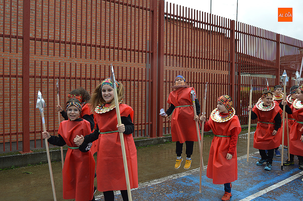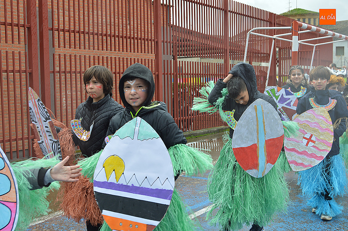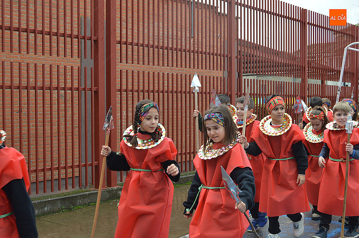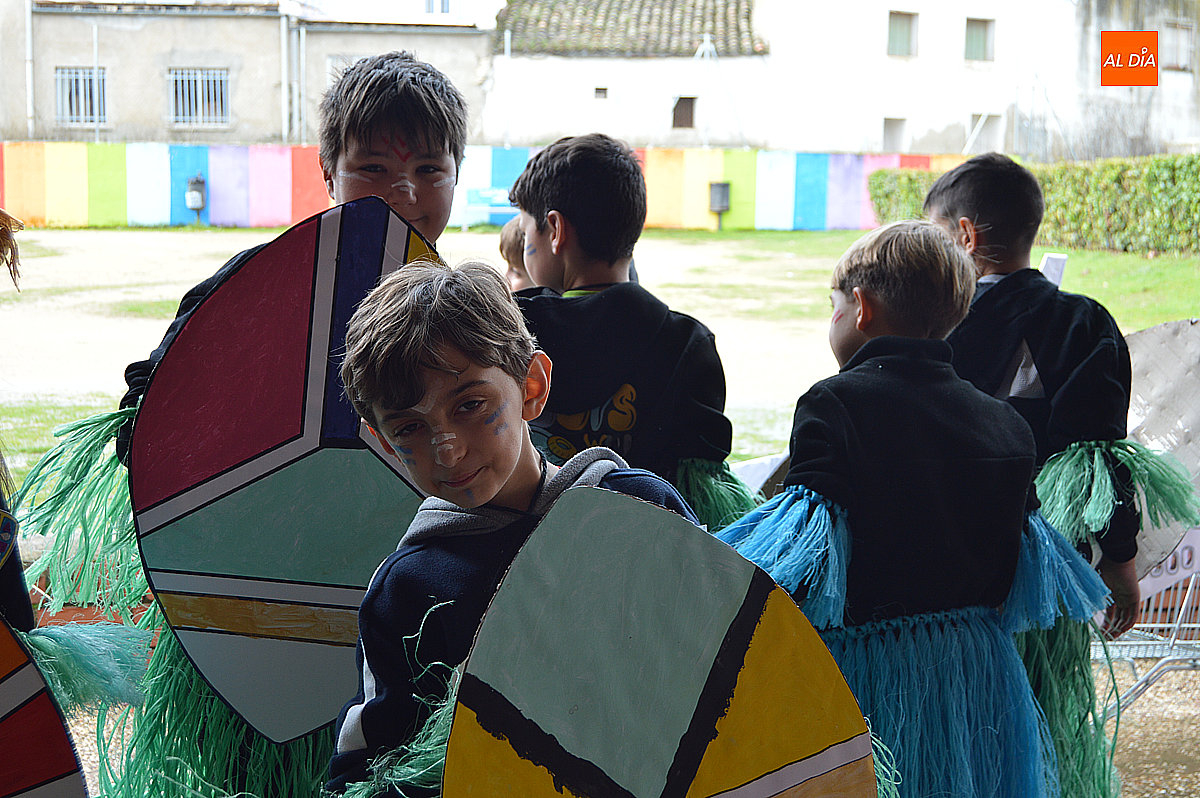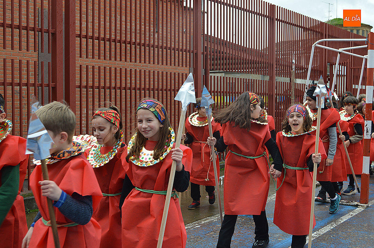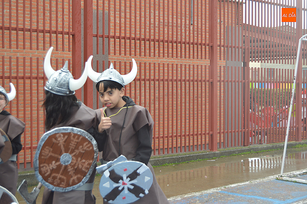 Aunque inicialmente estaba previsto que el desfile recorriera las calles de la localidad hasta la Plaza de Toros, las inclemencias del tiempo obligaron a modificar el itinerario. Sin embargo, la lluvia no frenó las ganas de disfrutar de la jornada y de mostrar sus disfraces. El patio del colegio se transformó en pasarela improvisada por la que fueron desfilando los distintos cursos para mostrar sus creativos y originales disfraces, muchos de ellos elaborados con materiales reciclados.