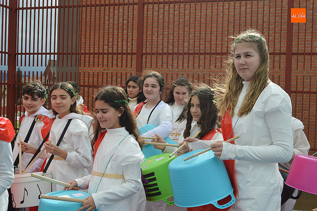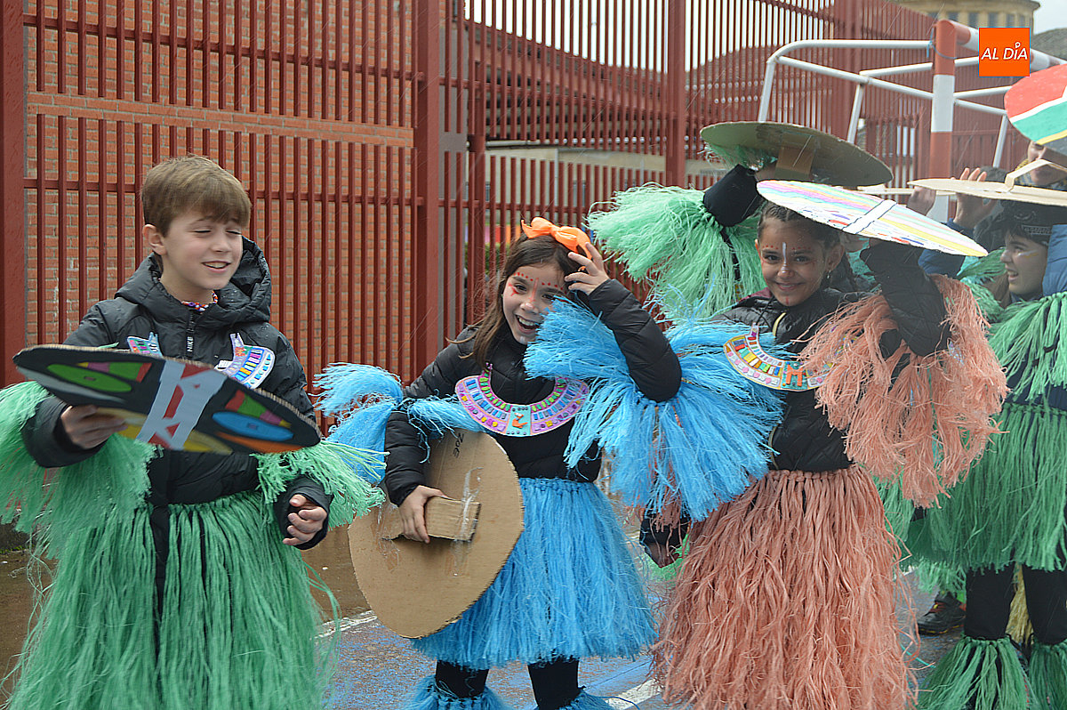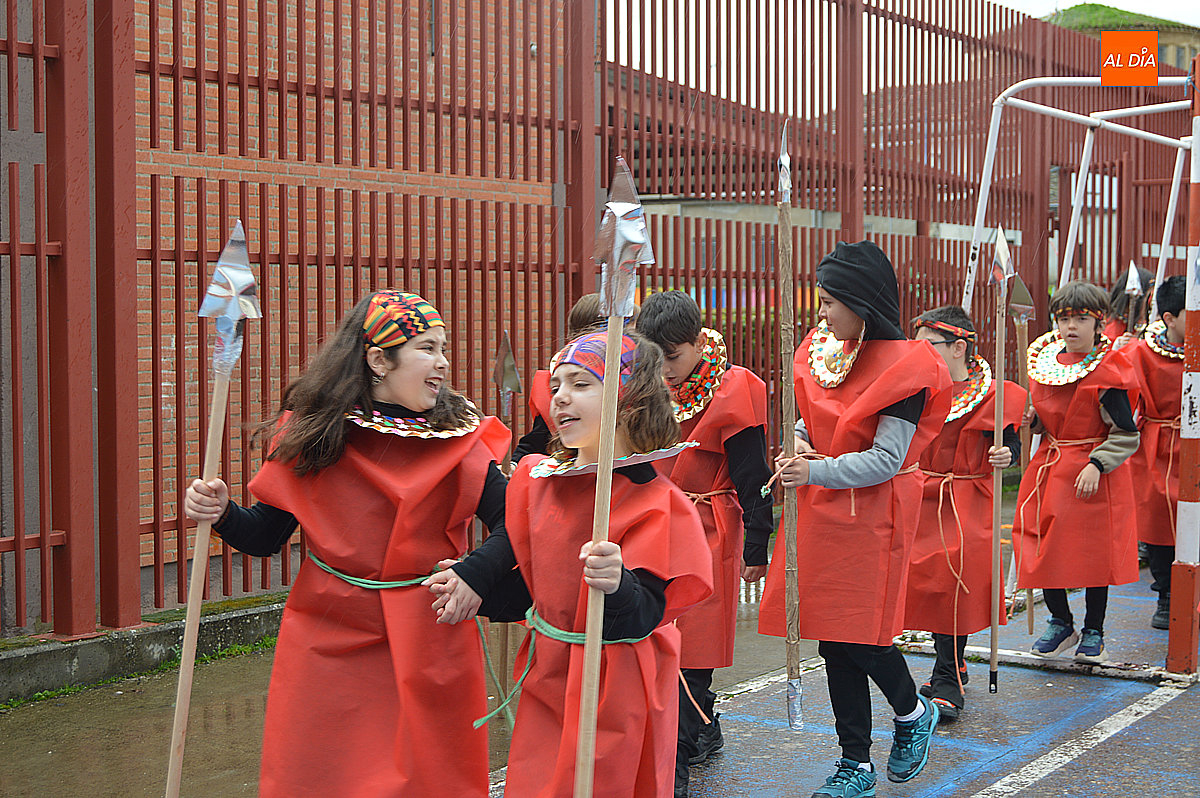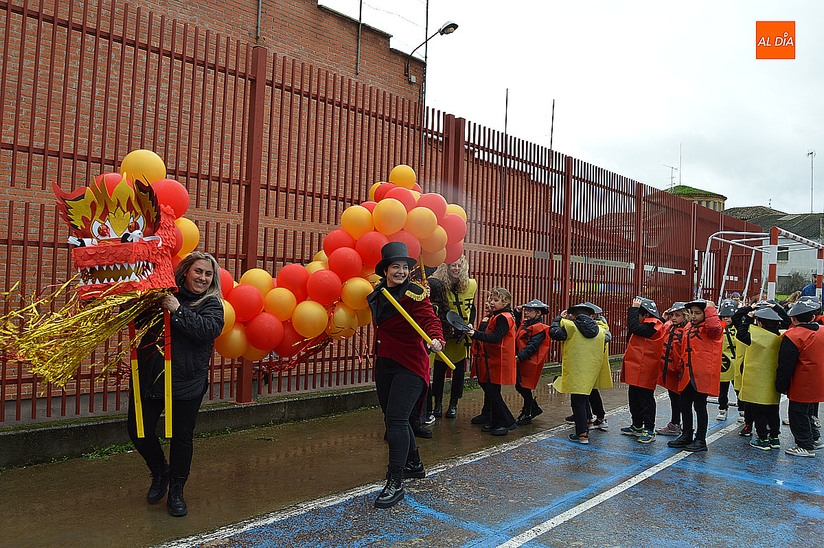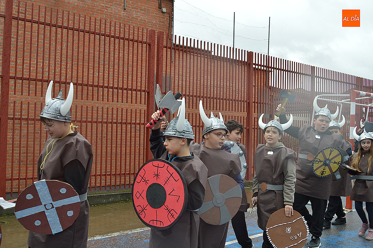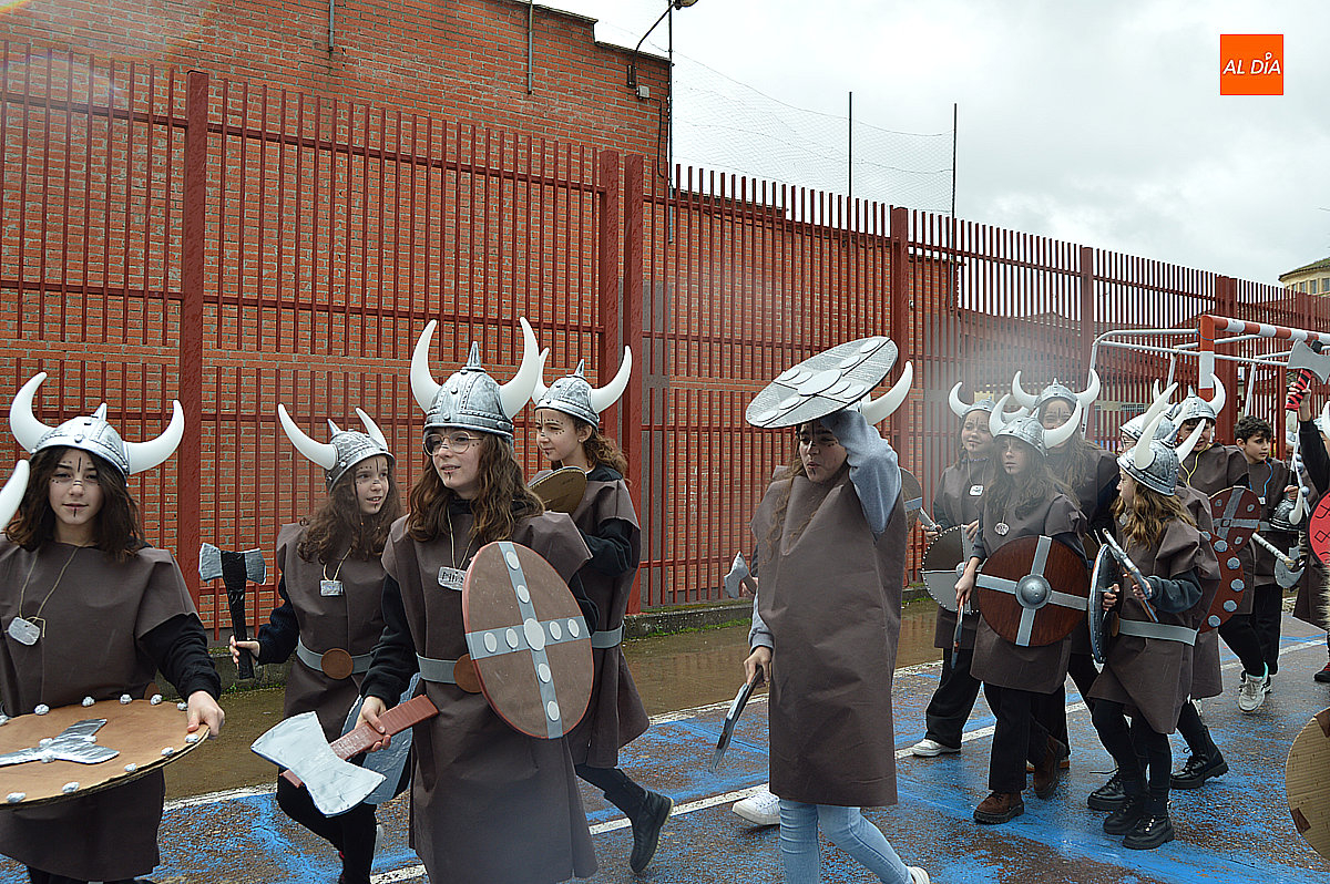 Aunque inicialmente estaba previsto que el desfile recorriera las calles de la localidad hasta la Plaza de Toros, las inclemencias del tiempo obligaron a modificar el itinerario. Sin embargo, la lluvia no frenó las ganas de disfrutar de la jornada y de mostrar sus disfraces. El patio del colegio se transformó en pasarela improvisada por la que fueron desfilando los distintos cursos para mostrar sus creativos y originales disfraces, muchos de ellos elaborados con materiales reciclados.