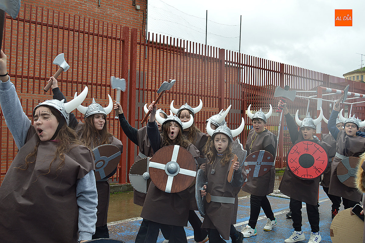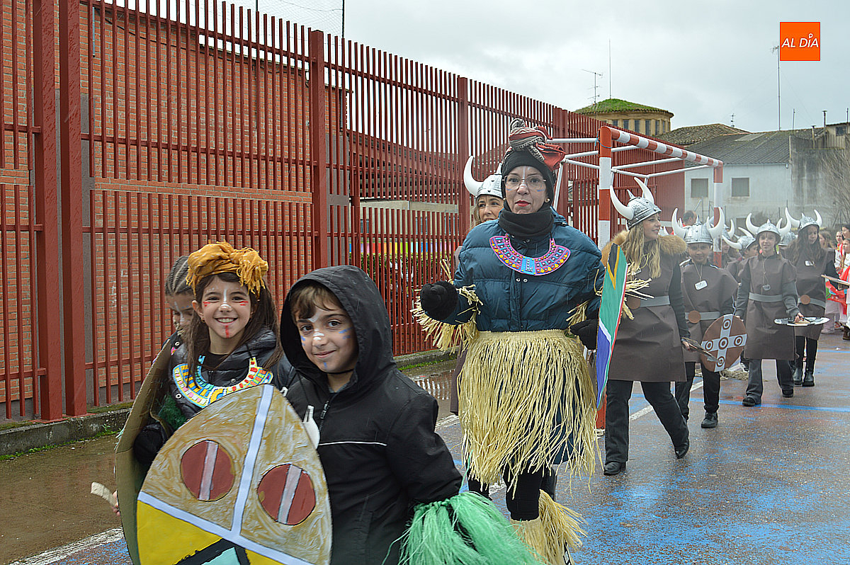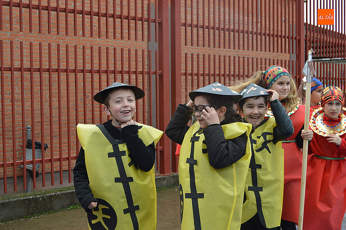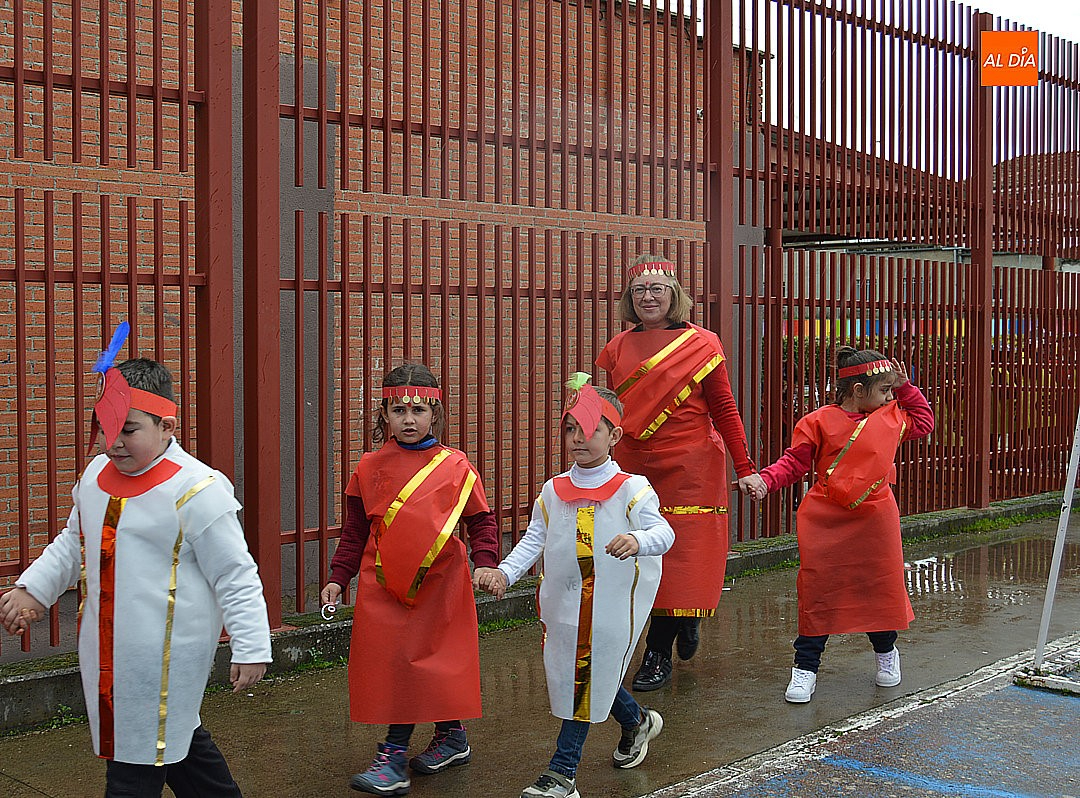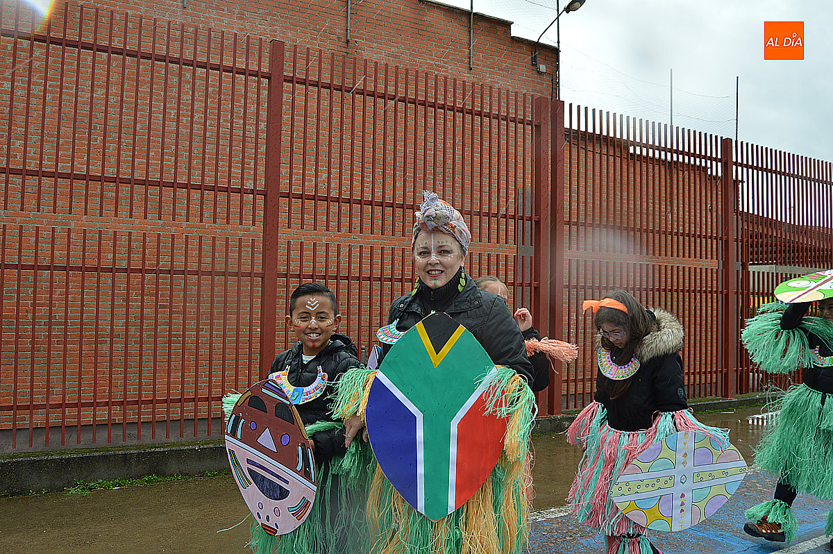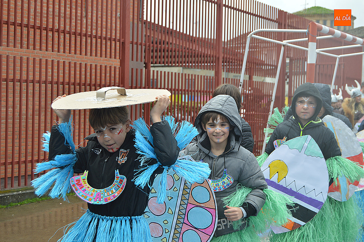 Aunque inicialmente estaba previsto que el desfile recorriera las calles de la localidad hasta la Plaza de Toros, las inclemencias del tiempo obligaron a modificar el itinerario. Sin embargo, la lluvia no frenó las ganas de disfrutar de la jornada y de mostrar sus disfraces. El patio del colegio se transformó en pasarela improvisada por la que fueron desfilando los distintos cursos para mostrar sus creativos y originales disfraces, muchos de ellos elaborados con materiales reciclados.