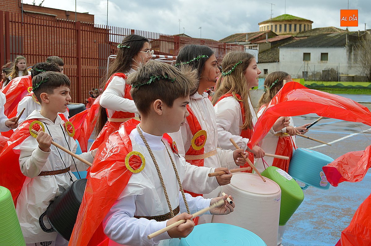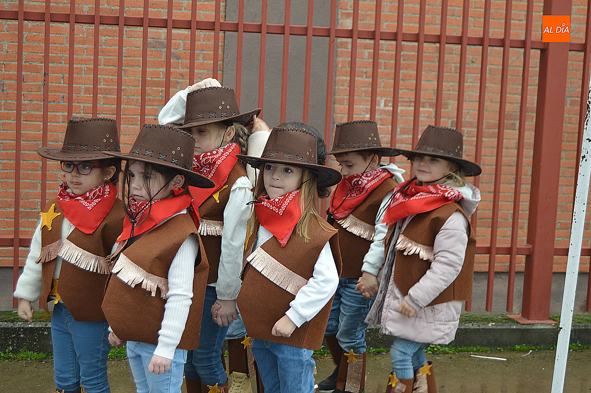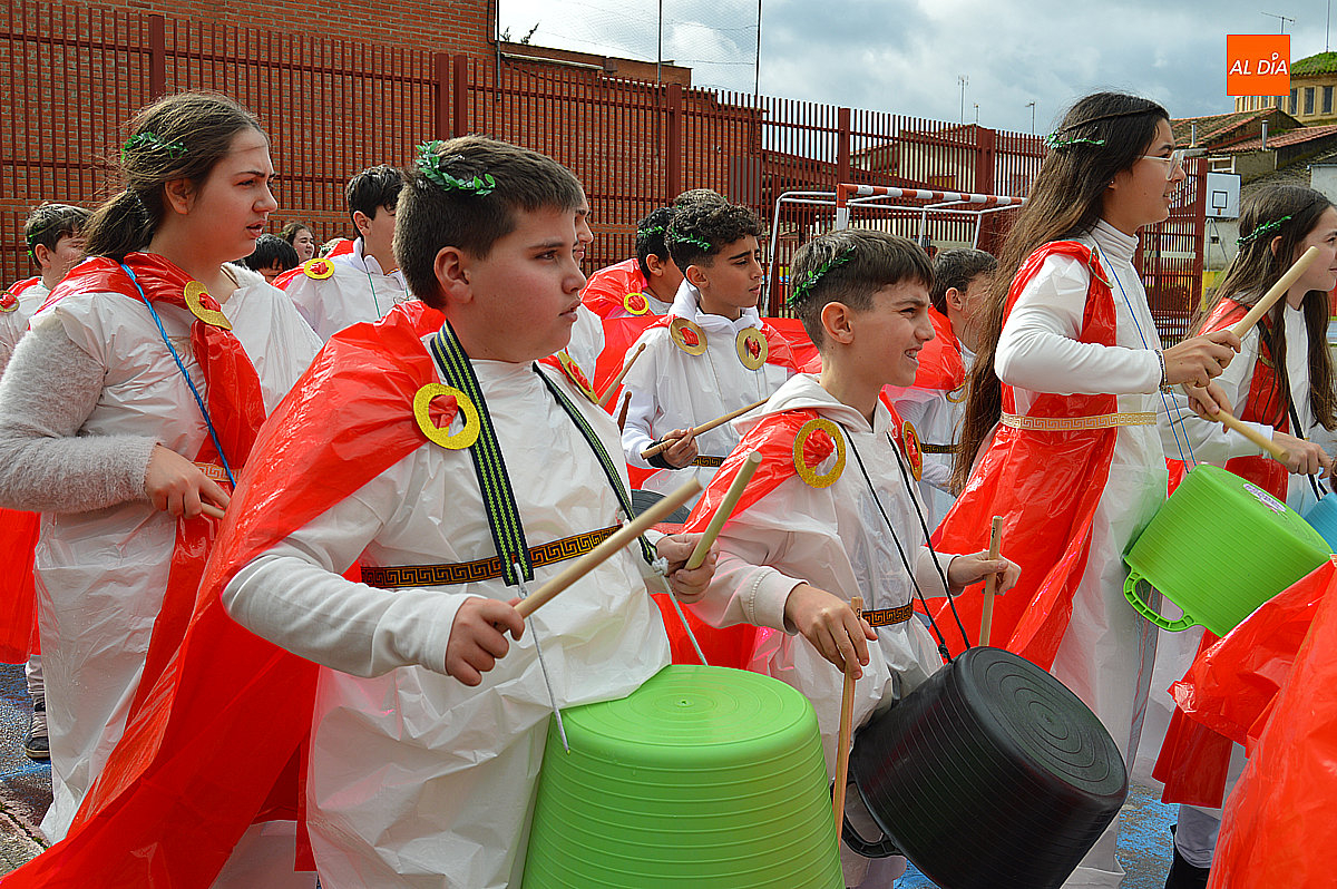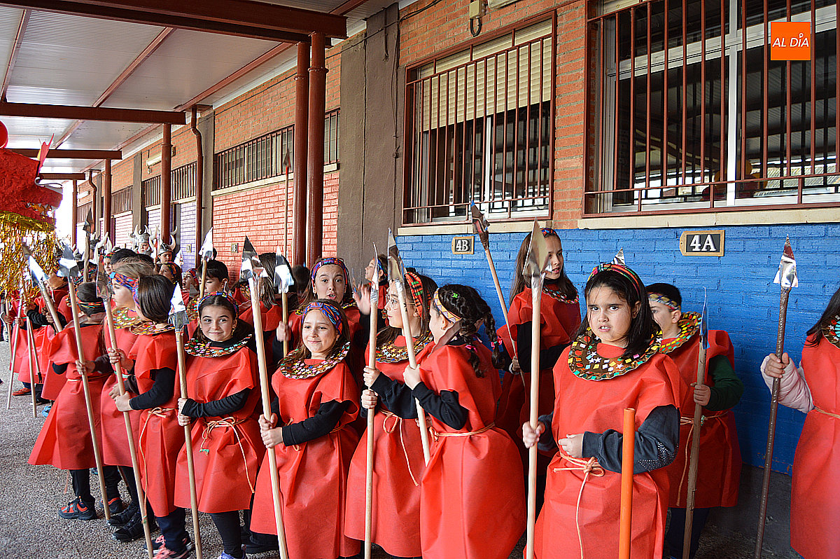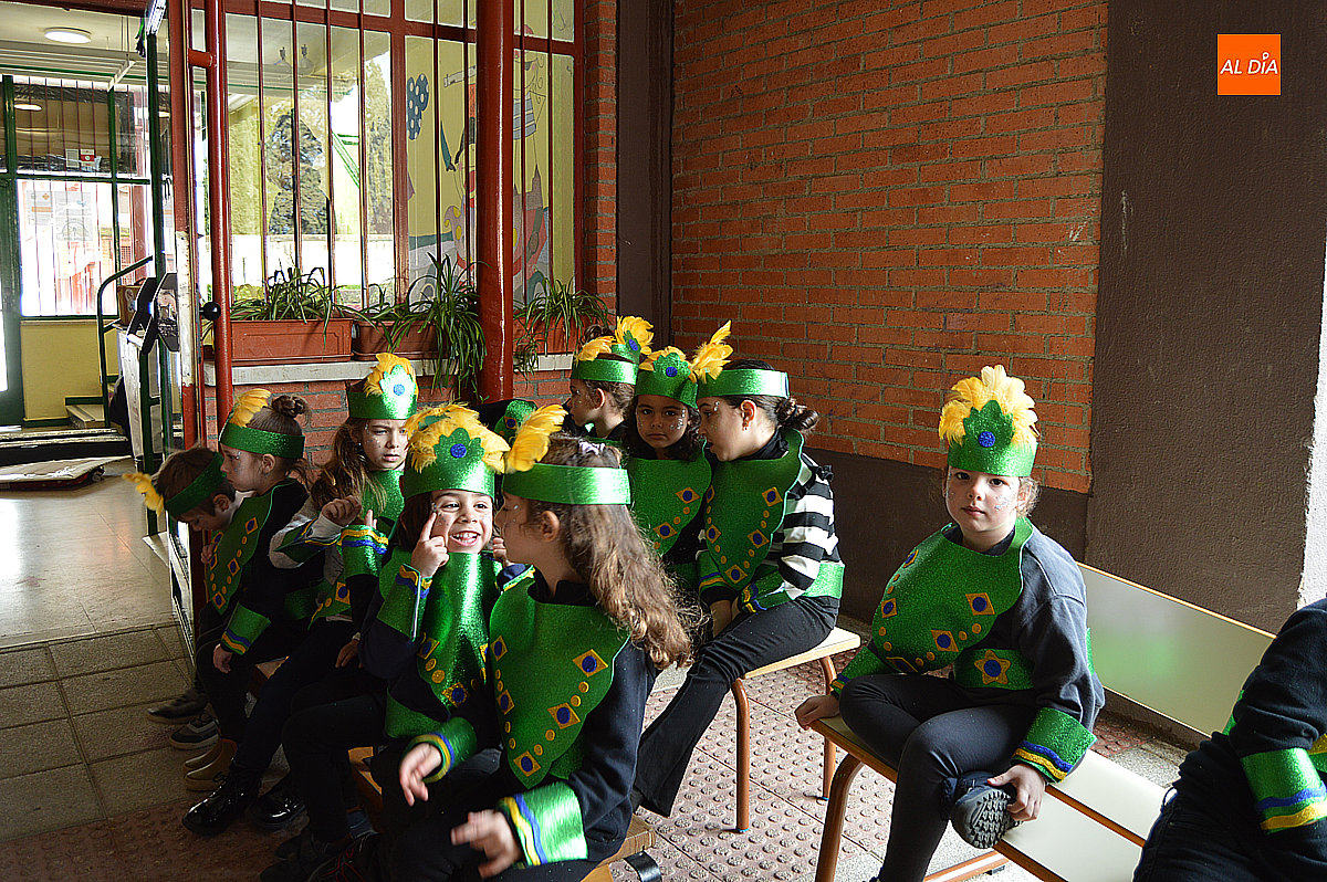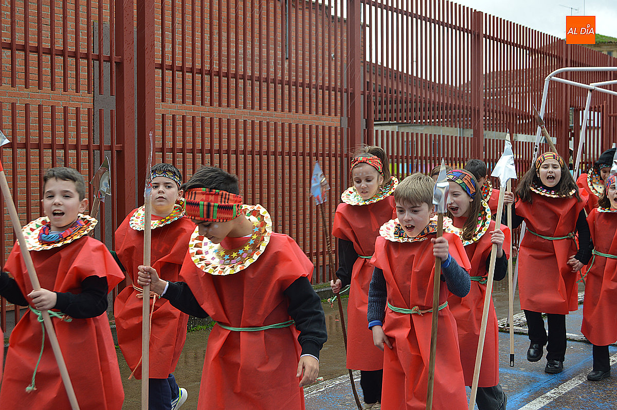 Aunque inicialmente estaba previsto que el desfile recorriera las calles de la localidad hasta la Plaza de Toros, las inclemencias del tiempo obligaron a modificar el itinerario. Sin embargo, la lluvia no frenó las ganas de disfrutar de la jornada y de mostrar sus disfraces. El patio del colegio se transformó en pasarela improvisada por la que fueron desfilando los distintos cursos para mostrar sus creativos y originales disfraces, muchos de ellos elaborados con materiales reciclados.