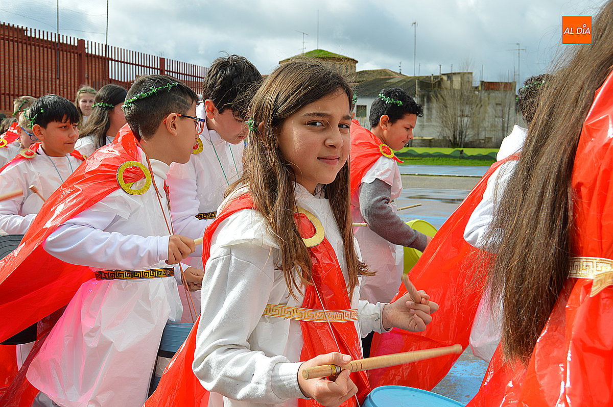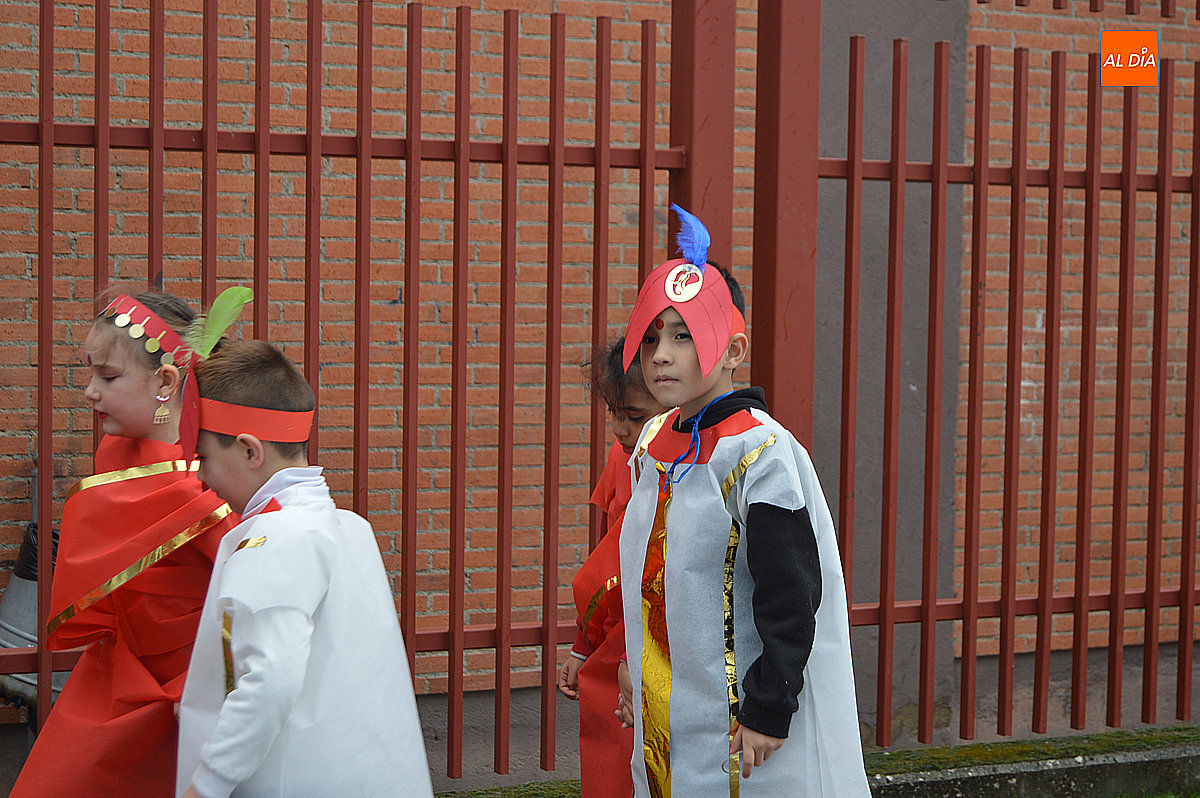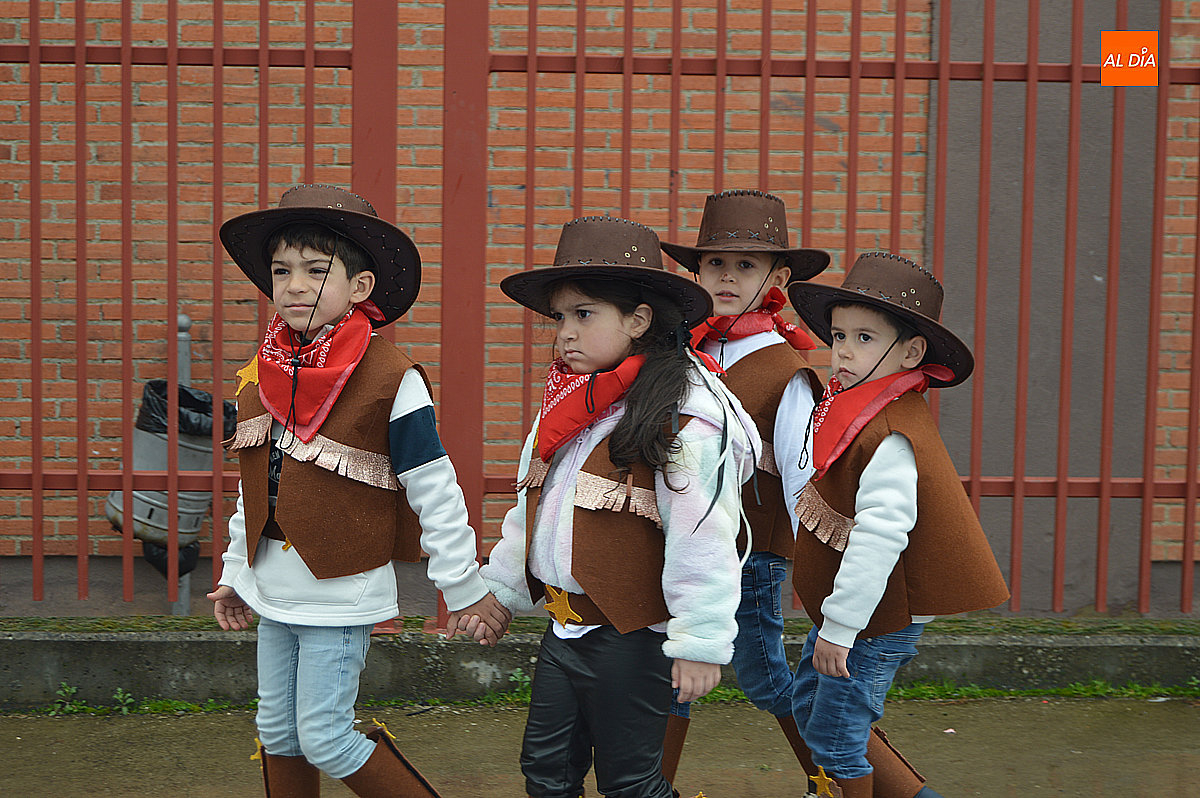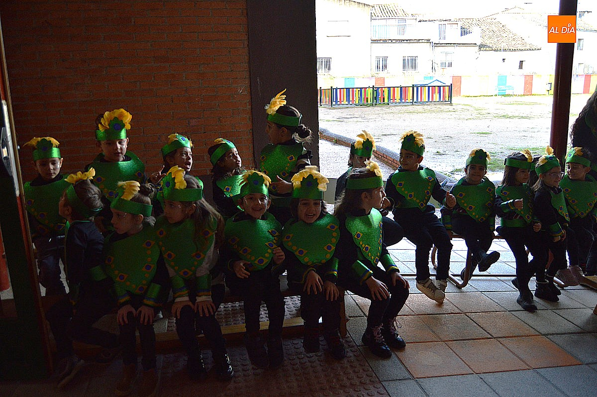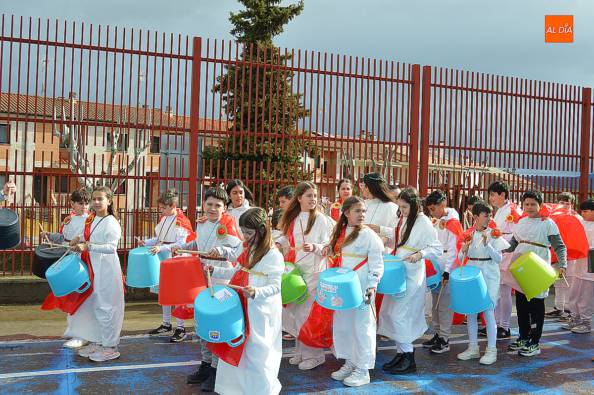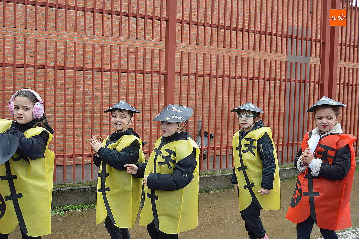 Aunque inicialmente estaba previsto que el desfile recorriera las calles de la localidad hasta la Plaza de Toros, las inclemencias del tiempo obligaron a modificar el itinerario. Sin embargo, la lluvia no frenó las ganas de disfrutar de la jornada y de mostrar sus disfraces. El patio del colegio se transformó en pasarela improvisada por la que fueron desfilando los distintos cursos para mostrar sus creativos y originales disfraces, muchos de ellos elaborados con materiales reciclados.