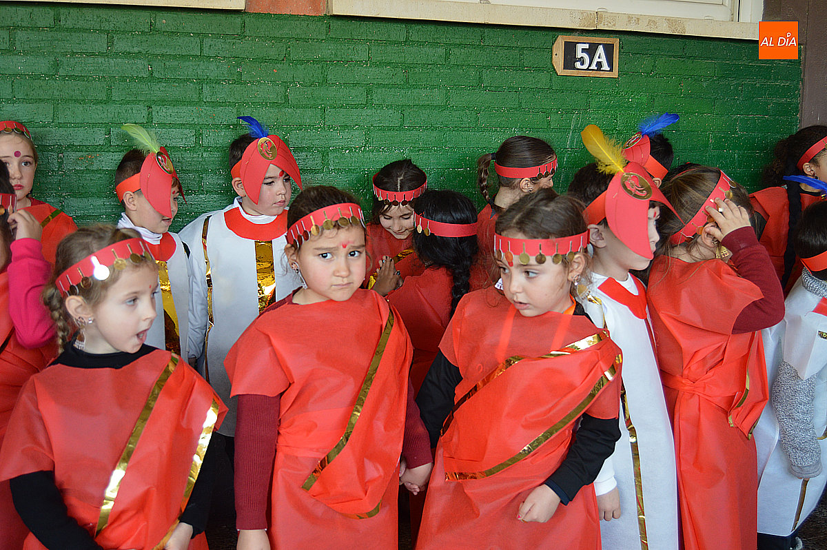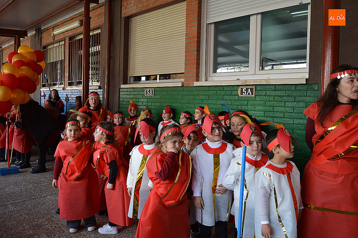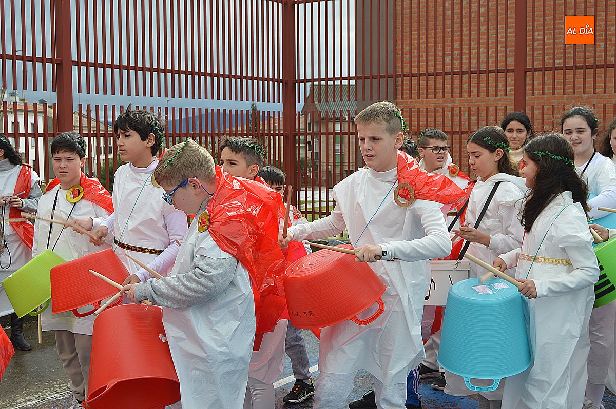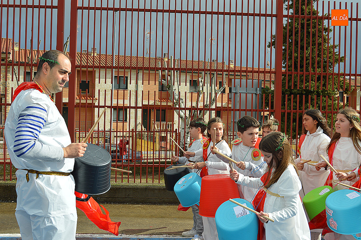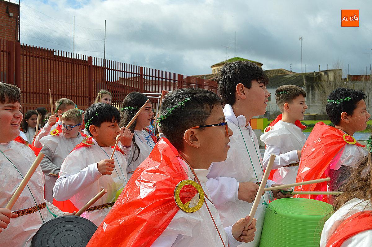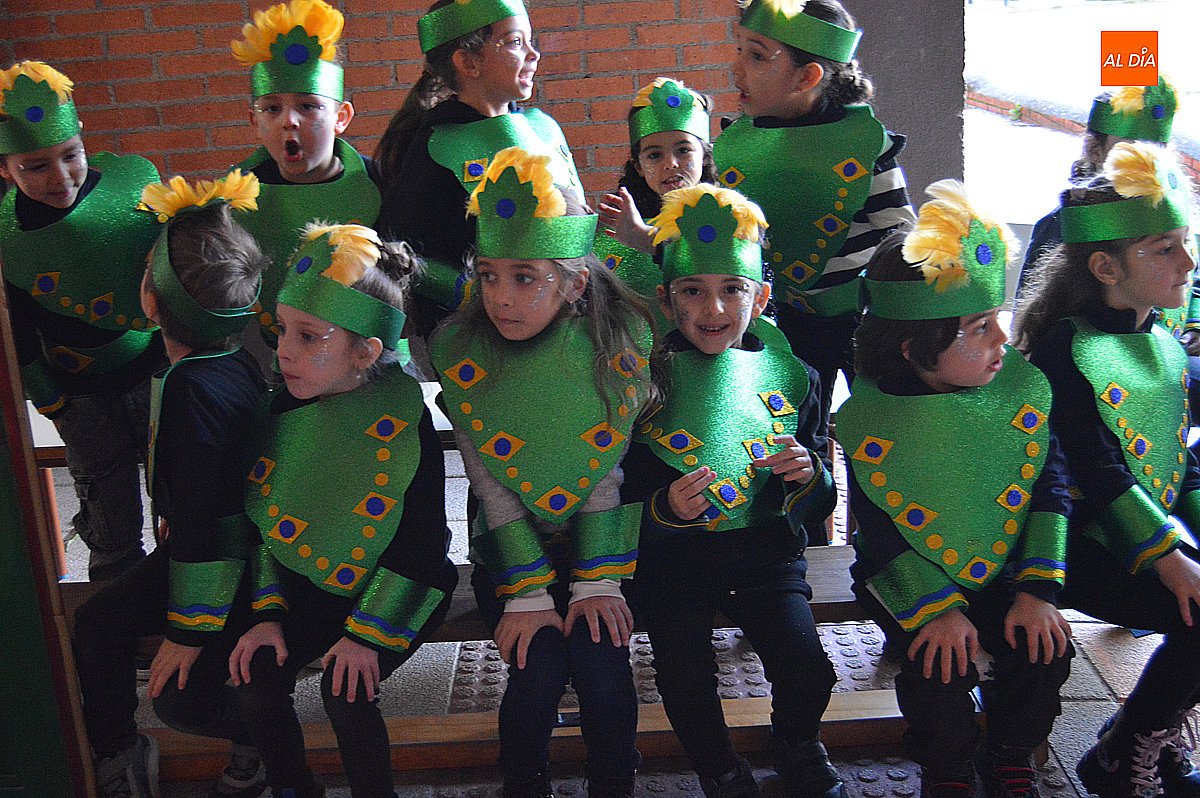 Aunque inicialmente estaba previsto que el desfile recorriera las calles de la localidad hasta la Plaza de Toros, las inclemencias del tiempo obligaron a modificar el itinerario. Sin embargo, la lluvia no frenó las ganas de disfrutar de la jornada y de mostrar sus disfraces. El patio del colegio se transformó en pasarela improvisada por la que fueron desfilando los distintos cursos para mostrar sus creativos y originales disfraces, muchos de ellos elaborados con materiales reciclados.