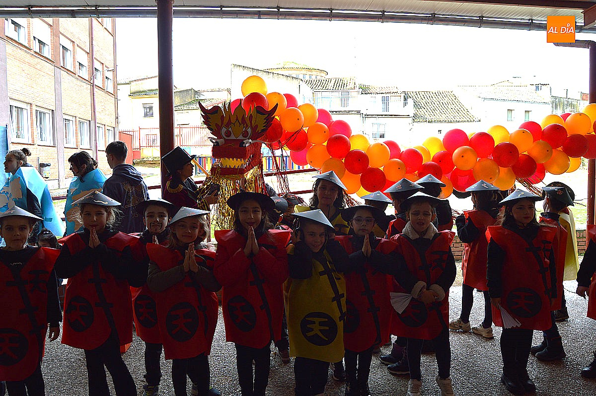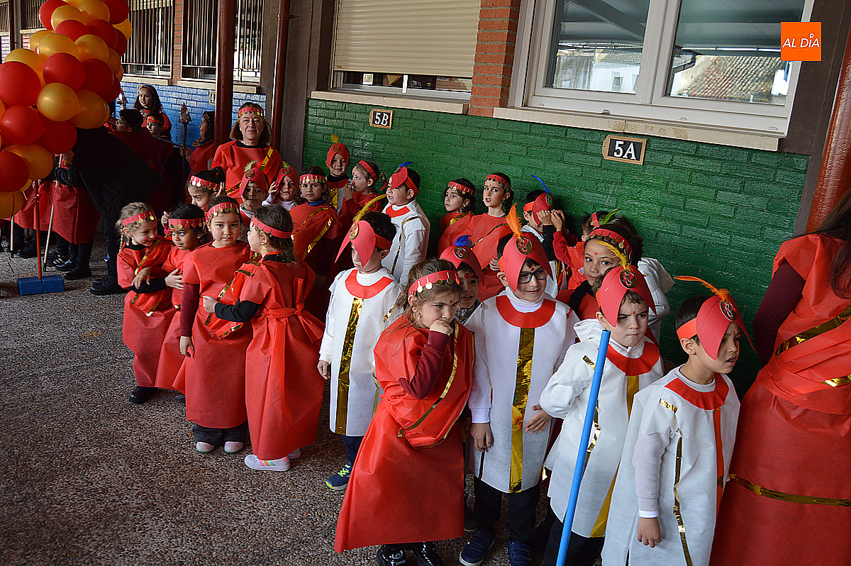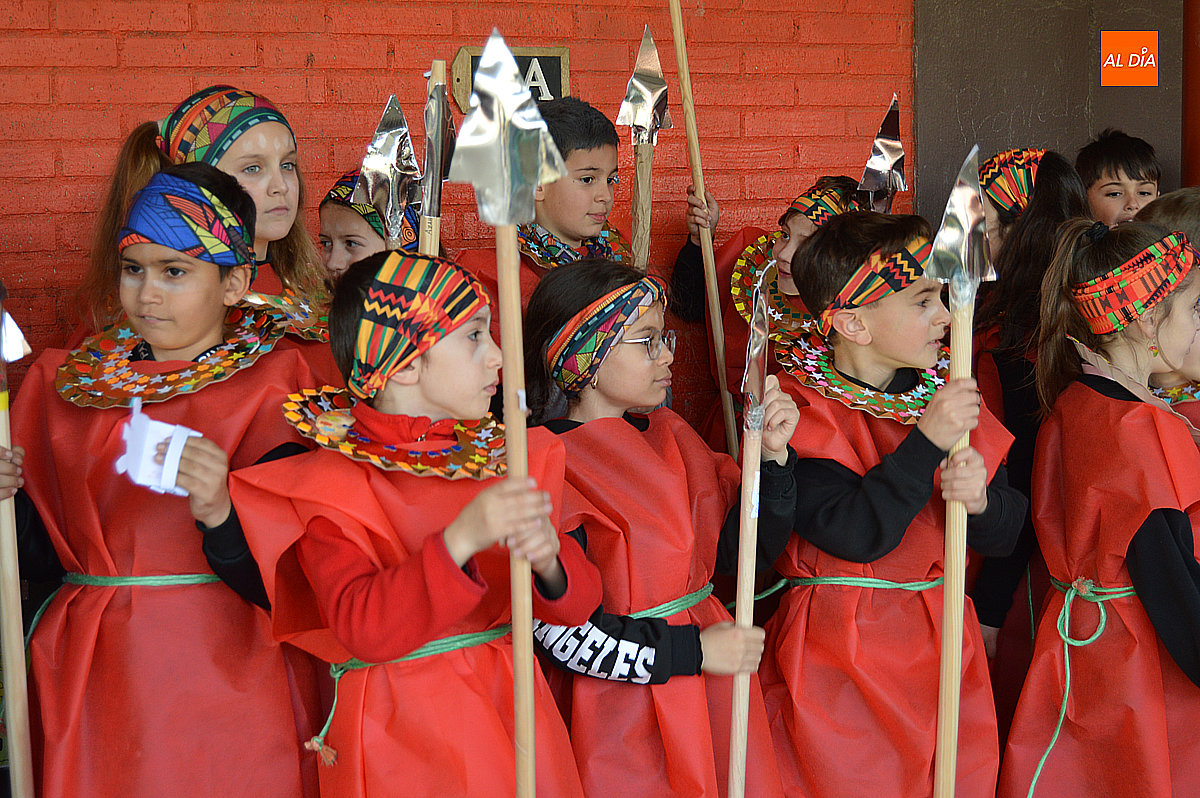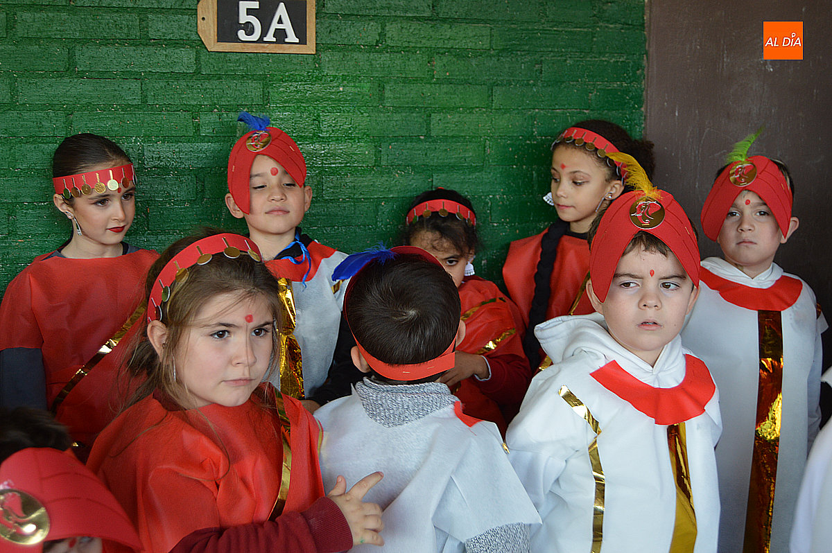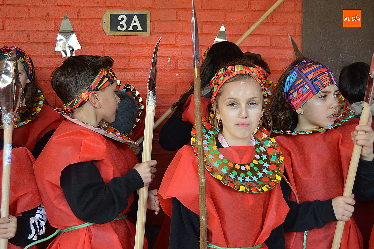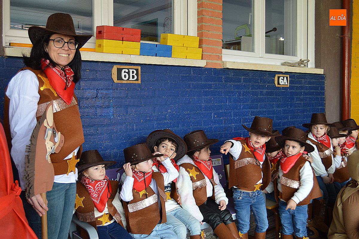 Aunque inicialmente estaba previsto que el desfile recorriera las calles de la localidad hasta la Plaza de Toros, las inclemencias del tiempo obligaron a modificar el itinerario. Sin embargo, la lluvia no frenó las ganas de disfrutar de la jornada y de mostrar sus disfraces. El patio del colegio se transformó en pasarela improvisada por la que fueron desfilando los distintos cursos para mostrar sus creativos y originales disfraces, muchos de ellos elaborados con materiales reciclados.