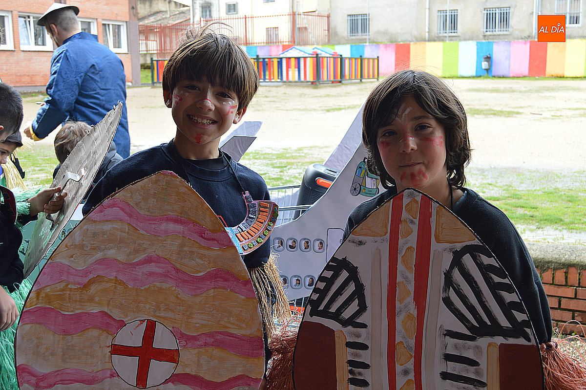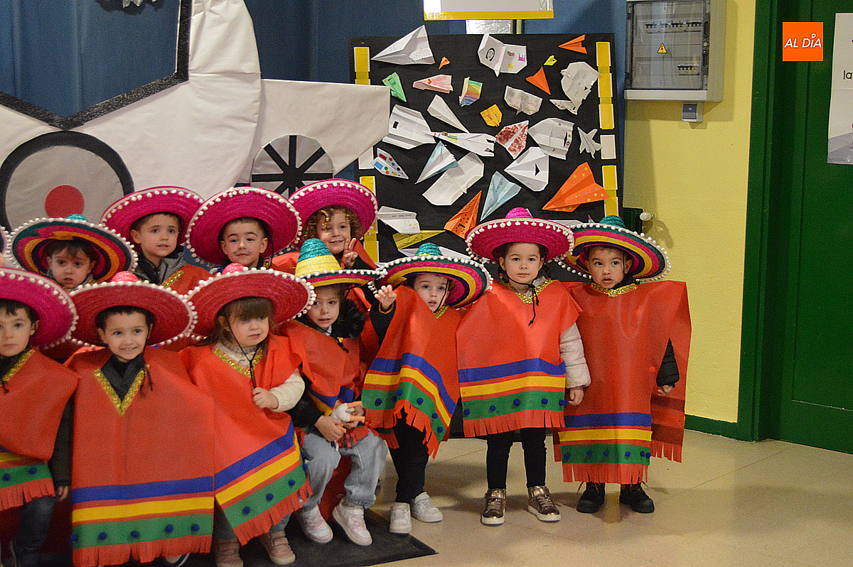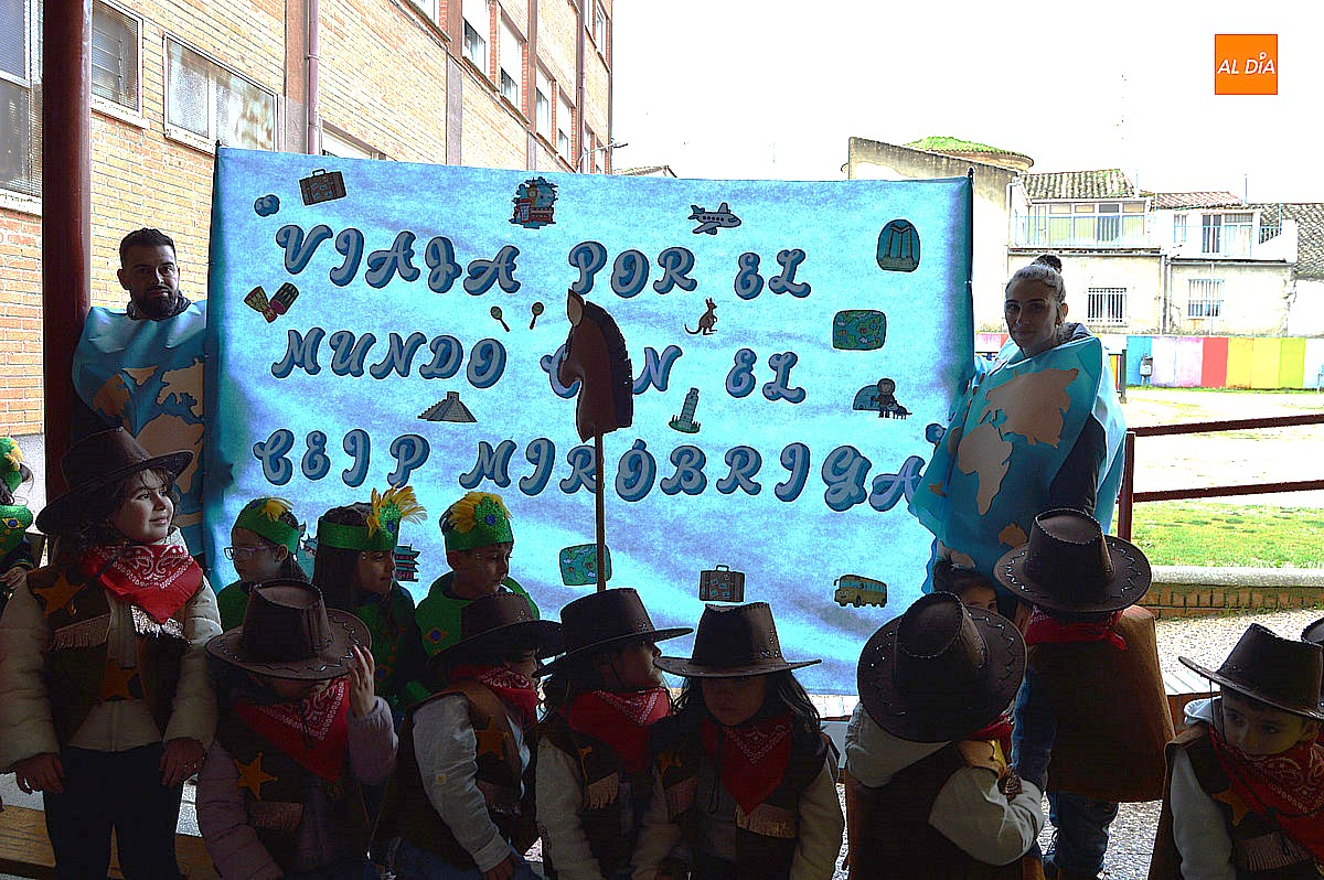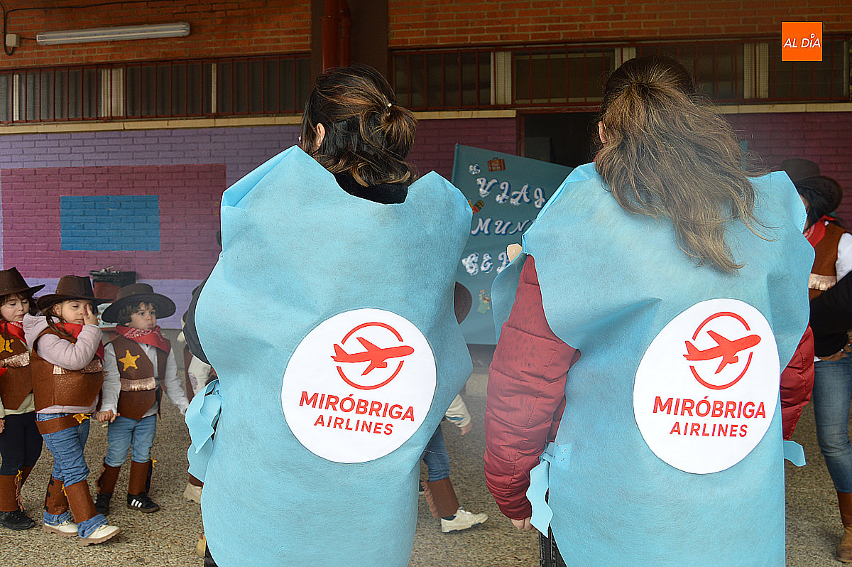Desde los más pequeños de Infantil hasta los alumnos de sexto de Primaria formaron parte del desfile. El equipo docente tampoco quiso quedarse atrás y se sumó a la temática con disfraces acordes a cada continente o también de azafata o azafato, mientras que madres y padres del AMPA participaron con una original propuesta vinculada a la aerolínea “Airolínea Mirobriga”, completando así este simbólico viaje por el mundo.