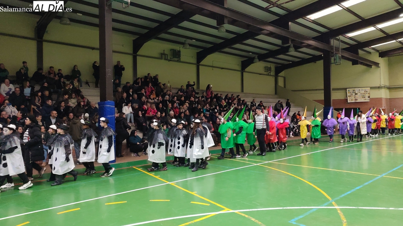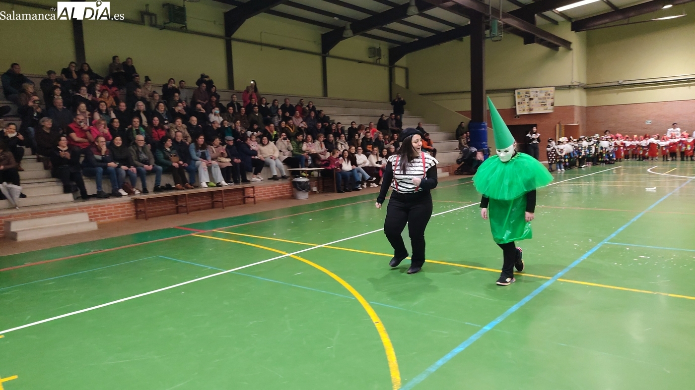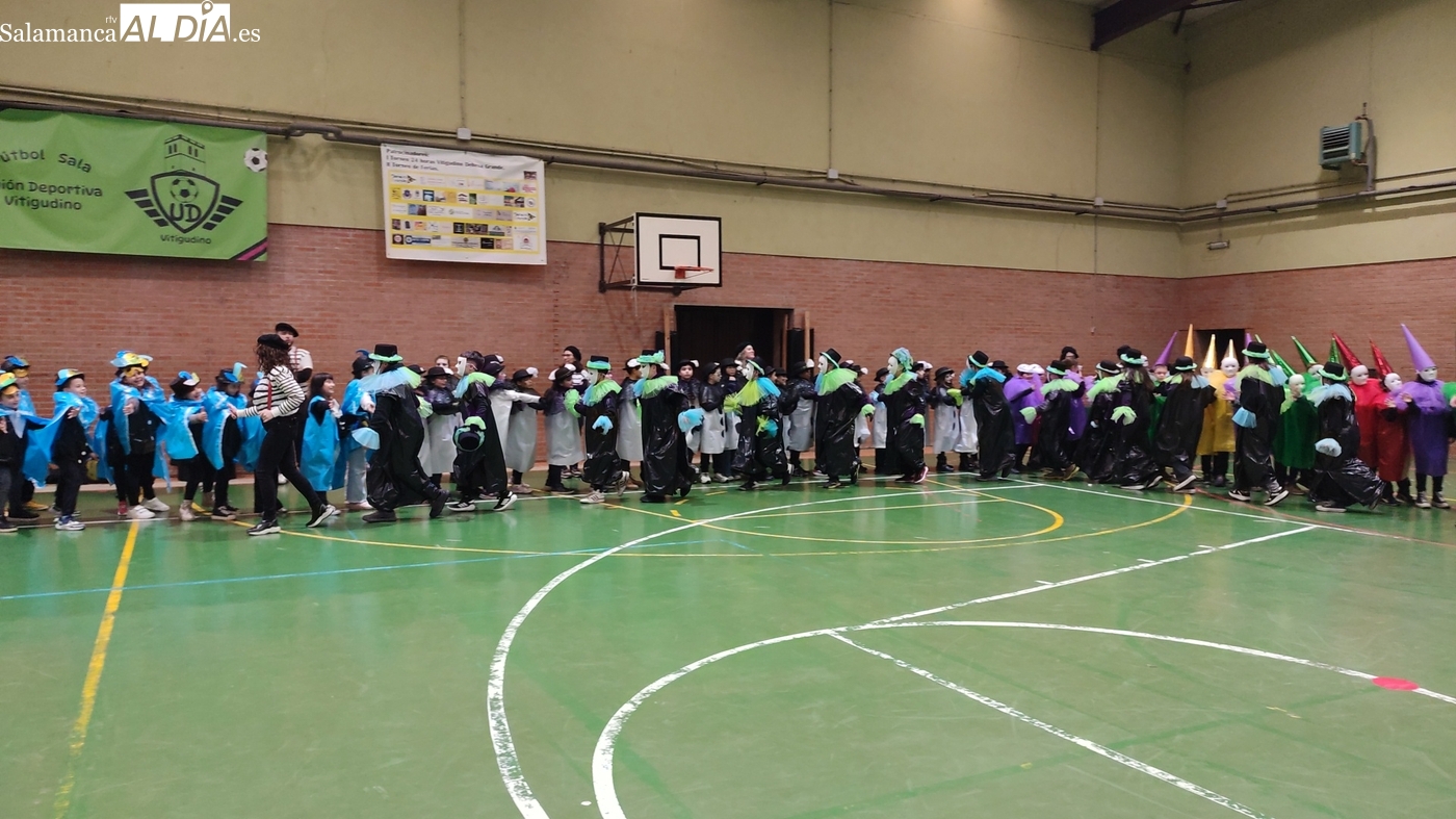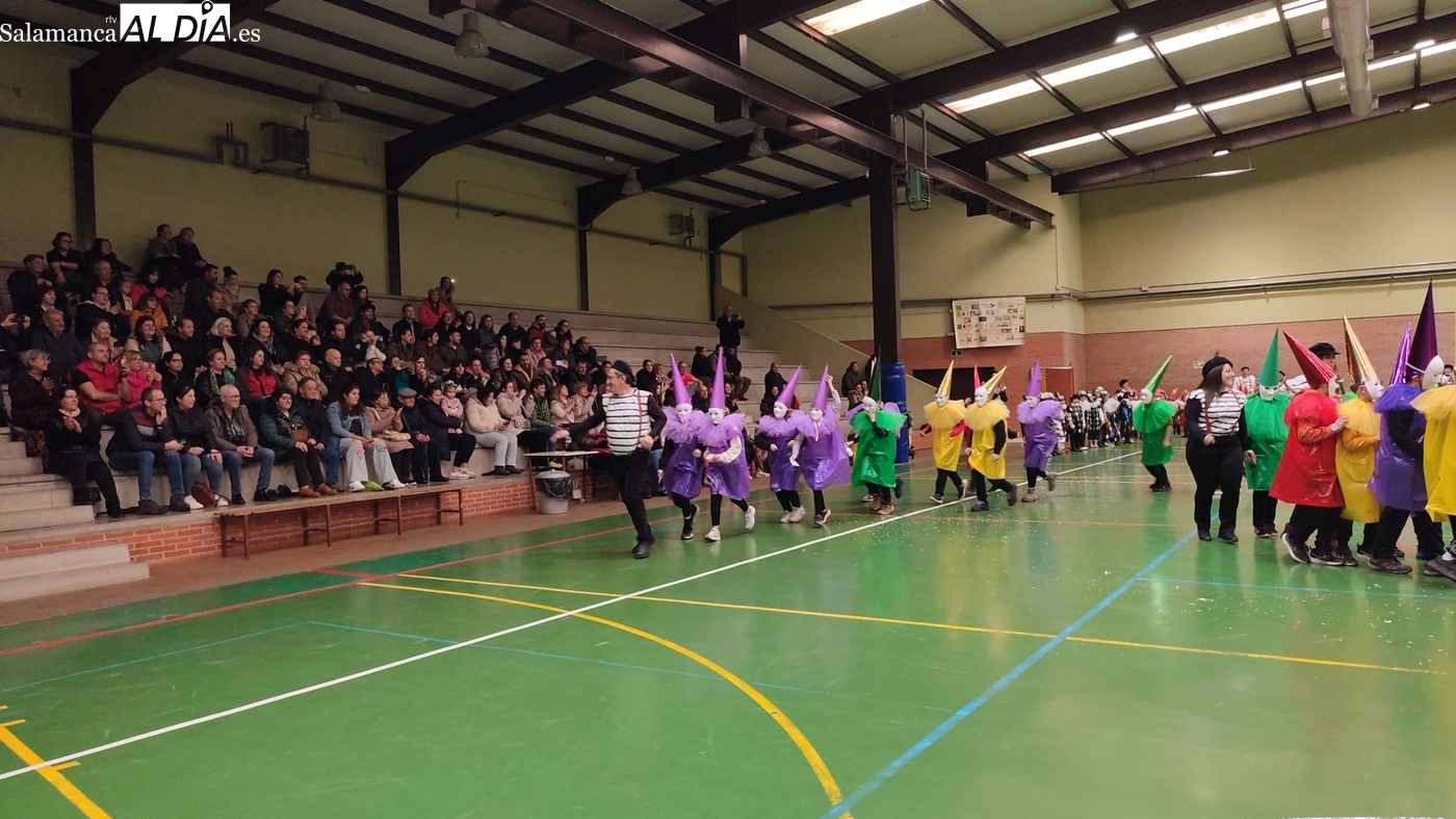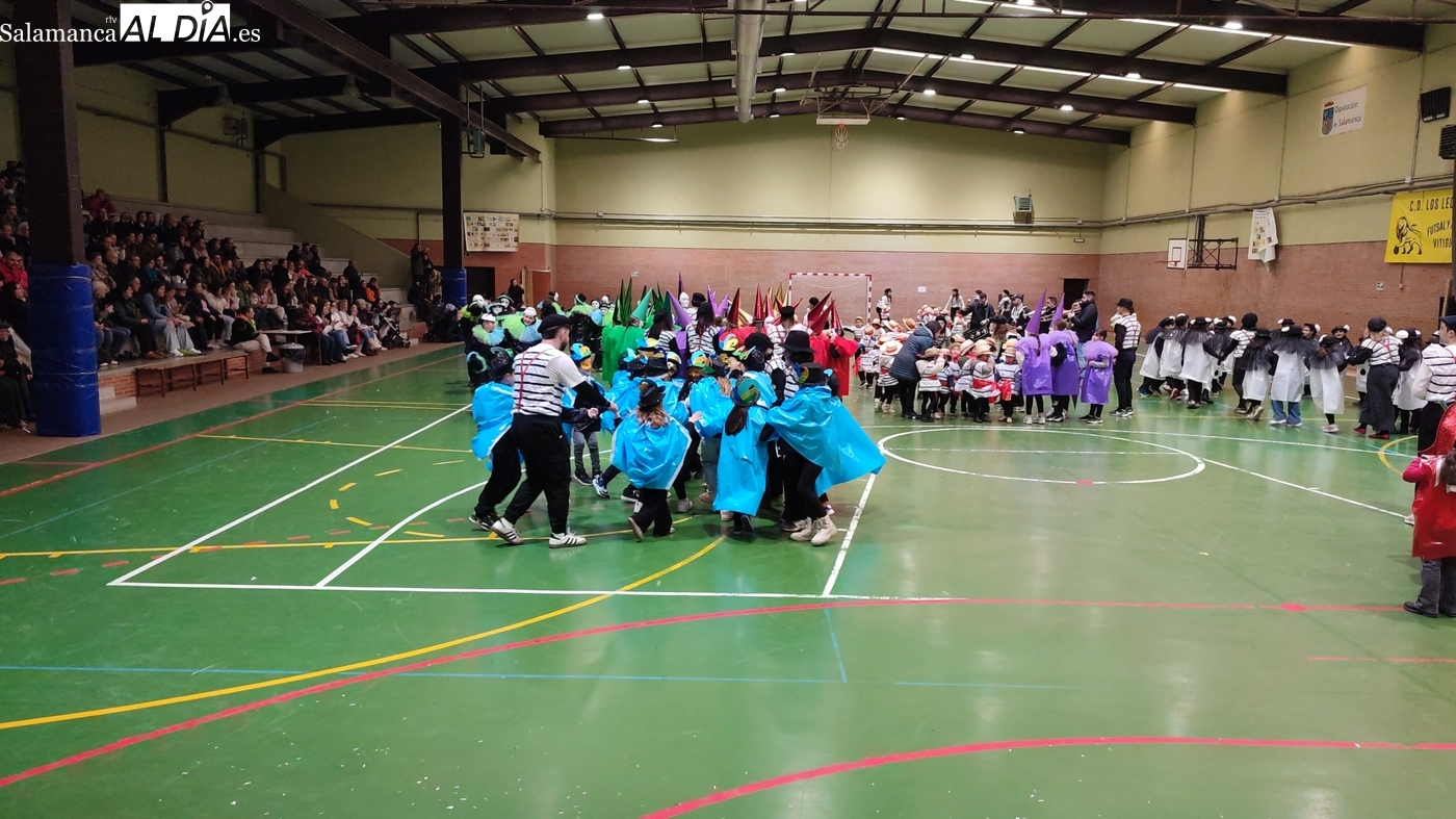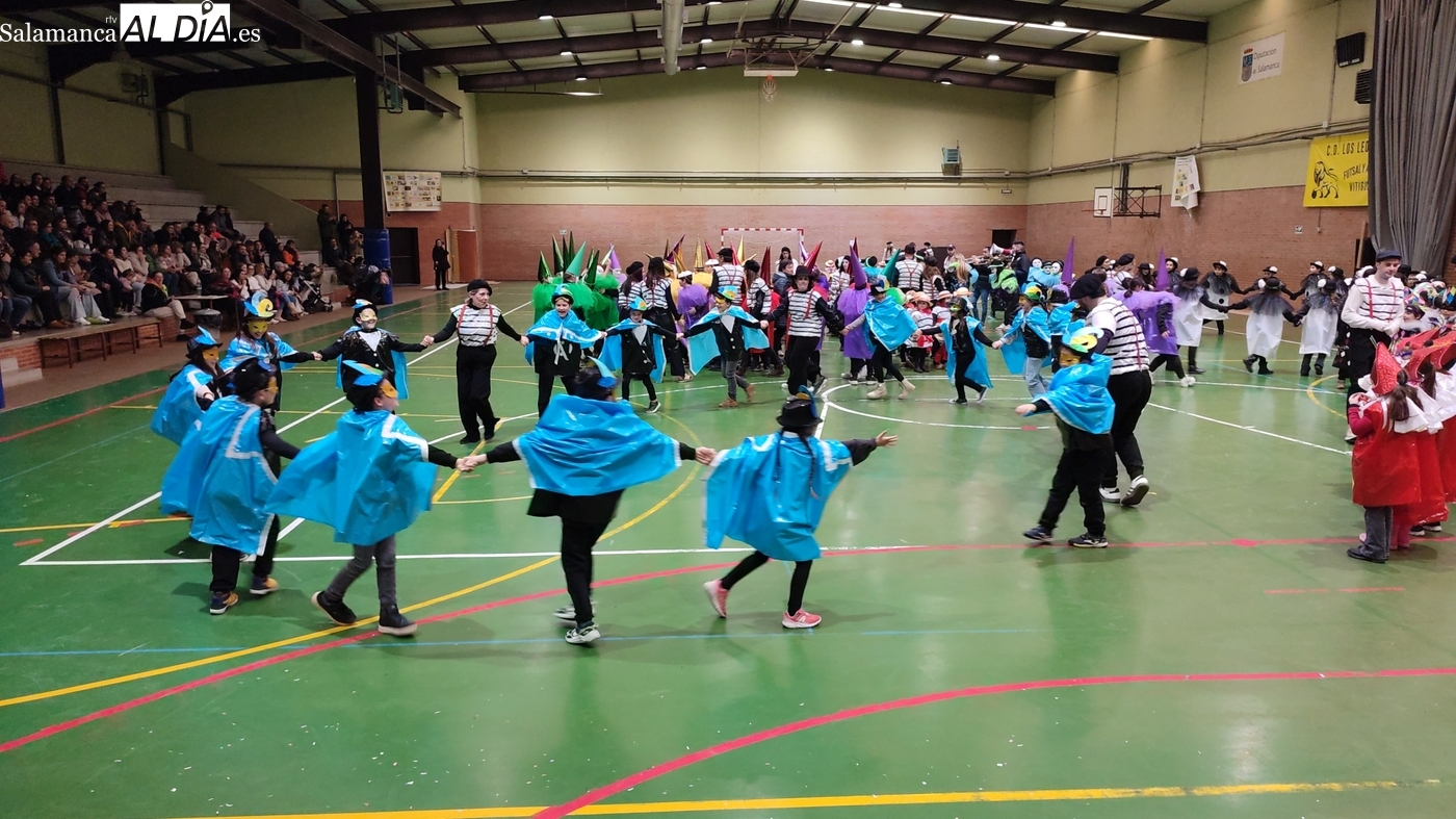 La inestabilidad meteorológica y la presencia de lluvia no han logrado empañar la celebración del Carnaval en Vitigudino. Aunque el agua ha impedido que el colorido desfile recorriera las calles de la localidad como es costumbre, la comunidad educativa del CEIP Manuel Moreno Blanco ha trasladado la fiesta al interior del pabellón polideportivo municipal. Allí, resguardados de las inclemencias, los escolares han podido lucir sus disfraces ante la atenta mirada de padres, madres, abuelos y abuelas que no han querido perderse el evento.