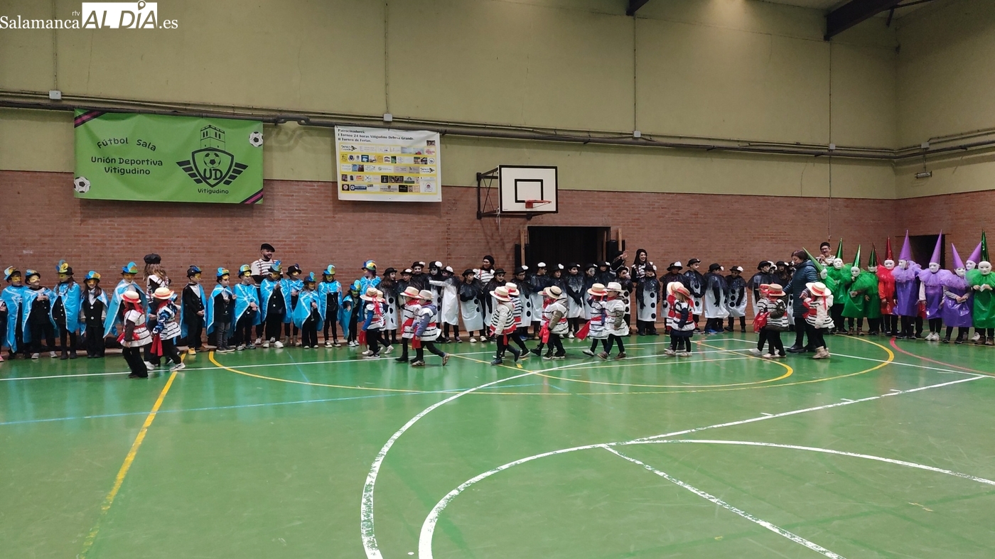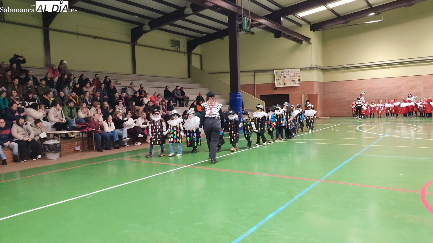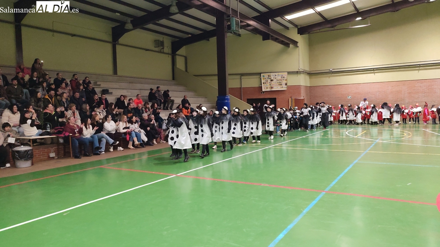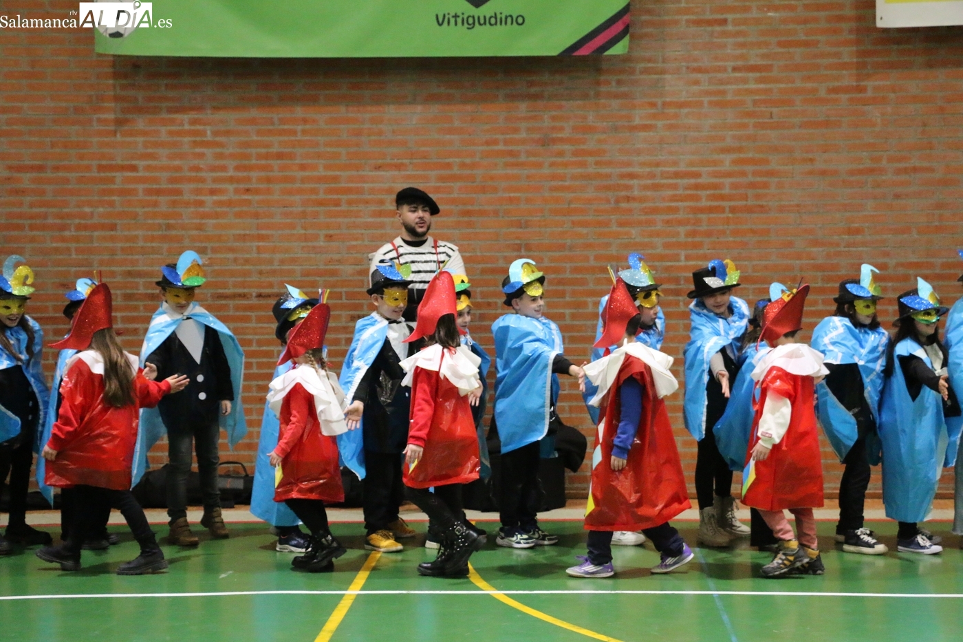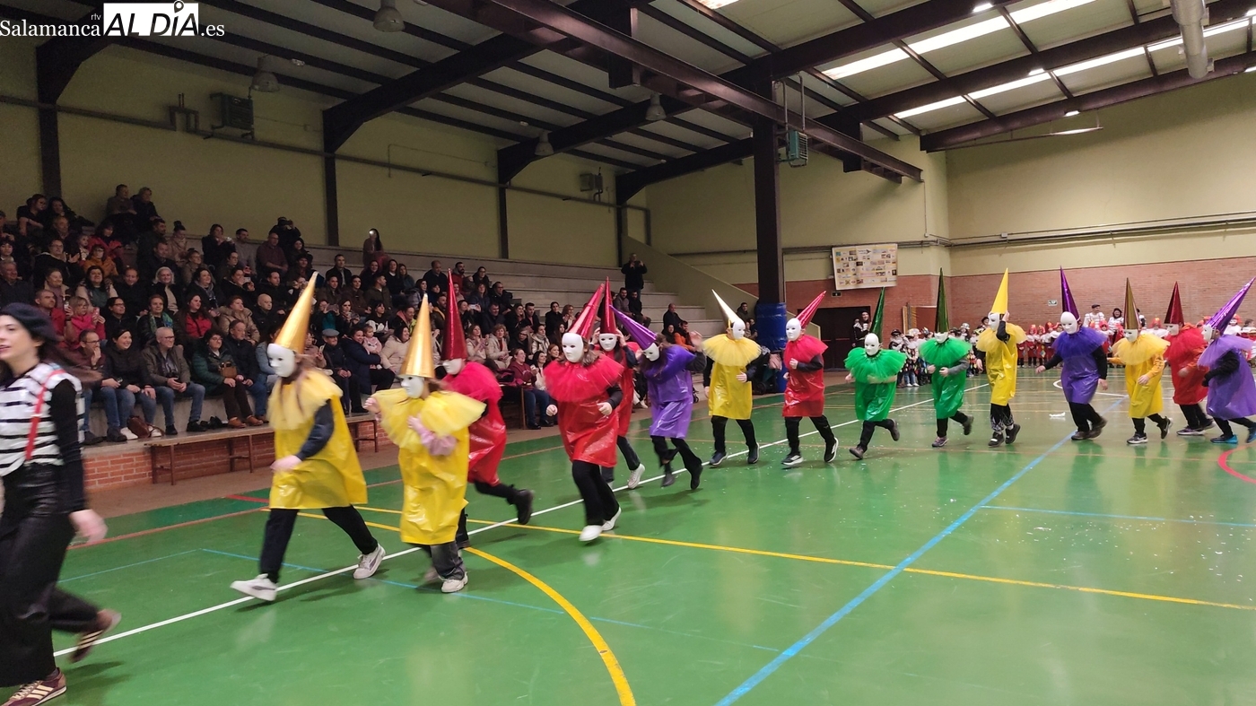 La inestabilidad meteorológica y la presencia de lluvia no han logrado empañar la celebración del Carnaval en Vitigudino. Aunque el agua ha impedido que el colorido desfile recorriera las calles de la localidad como es costumbre, la comunidad educativa del CEIP Manuel Moreno Blanco ha trasladado la fiesta al interior del pabellón polideportivo municipal. Allí, resguardados de las inclemencias, los escolares han podido lucir sus disfraces ante la atenta mirada de padres, madres, abuelos y abuelas que no han querido perderse el evento.