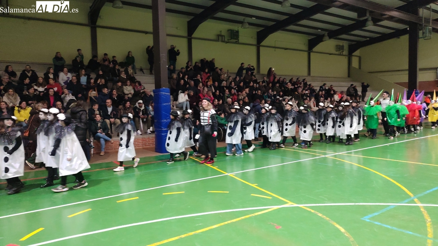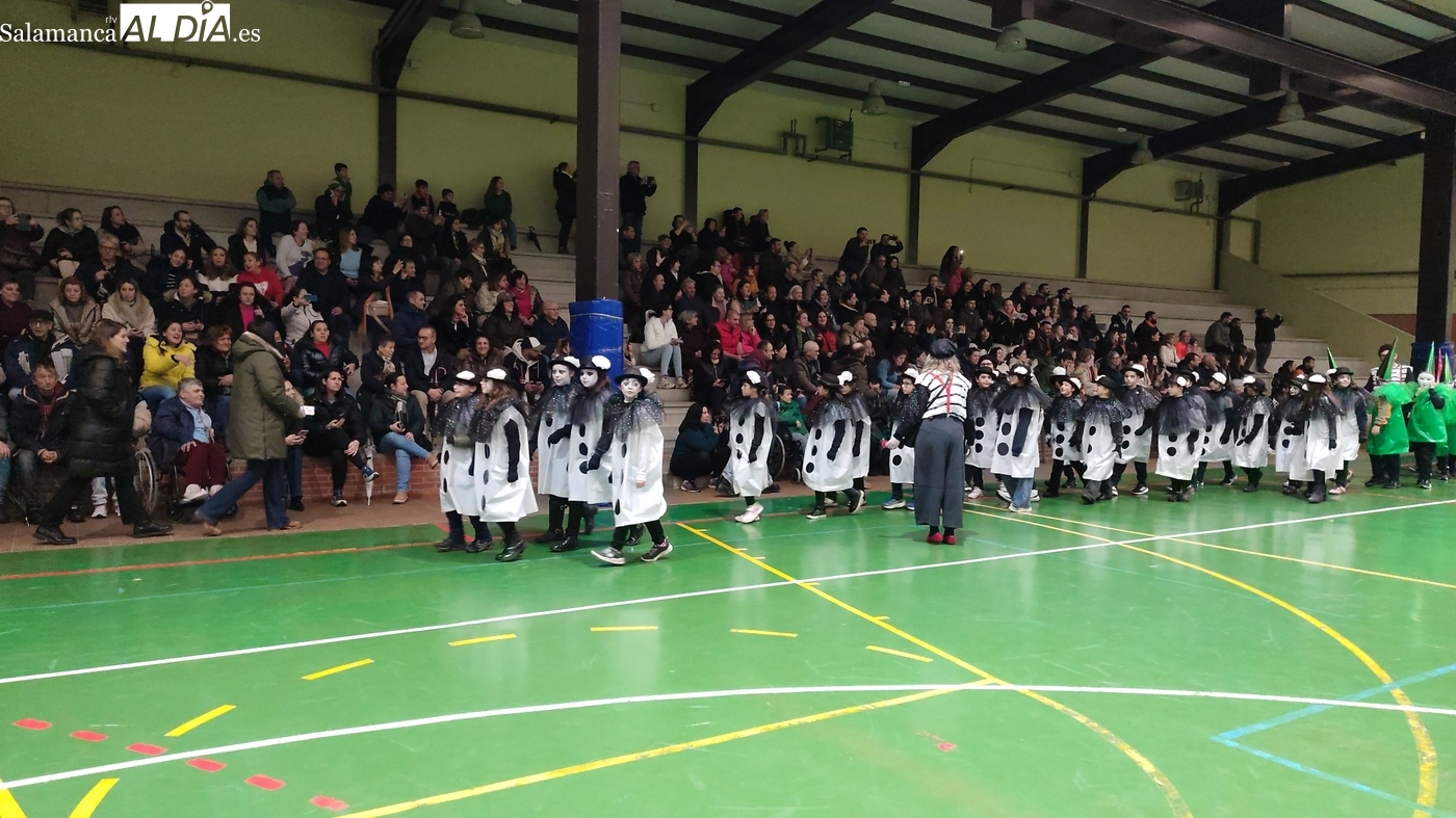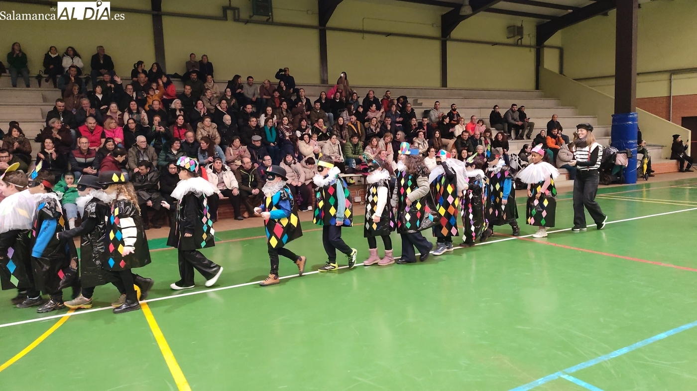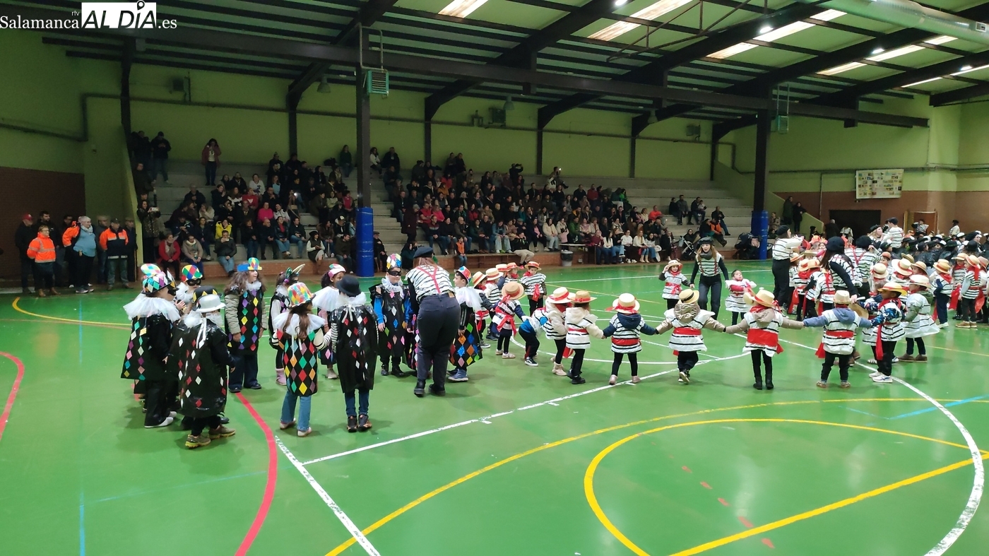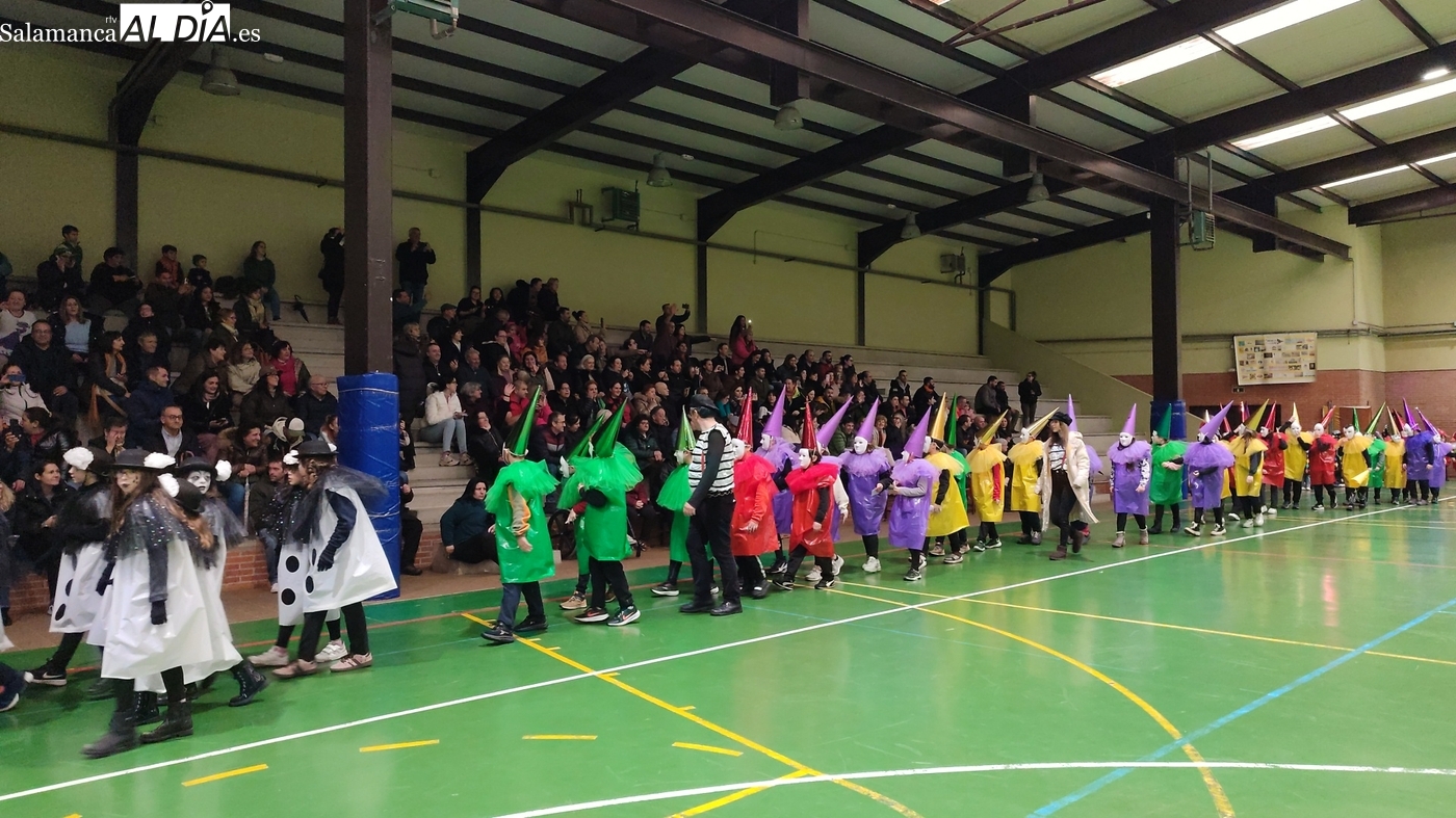 La inestabilidad meteorológica y la presencia de lluvia no han logrado empañar la celebración del Carnaval en Vitigudino. Aunque el agua ha impedido que el colorido desfile recorriera las calles de la localidad como es costumbre, la comunidad educativa del CEIP Manuel Moreno Blanco ha trasladado la fiesta al interior del pabellón polideportivo municipal. Allí, resguardados de las inclemencias, los escolares han podido lucir sus disfraces ante la atenta mirada de padres, madres, abuelos y abuelas que no han querido perderse el evento.