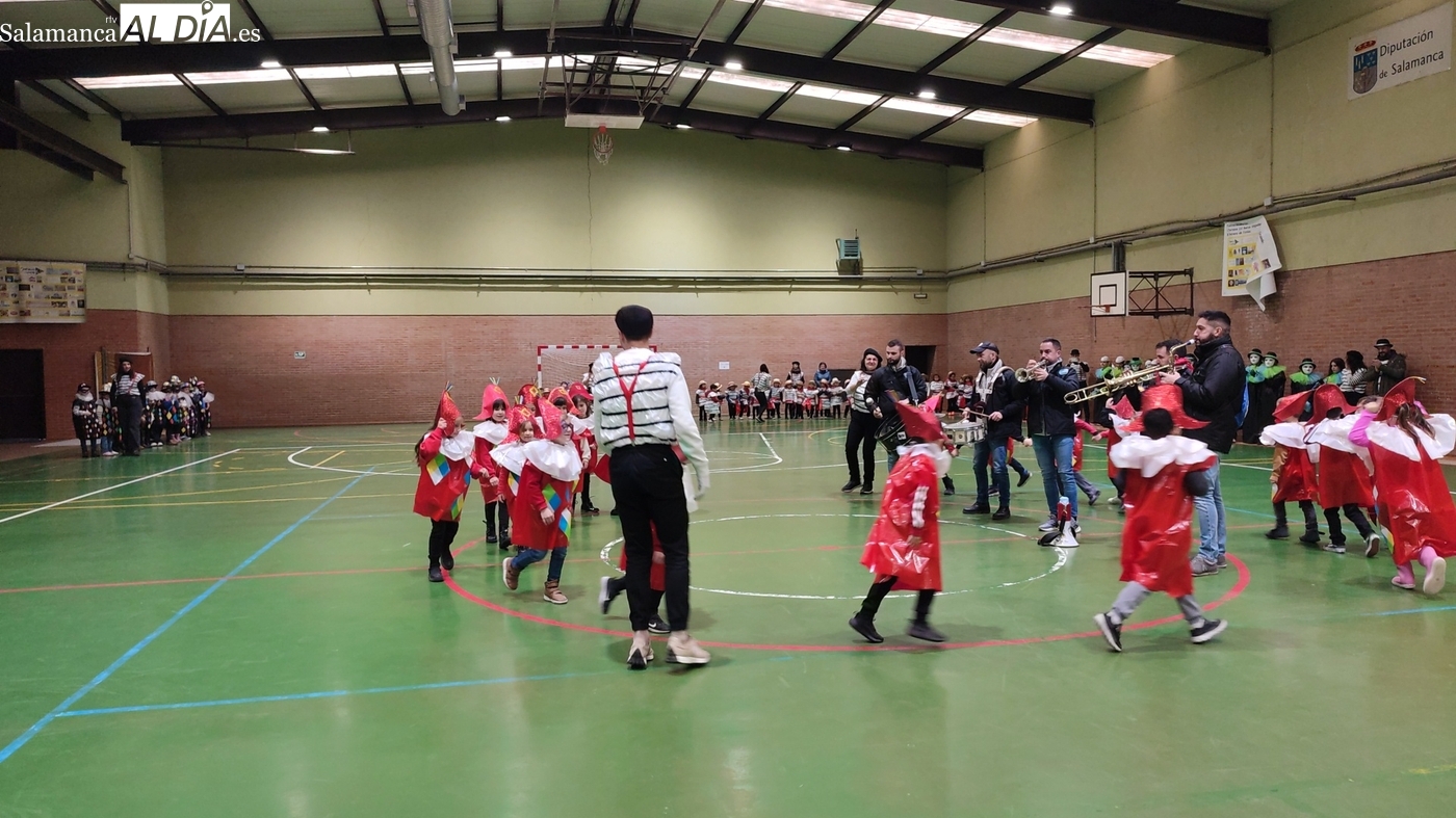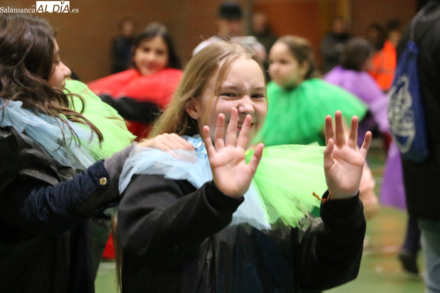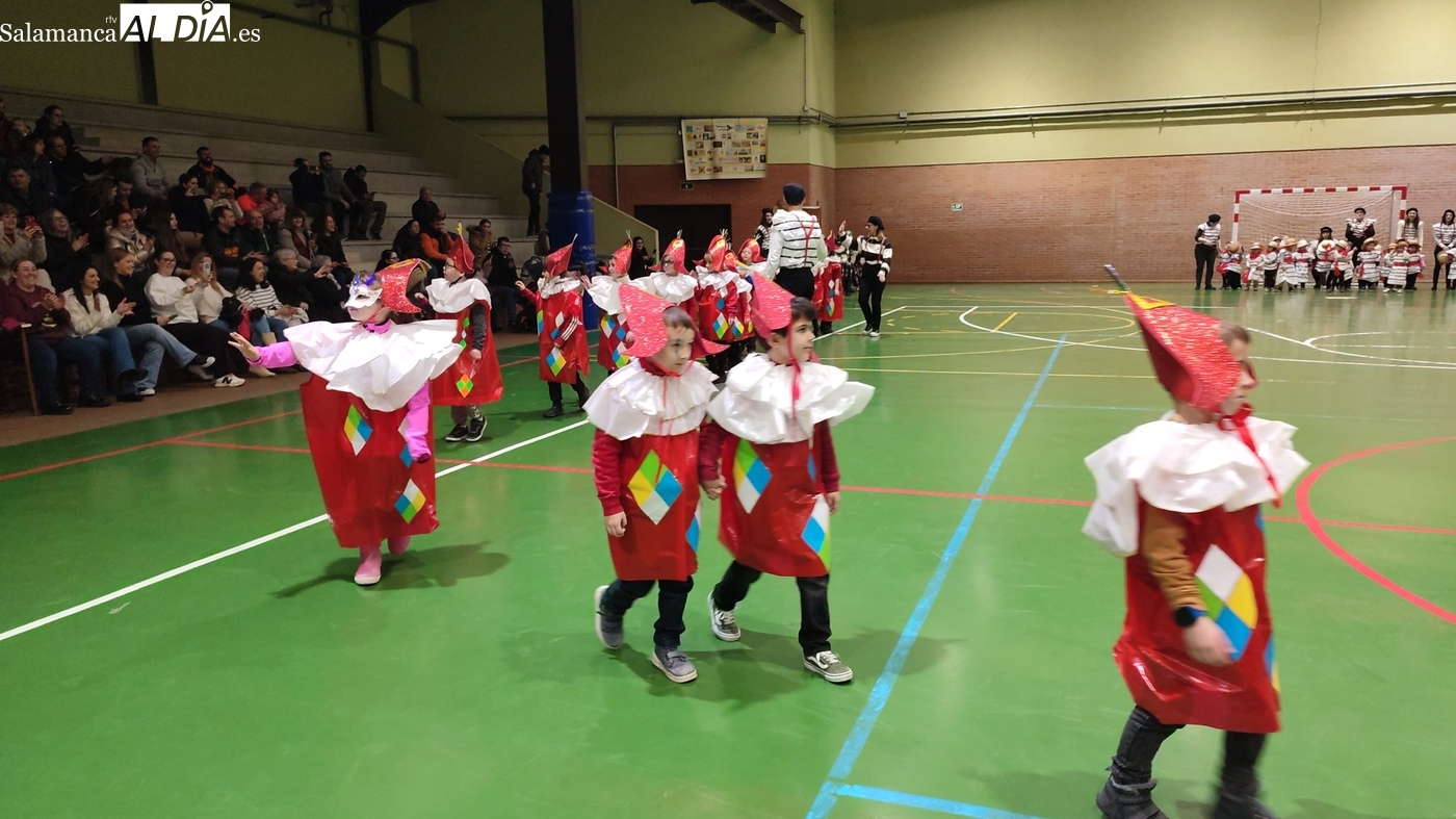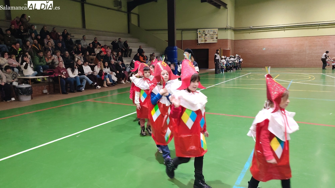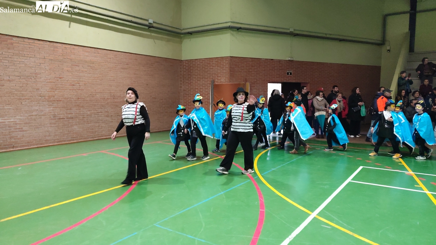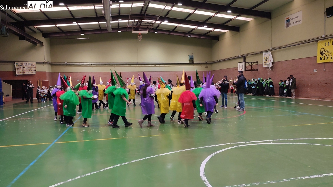 La inestabilidad meteorológica y la presencia de lluvia no han logrado empañar la celebración del Carnaval en Vitigudino. Aunque el agua ha impedido que el colorido desfile recorriera las calles de la localidad como es costumbre, la comunidad educativa del CEIP Manuel Moreno Blanco ha trasladado la fiesta al interior del pabellón polideportivo municipal. Allí, resguardados de las inclemencias, los escolares han podido lucir sus disfraces ante la atenta mirada de padres, madres, abuelos y abuelas que no han querido perderse el evento.