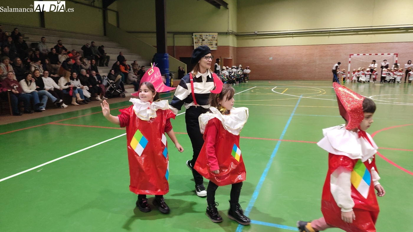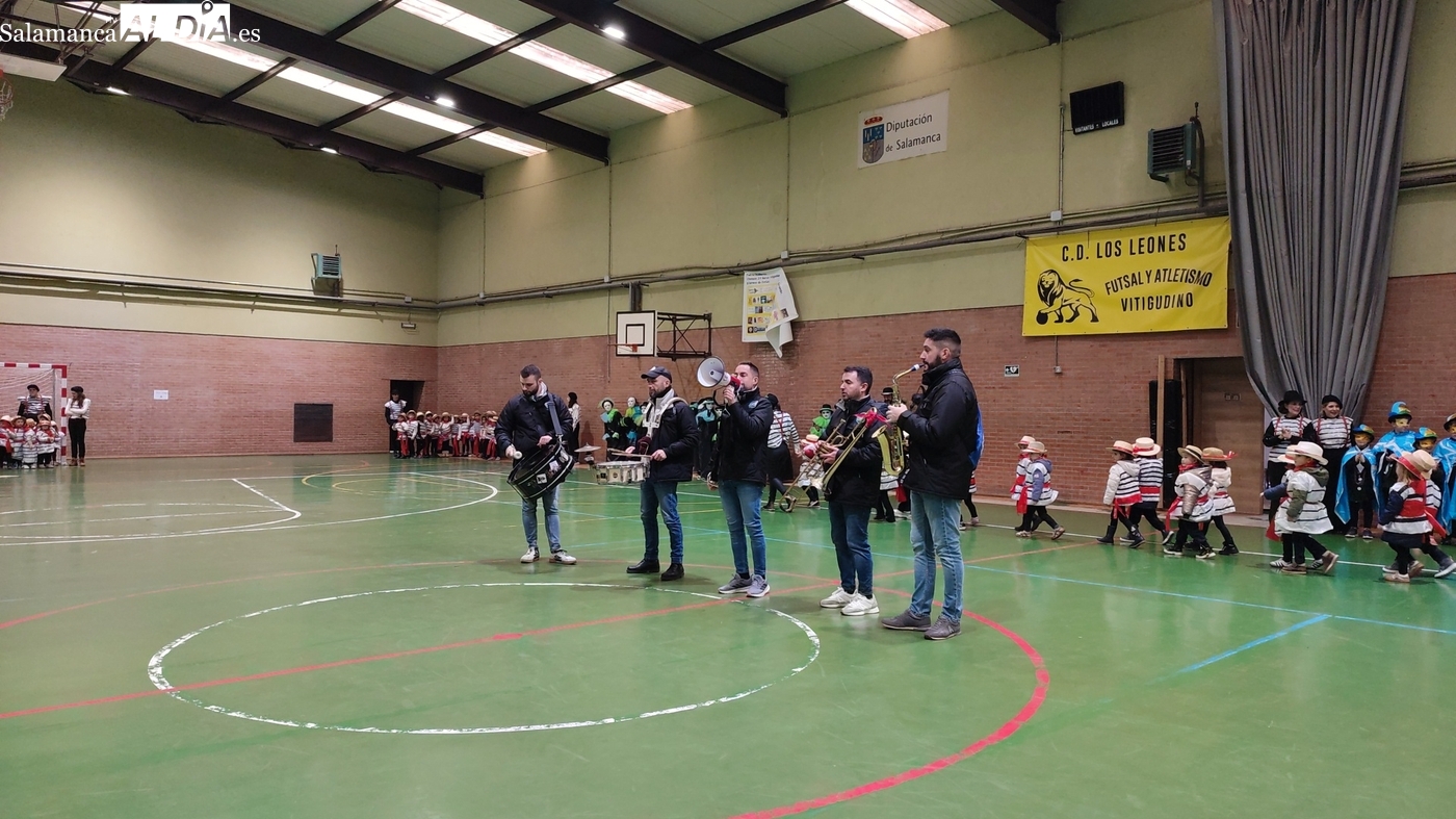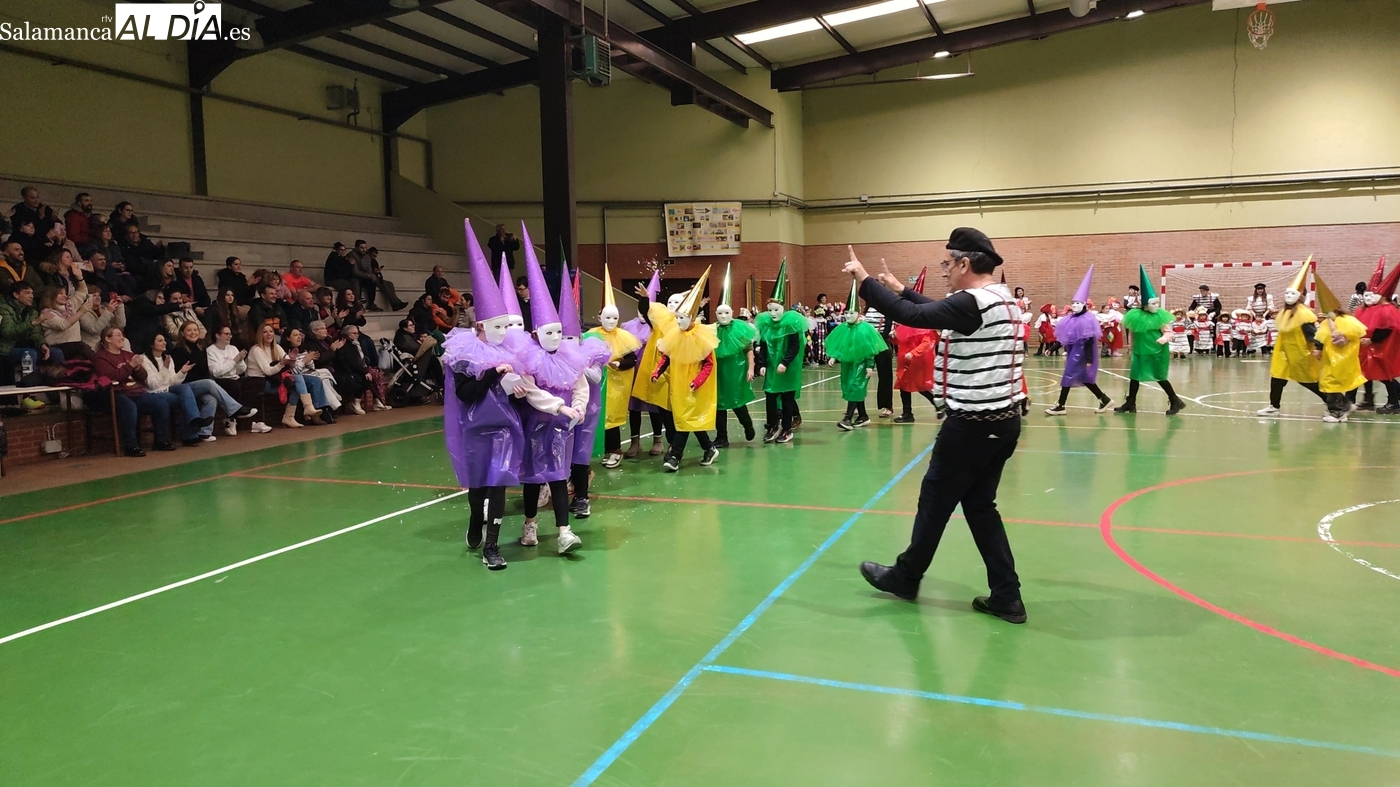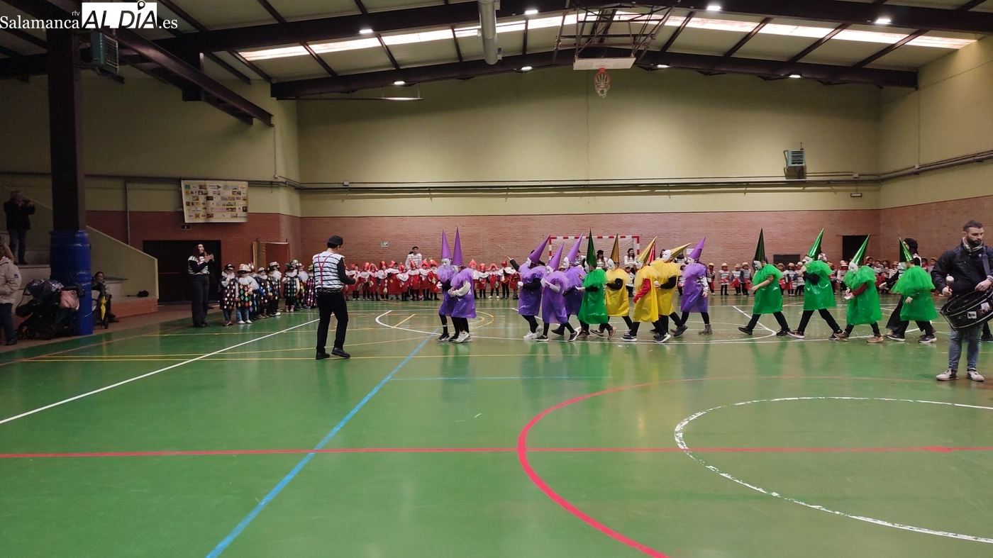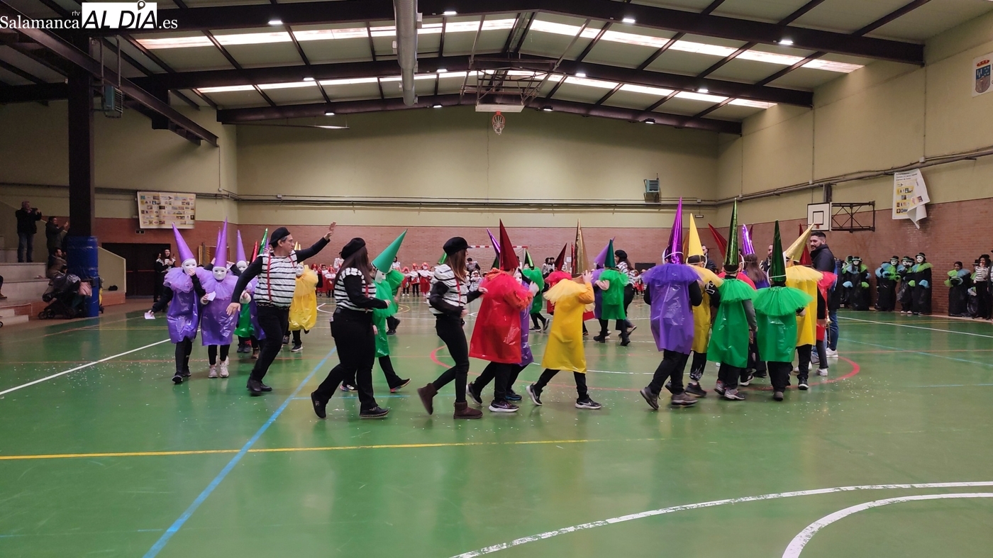 La inestabilidad meteorológica y la presencia de lluvia no han logrado empañar la celebración del Carnaval en Vitigudino. Aunque el agua ha impedido que el colorido desfile recorriera las calles de la localidad como es costumbre, la comunidad educativa del CEIP Manuel Moreno Blanco ha trasladado la fiesta al interior del pabellón polideportivo municipal. Allí, resguardados de las inclemencias, los escolares han podido lucir sus disfraces ante la atenta mirada de padres, madres, abuelos y abuelas que no han querido perderse el evento.
