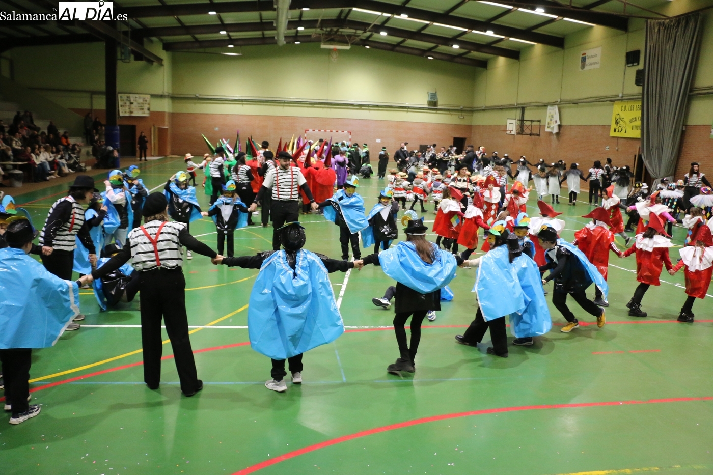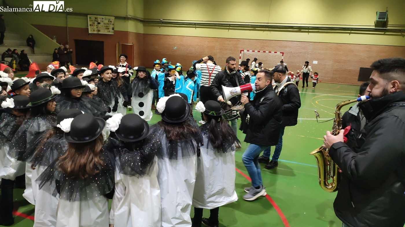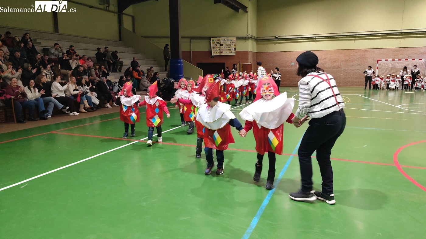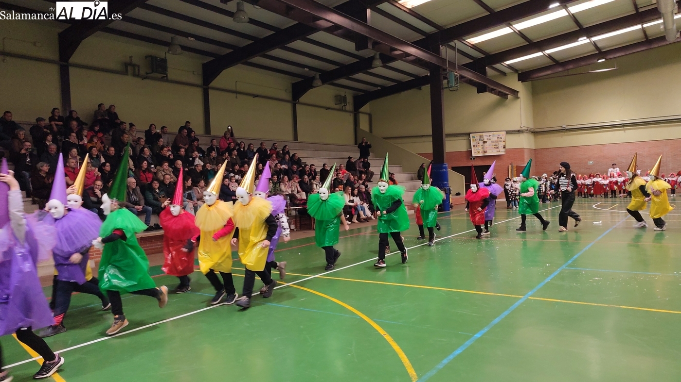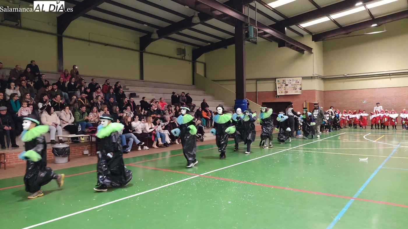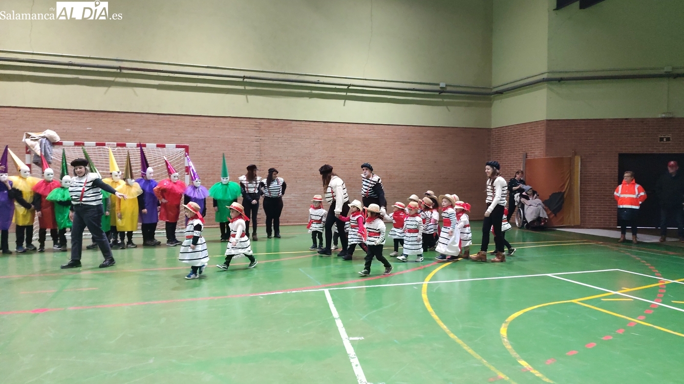 La inestabilidad meteorológica y la presencia de lluvia no han logrado empañar la celebración del Carnaval en Vitigudino. Aunque el agua ha impedido que el colorido desfile recorriera las calles de la localidad como es costumbre, la comunidad educativa del CEIP Manuel Moreno Blanco ha trasladado la fiesta al interior del pabellón polideportivo municipal. Allí, resguardados de las inclemencias, los escolares han podido lucir sus disfraces ante la atenta mirada de padres, madres, abuelos y abuelas que no han querido perderse el evento.